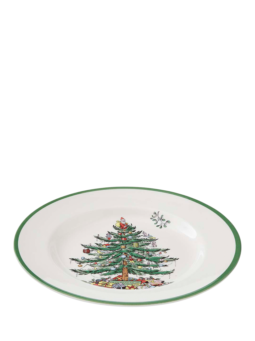 SpodeChristmas Tree Stoneware Dinner Plate, 27cm, White/Green