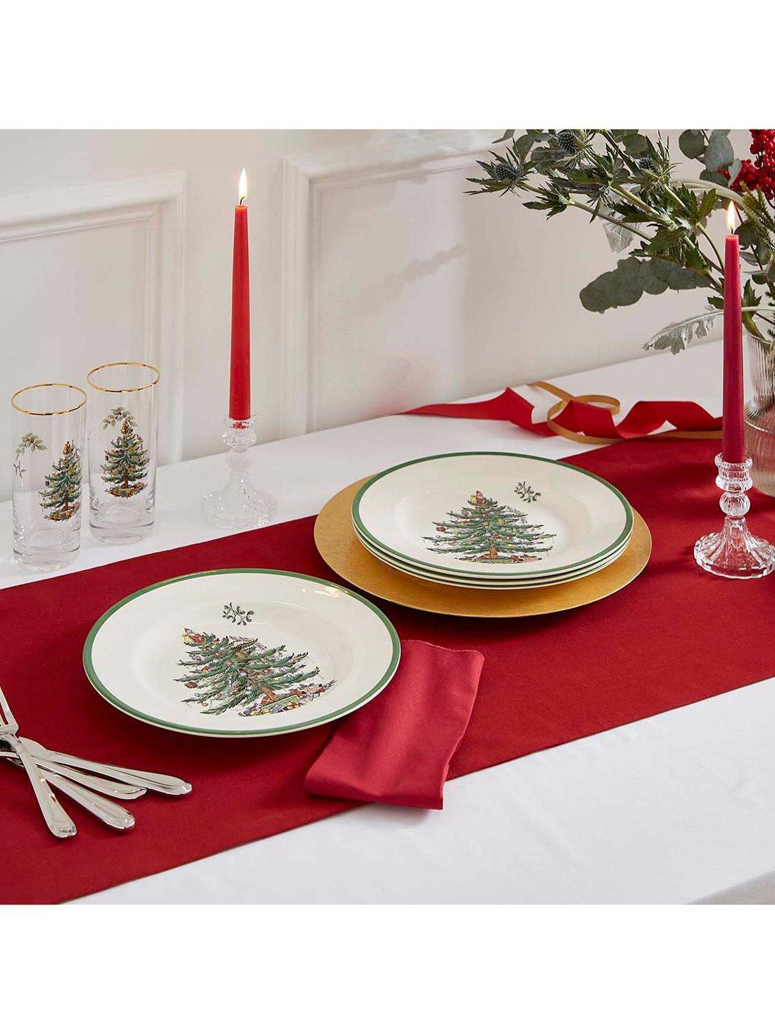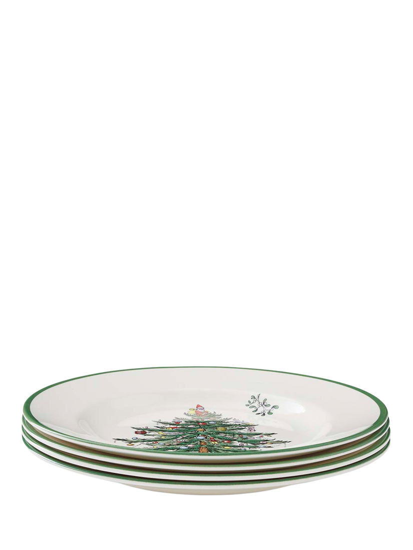 Introduced in 1938, the Christmas Tree collection from Spode is a seasonal favourite. This set of four dinner plates from the range are made of stoneware and are dishwasher, microwave and freezer safe for use in the modern home.