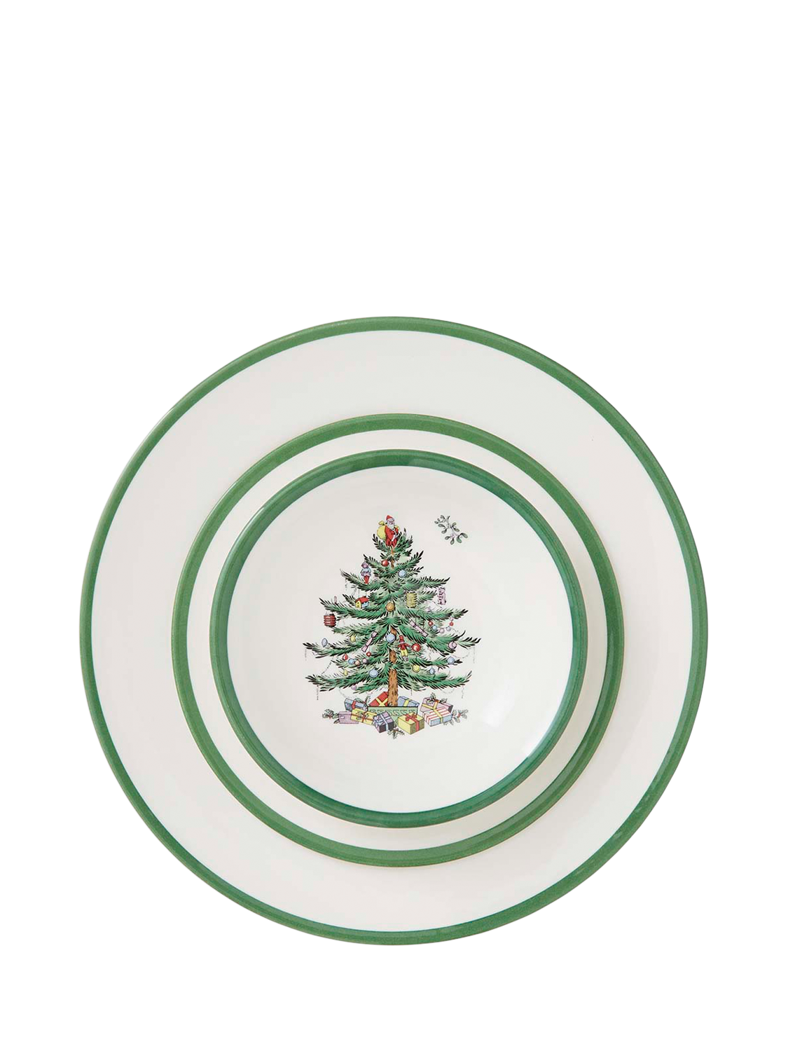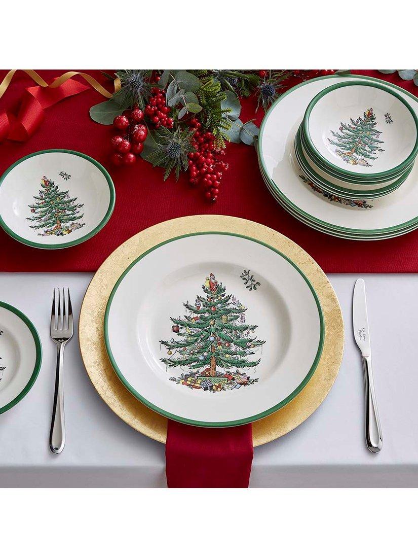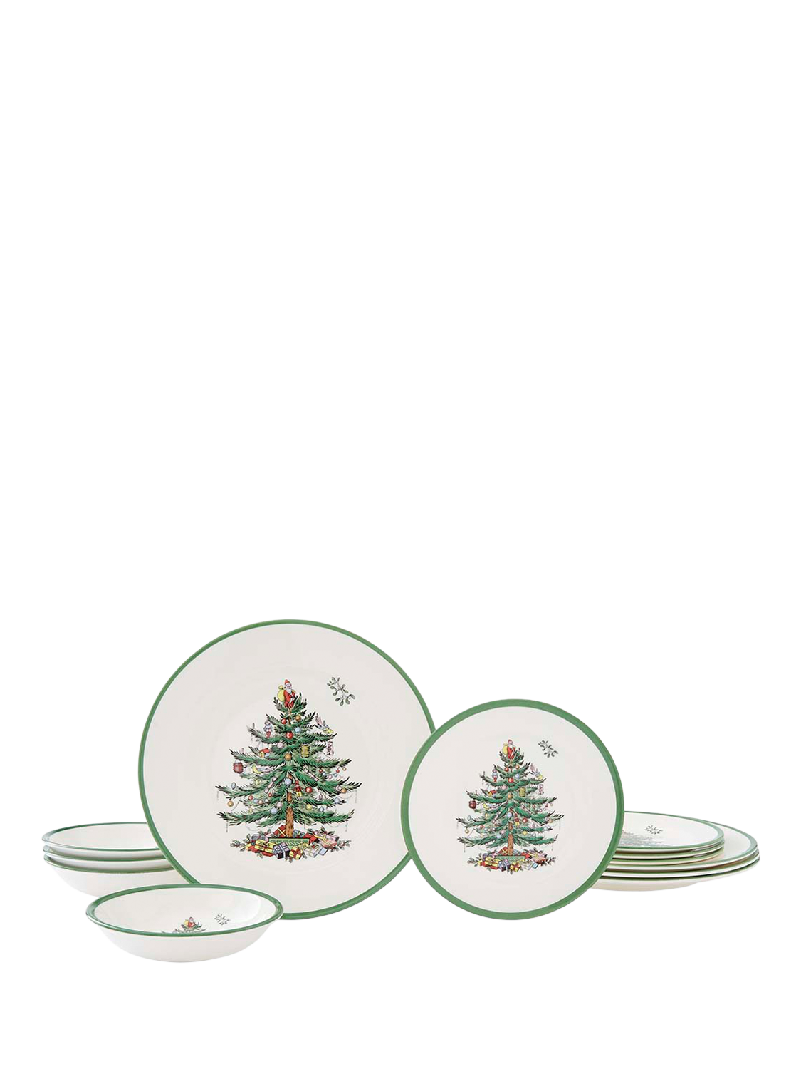 SpodeChristmas Tree Stoneware Dinnerware Set, 12 Piece, White/Green