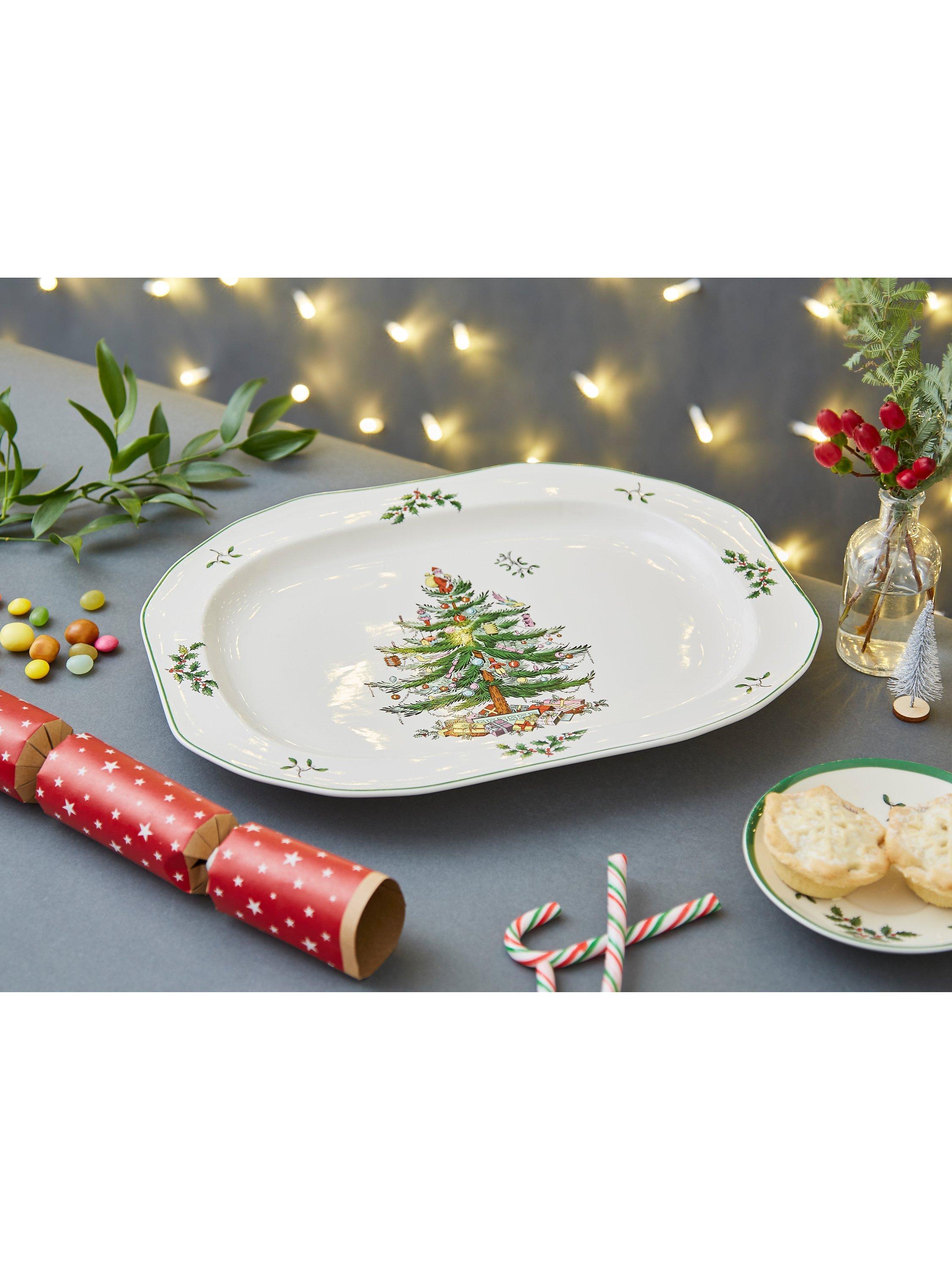 Introduced in 1938, the Christmas Tree collection from Spode is a seasonal favourite. This oblong serving plate from the range is made of stoneware and is dishwasher, microwave and freezer safe for use in the modern home.