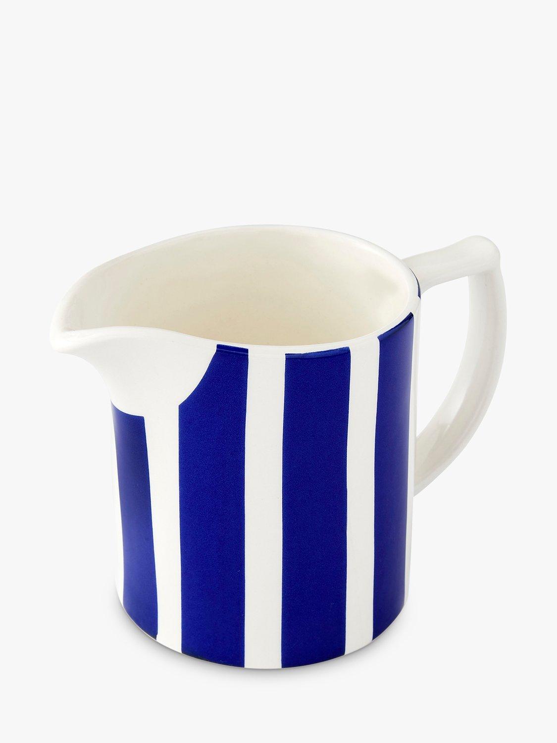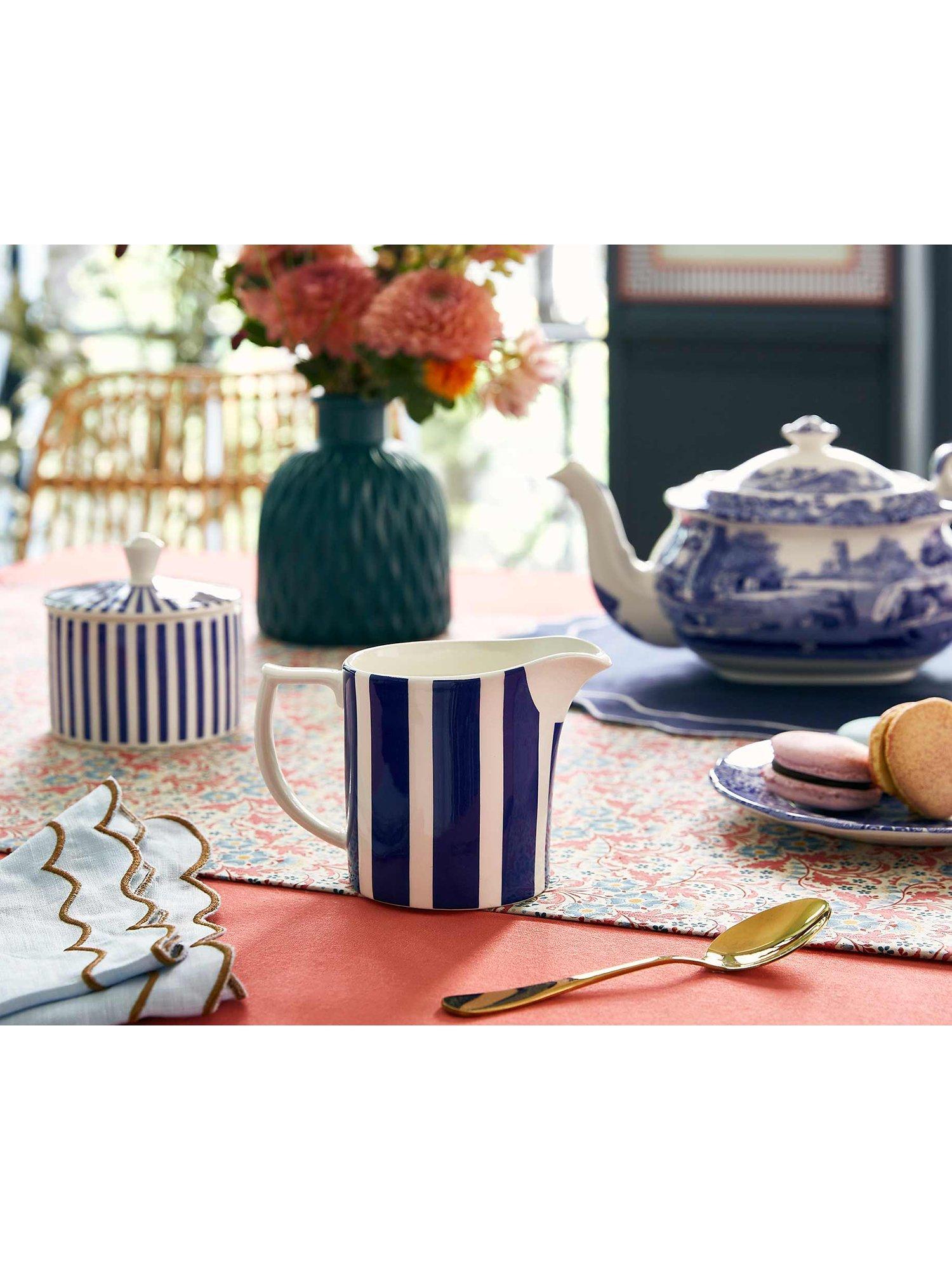SpodeSteccato Bold Stripe Earthenware Milk Jug, 280ml, Blue/White
