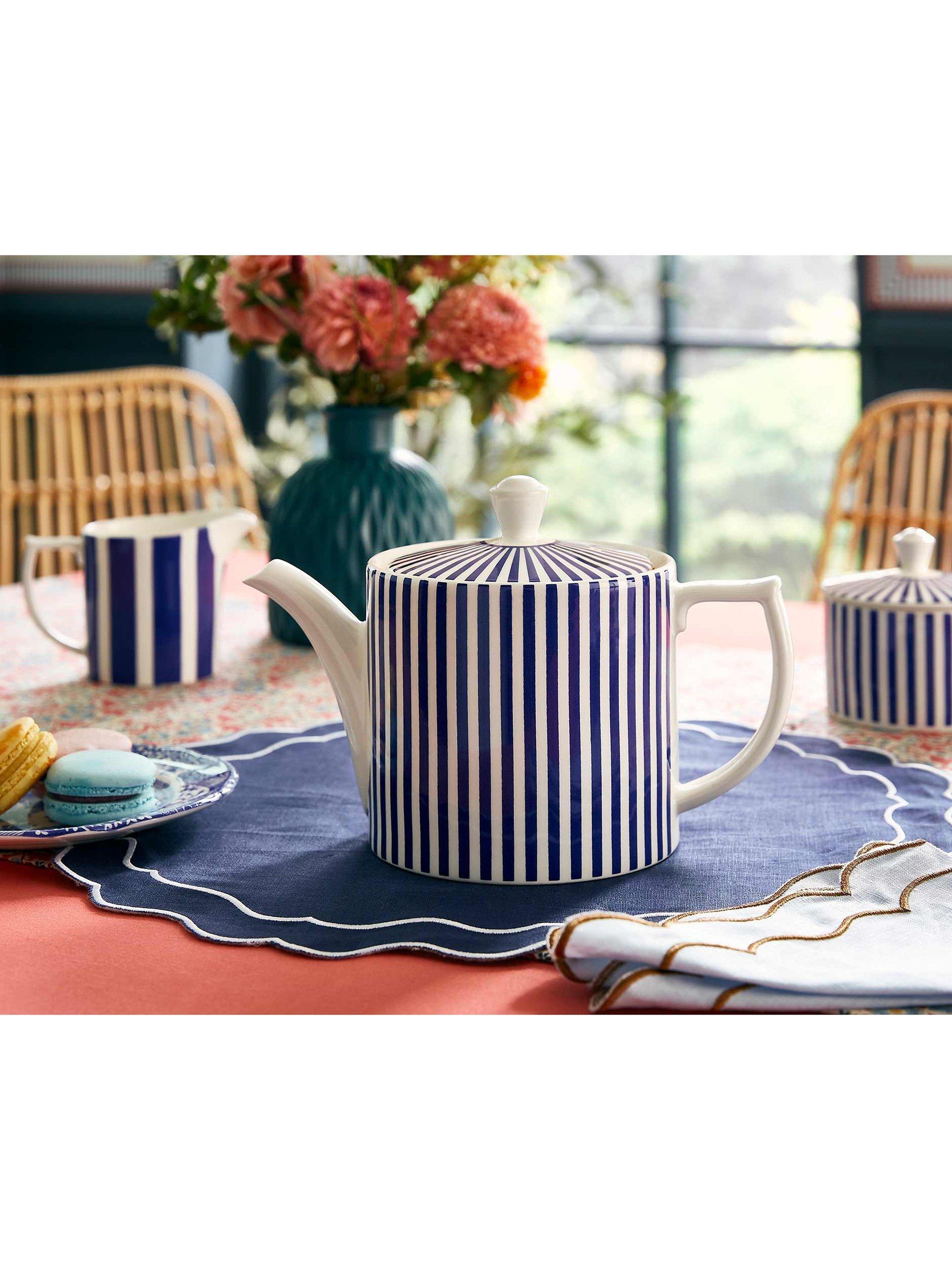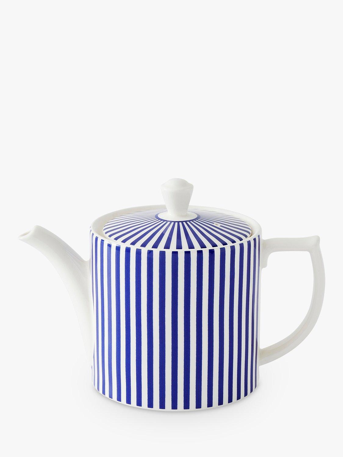 SpodeSteccato Narrow Stripe Earthenware Teapot, 1.1L, Blue/White