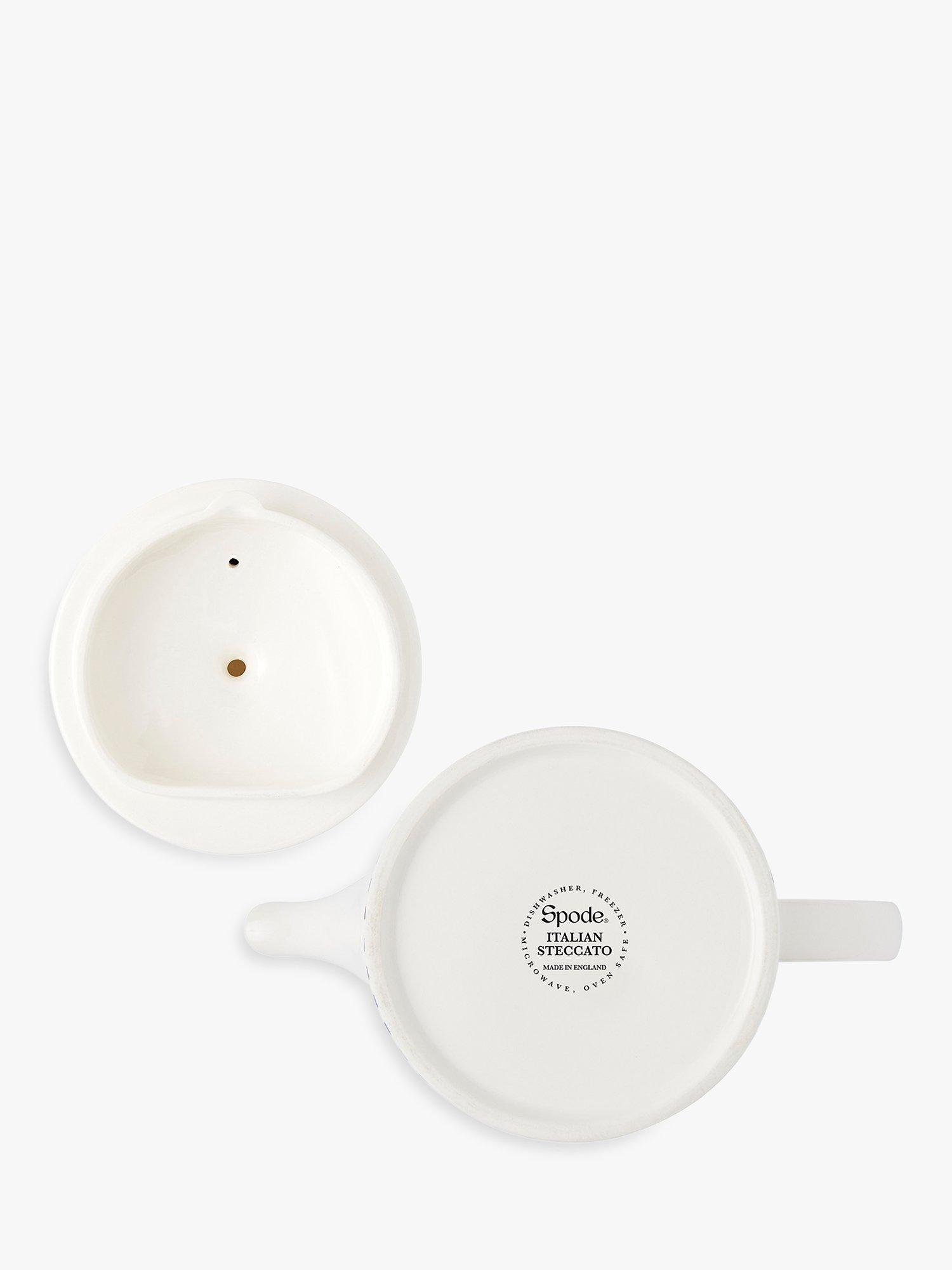 Carefully crafted from earthenware, this Steccato teapot features narrow stripes on pristine white. Dishwasher and microwave safe for everyday use.