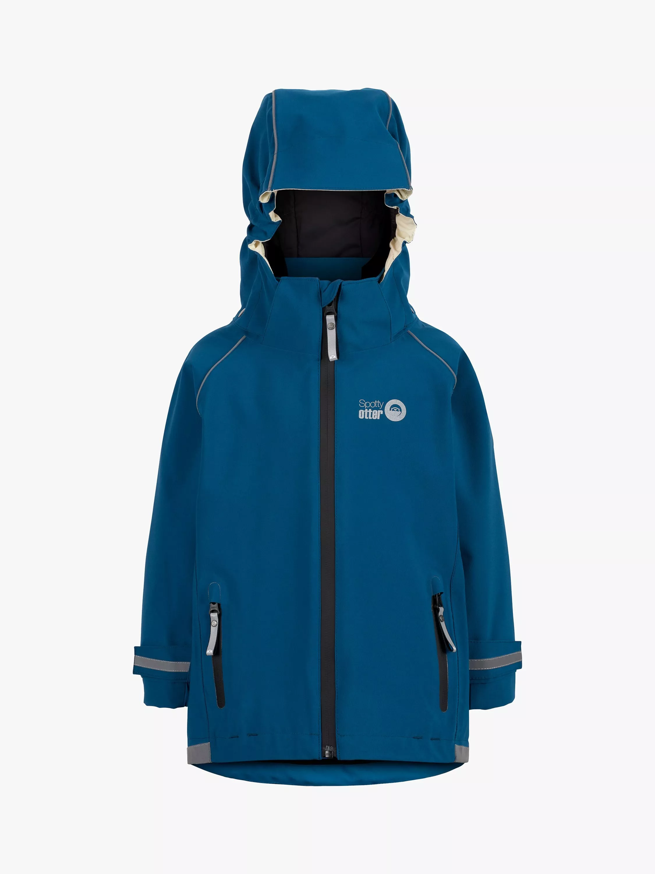 Spotty Otters versatile Adventure kids' unlined waterproof jacket is all you need for your adventures. The vibrant, wipe-clean colours and reflective detail of its 4-way comfort stretch Ottertex® 10000 waterproof fabric will keep everyone toasty dry. Clever details include a detachable peaked hood, taped seams and water-repellent zips. Smooth Polyamide lining means no bulk, so layer it up over chunky winter knits or base layers, or slip it on to combat summer showers; all year round, it's got you covered.
