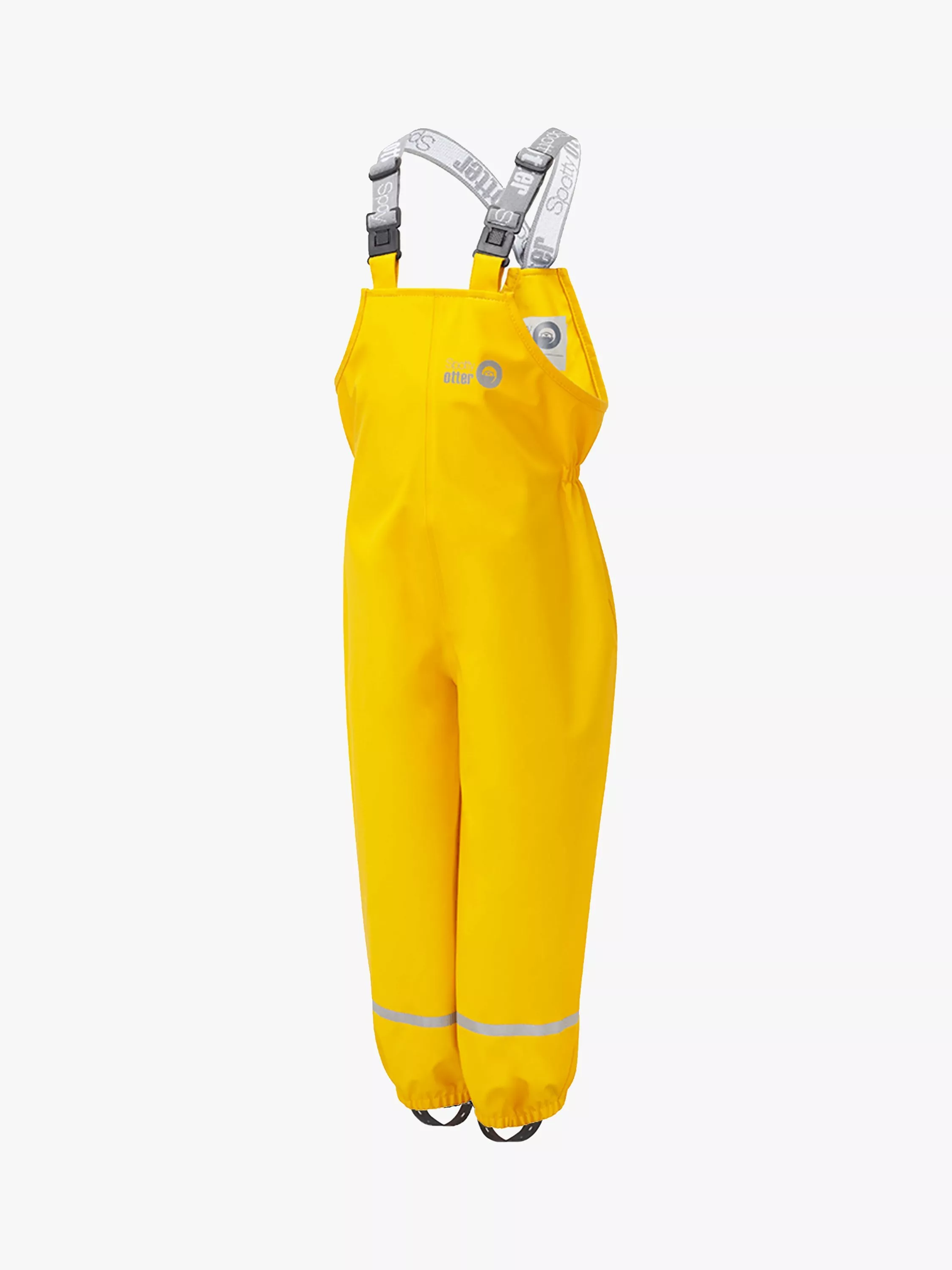 These kid's waterproof PU dungarees are crafted for adventurous puddle-jumping enthusiasts. Worry not about wet and muddy clothes Spotty Otter has got you covered. The quality fabric is built to endure childhood activities. Designed with play in mind, the elasticated waist, ankles, and adjustable shoulder straps ensure a perfect fit over indoor clothes and are easy to wear with wellies. Choose between the cosy navy or eye-catching yellow, with reflective safety details. Best part? A quick wipe-down is all it takes to bid farewell to mud and sand.