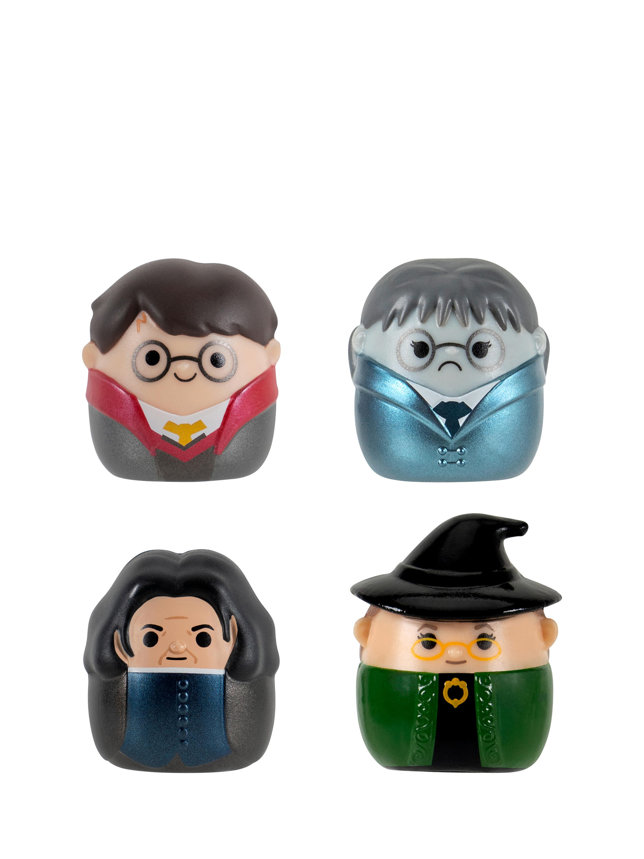 - Four 1-inch Harry Potter Mini-Squish figures: Severus Snape, Harry Potter, Minerva McGonagall and Moaning Myrtle