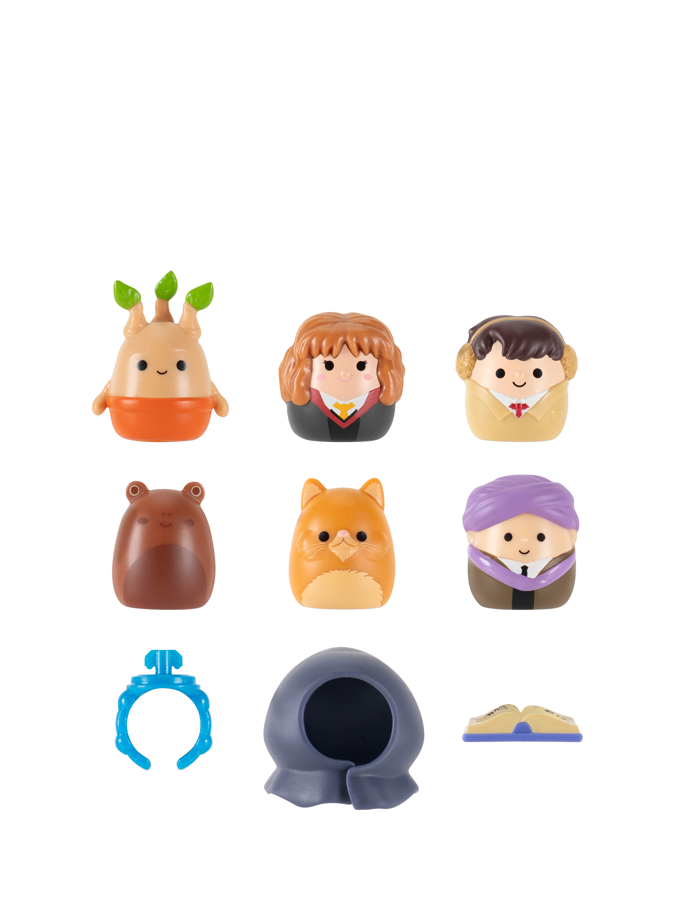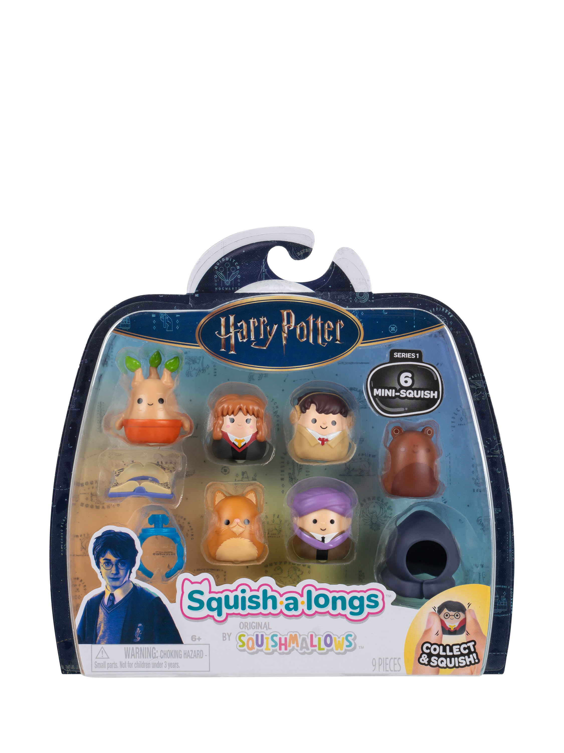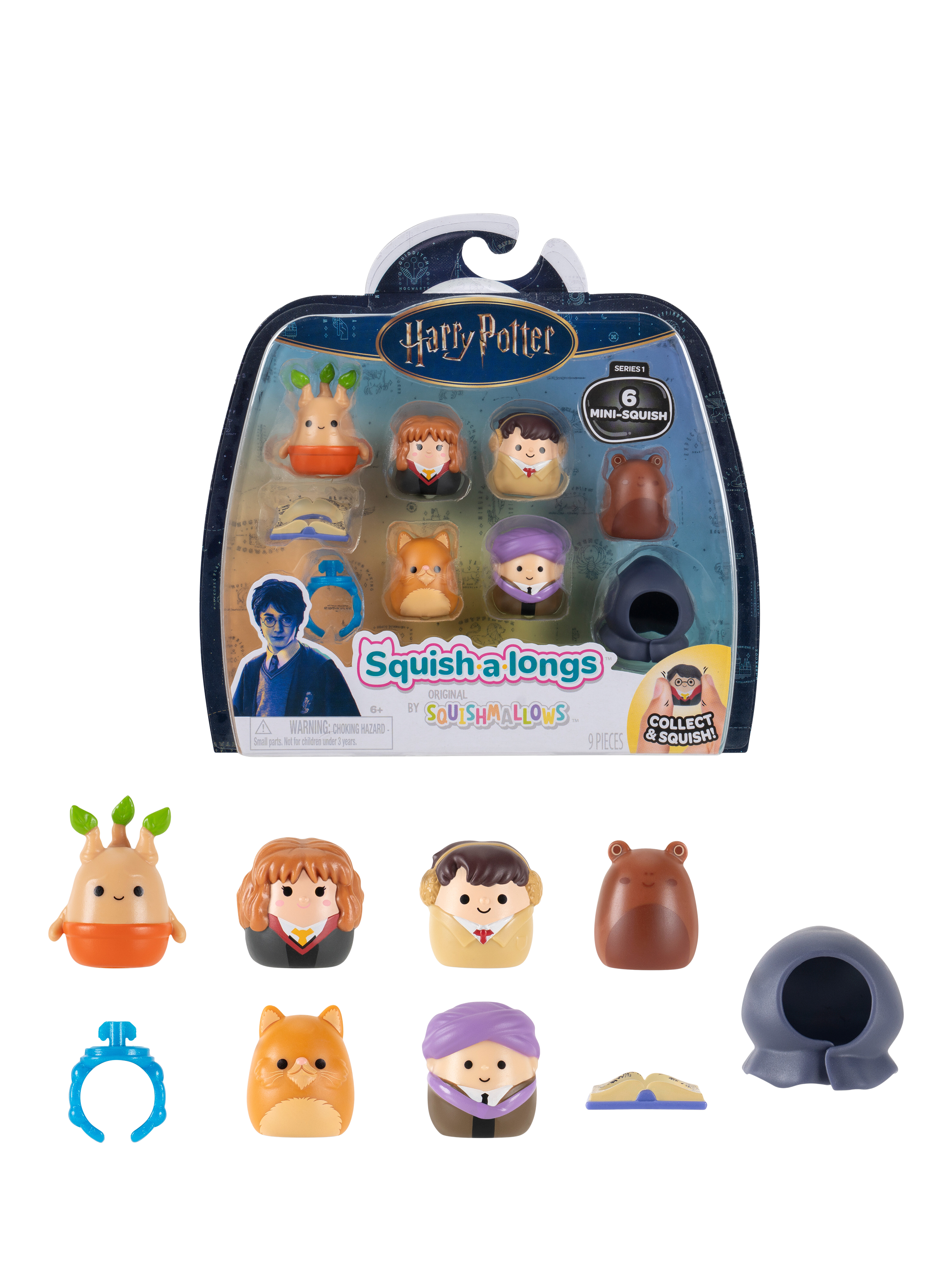 Cast a spell on your Squad with “Harry Potter” Squish-a-longs! This Squish-a-longs multipack includes 6 “Harry Potter” Mini-Squish — Hermione Granger, Chocolate Frog, Mandrake, Neville Longbottom, Crookshanks, and Quirinus Quirrell - in addition to Wizard Cloak and Potions Book accessories for Mini-Squish styling. Play or display your “Harry Potter” Squish-a-longs at home, or attach your Mini-Squish to the included ring accessory to take the magic on the go!