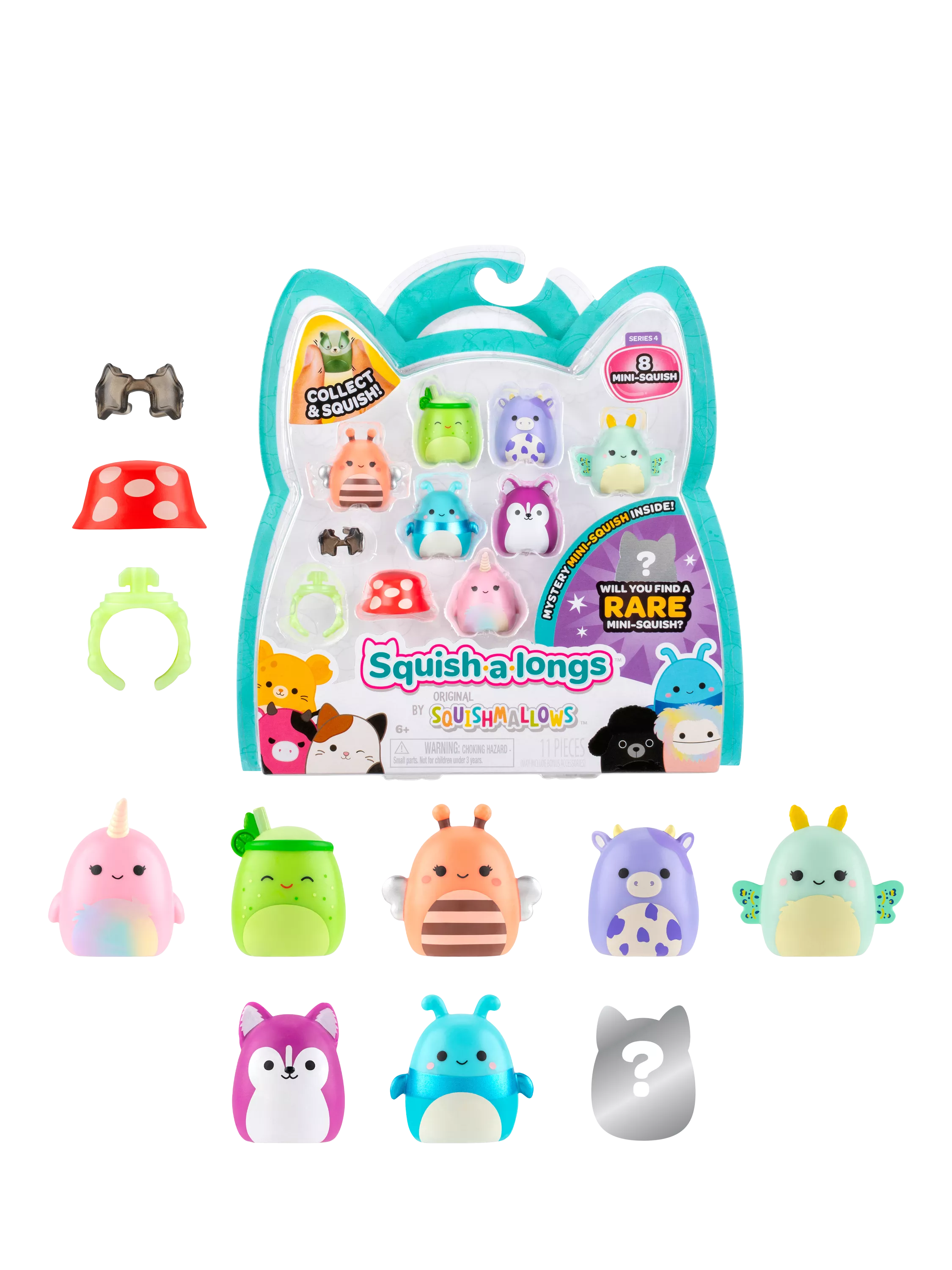 Squish on the go with Squish-a-longs! These portable plastic collectibles are made of squeezable plastic and feature your favourite Squishmallows in their smallest size yet. With plenty of ways to Squish, in addition to 140+ Mini-Squish in Wave 4 alone, the Squish might be small, but the possibilities are endless.
