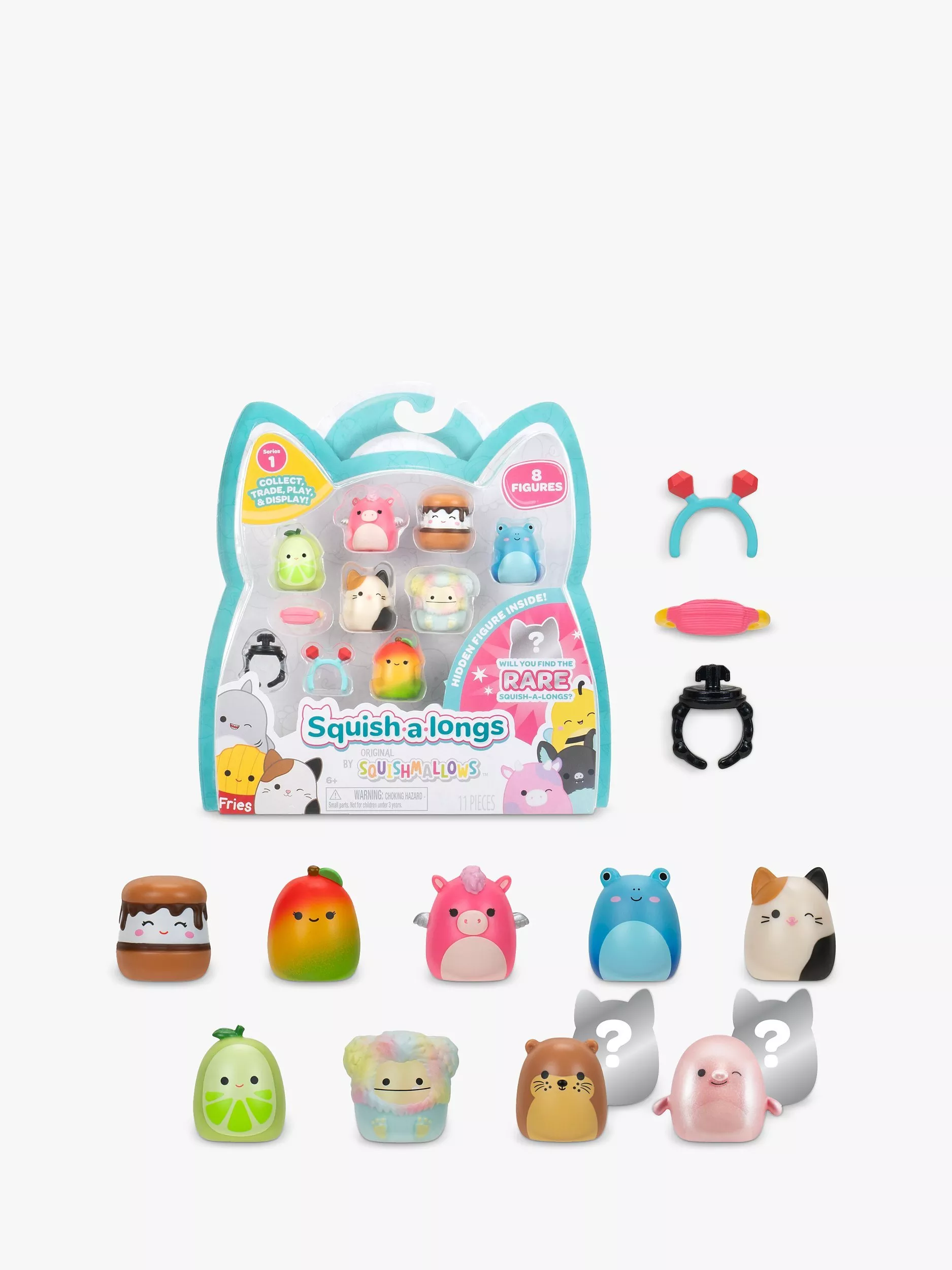Get ready for a new level of squish with Squish-a-longs, the latest addition to the Squishmallows family! An adorable and portable collectible, Squish-a-longs Mini-Squish, made of squeezable plastic, is perfect with its 1-inch size! The fun is endless, with over 140+ Mini-Squish to collect, trade, play, wear, and display! Show off your fandom by wearing the ring and dressing your Mini-Squish with fun accessories like a headband and fanny pack. You can ensure you get them all with the helpful collector's guide. Take advantage of the ultimate Squish fun - start your Mini-Squish collection today!