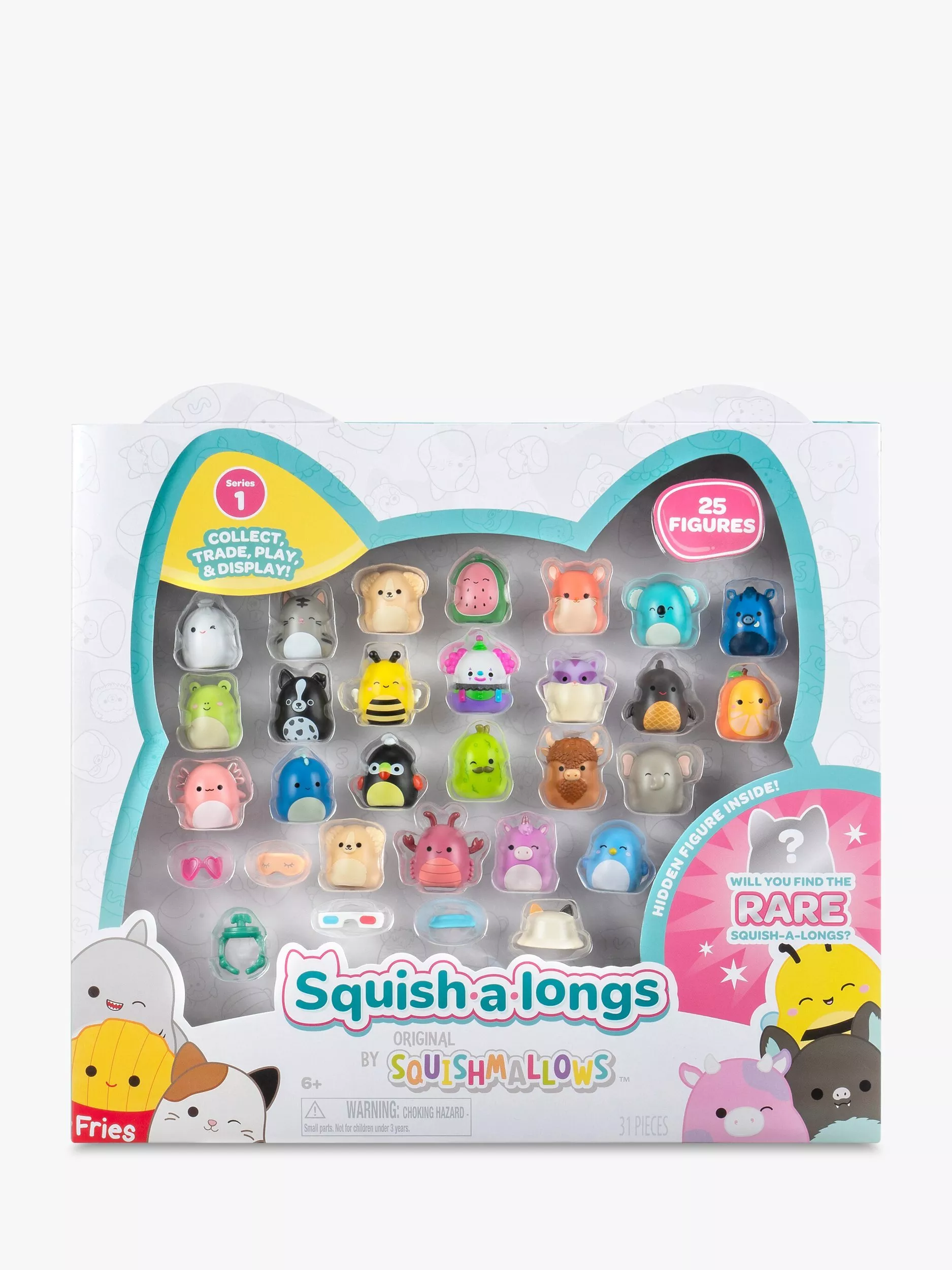 Get ready for a new level of squish with Squish-a-longs, the latest addition to the Squishmallows portable family! An adorable and collectible, Squish-a-longs Mini-Squish, made of squeezable plastic, is perfect with its 1-inch size. The fun is endless, with over 140+ Mini-Squish to collect, trade, play, wear, and display! Show off your fandom by wearing the ring and dressing your Mini-Squish with fun accessories like heart glasses, bucket hats, sleep masks, and more. You can ensure you get them all with the helpful collector's guide. Take advantage of the ultimate Squish fun - start your Squish-a-longs collection today!