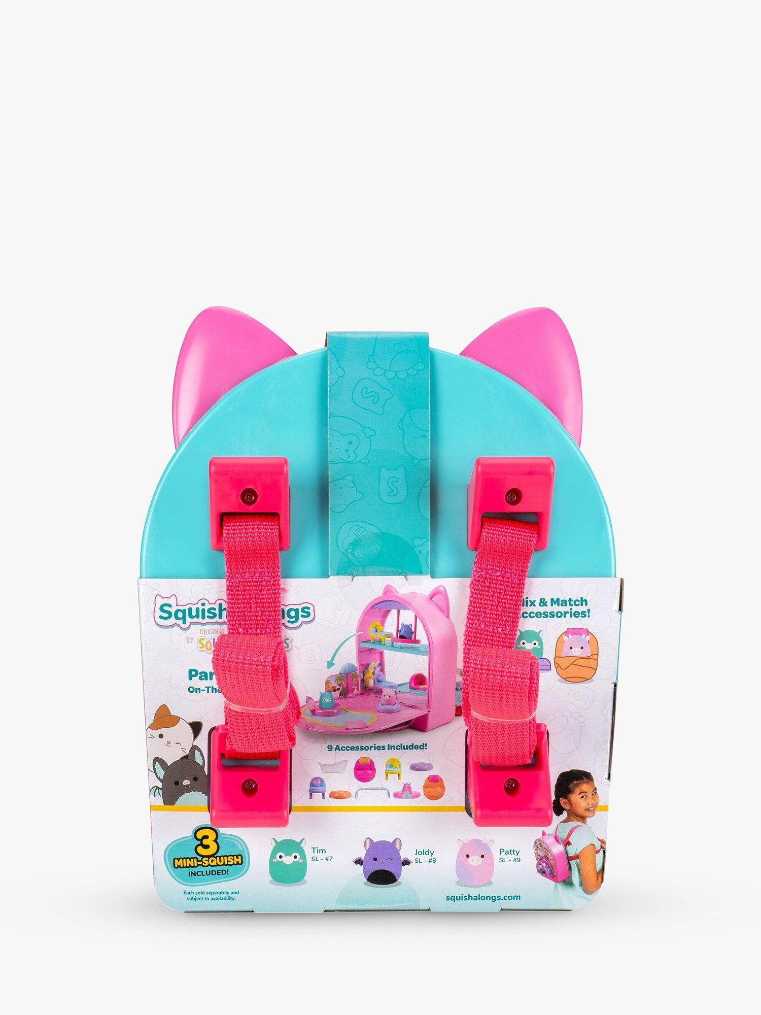 Introducing Squish-a-longs, your favourite Squishmallows in an all-new 1” size! Mini-Squish characters are highly collectible, transform into wearable wonders, and are perfect for on-the-go adventures. The Party Pack On-the-Go Playset is a backpack with adjustable straps and a front storage pocket that transforms into an epic party play scene. It’s the ultimate party destination with multiple play areas, including a second-story lounge with a working swing, 3 Mini-Squish, and 9 Squish Furnishings, such as cosy bean bag chairs and a pool floatie. Join the fun with over 140+ Mini-Squish available in playsets.