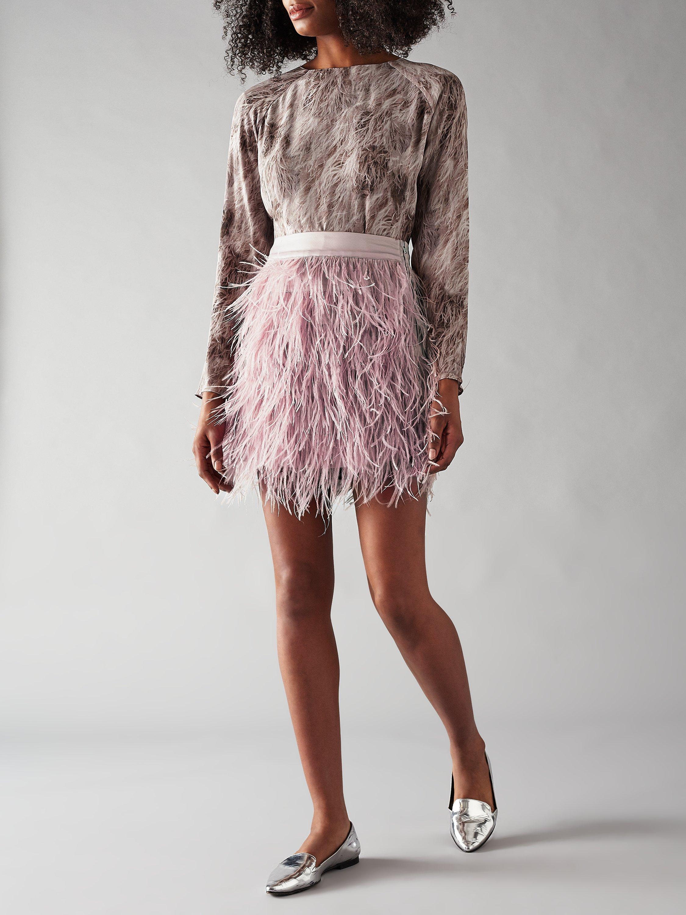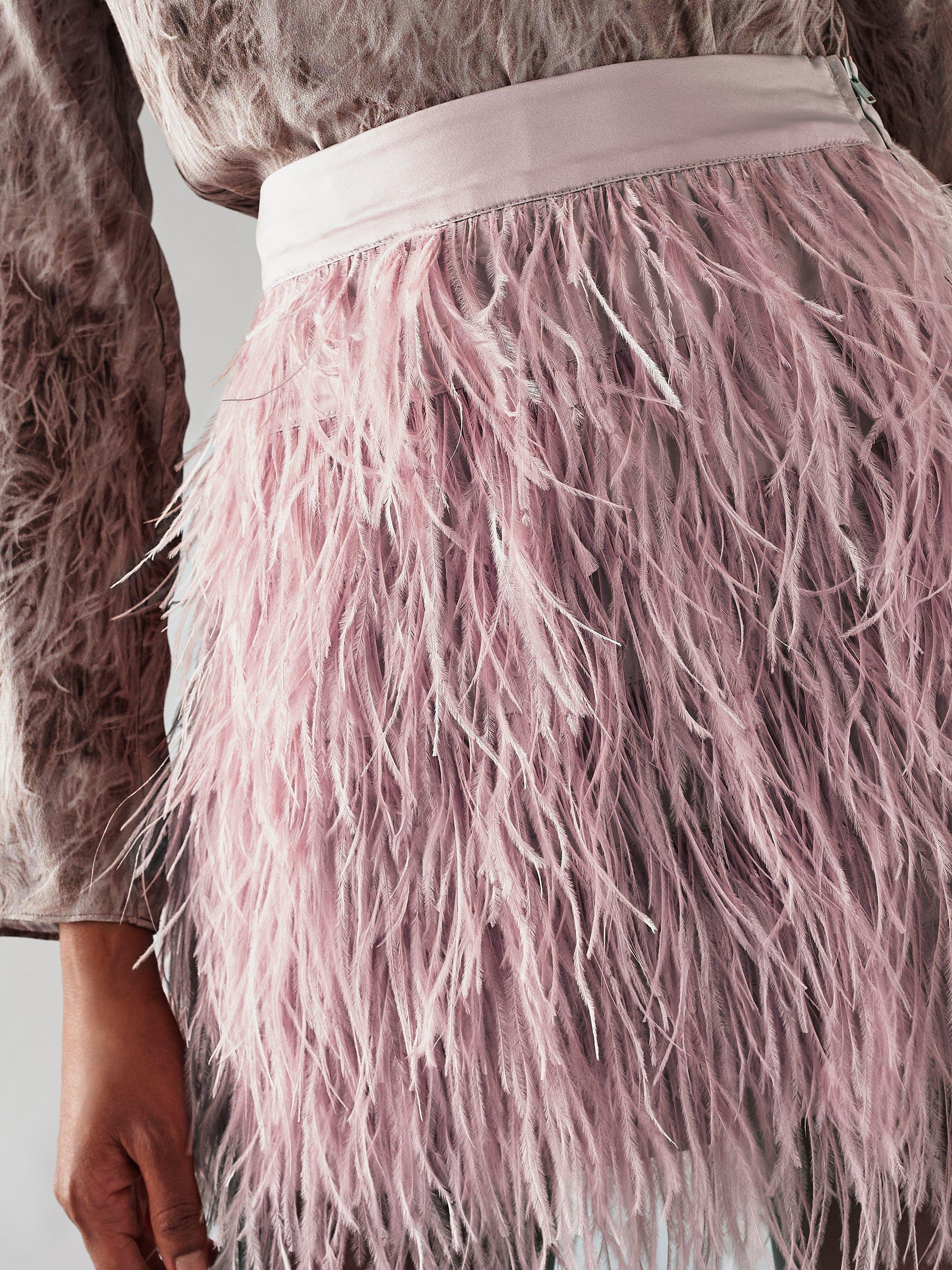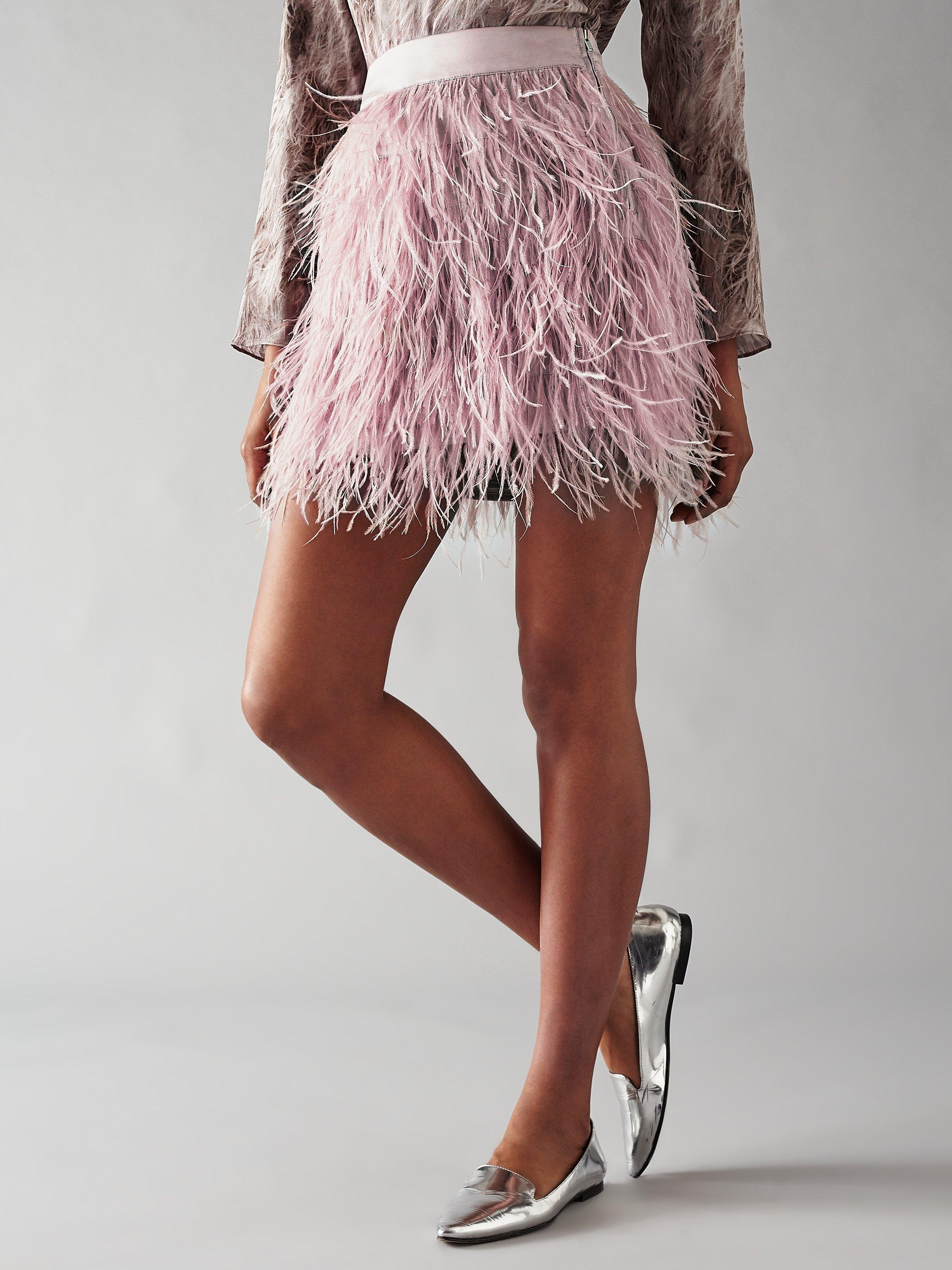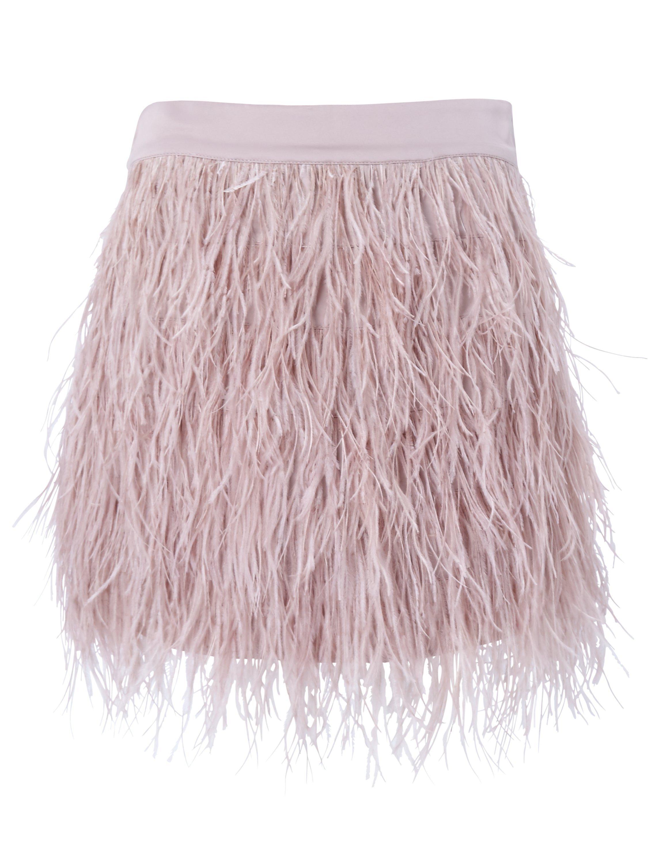 Lend your feminine silhouette a pretty update with this fabulous mini feather skirt from ST Studio.