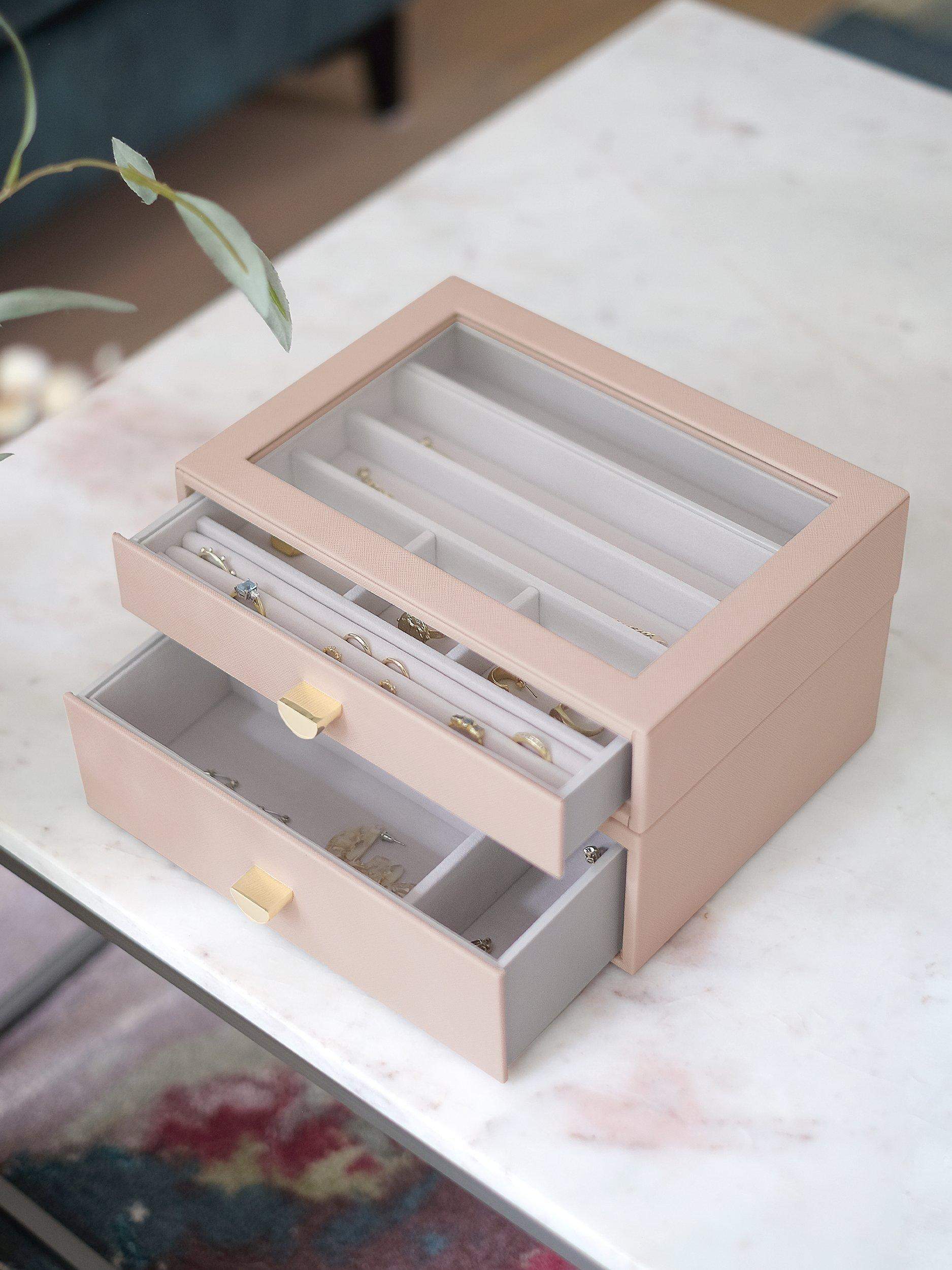 There'll be no excuse for your favourite jewellery to be anything other than tangle-free and organised! The Classic Drawer Set of 2 is ideal for almost every jewellery collection. With plenty of space to keep your necklaces, rings, earrings, watches and more, beautifully organised and safe. Featuring a clear glass lid for visibility and easy access to your favourite pieces. Whatsmore, you can easily add another jewellery drawer layer as your collection grows! Don't forget you can tailor your jewellery box drawers even further with new layers and accessories.