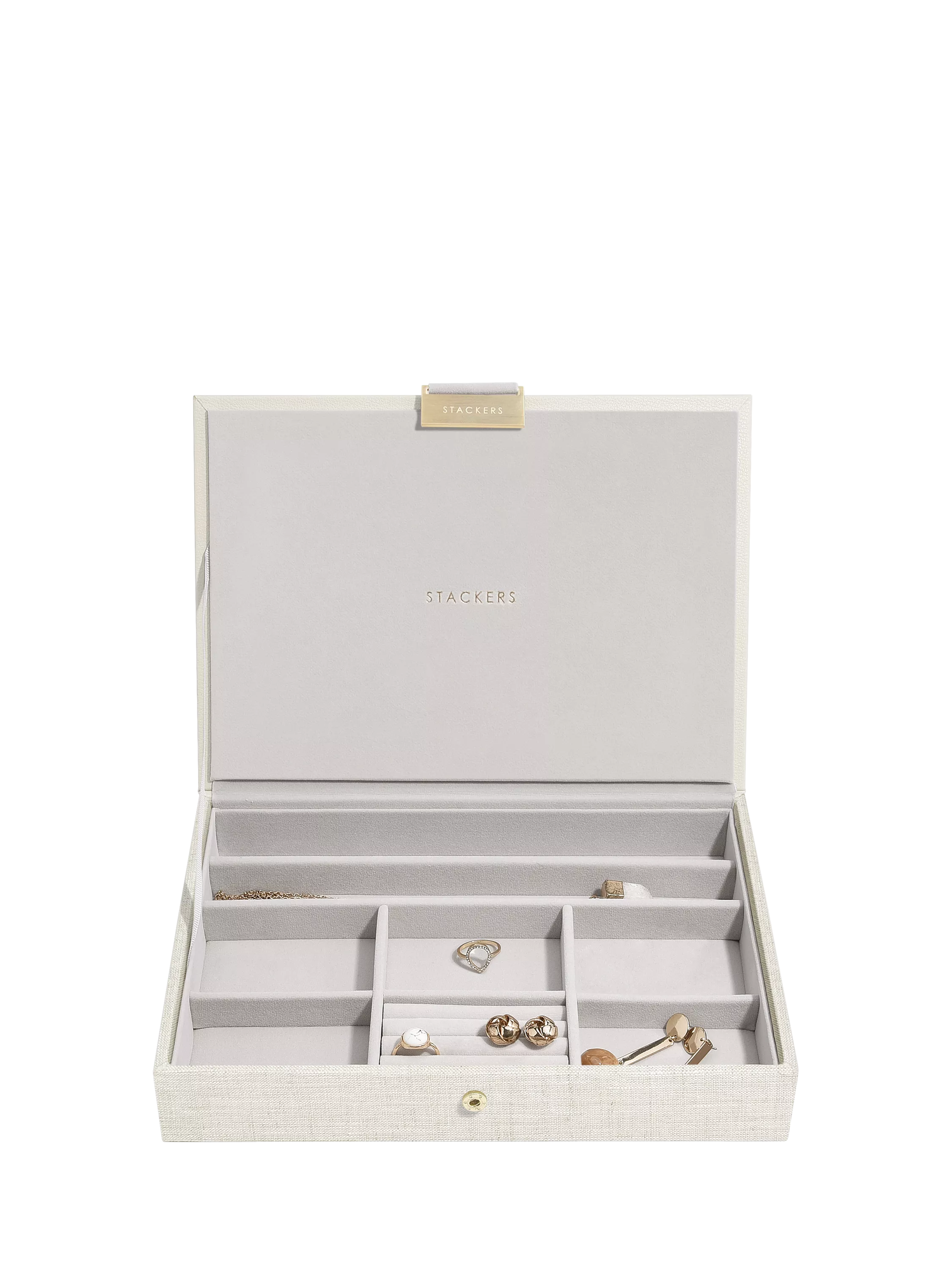 The Classic Jewellery Box Lid is the perfect starting point to your Stackers jewellery box or to use as a stand-alone piece on your dresser. Our unique stackable jewellery boxes are cleverly designed so you can create your own, by choosing which layers and accessories best suit your jewellery collection.
