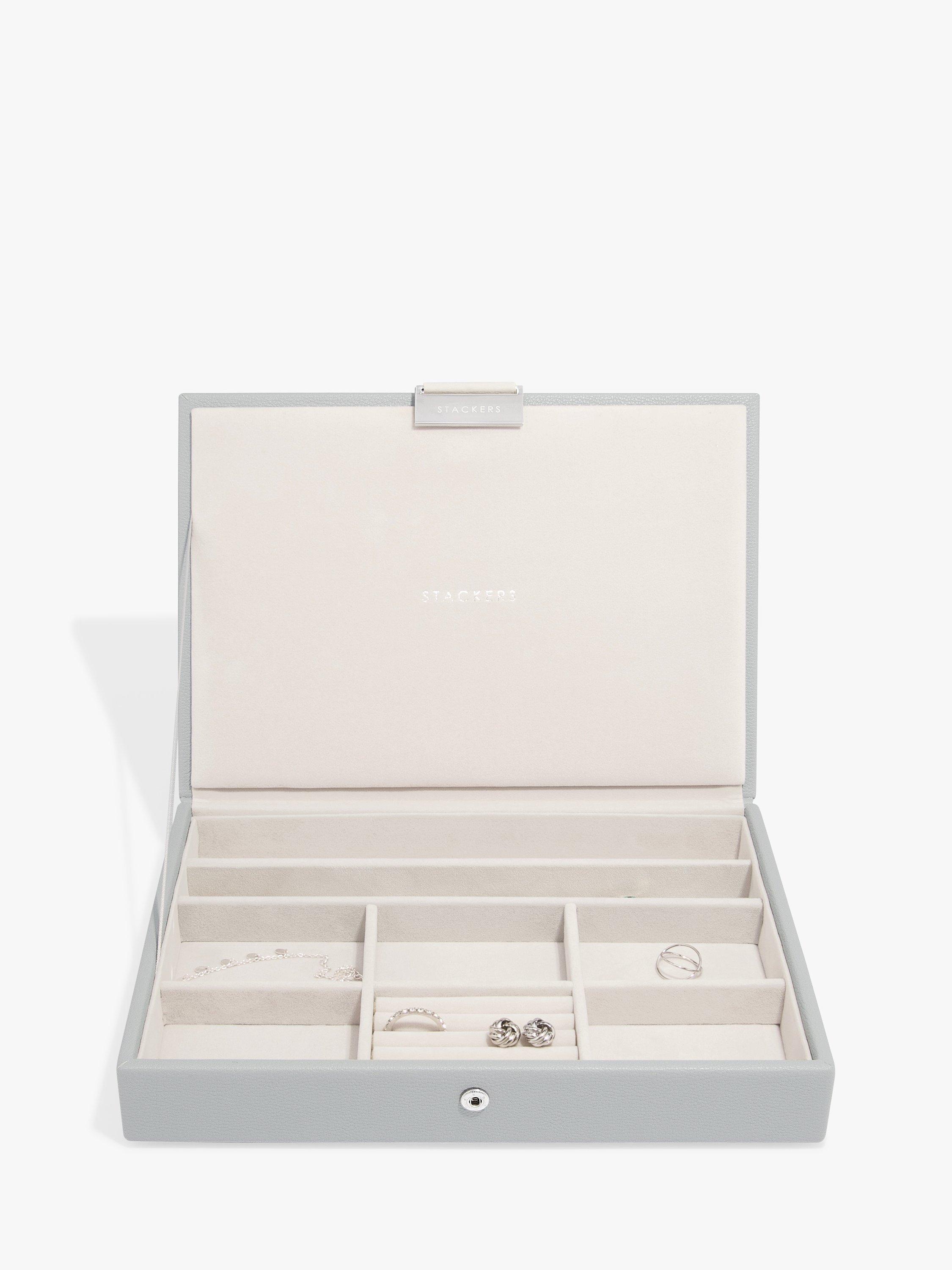 The ideal way to keep on top of your ever expanding jewellery collection. Stackers are designed the same size, so you can mix and match the colours and compartments you need. With a velvet lining, this lidded box is ideal on its own and has room for rings, earrings and necklaces.
