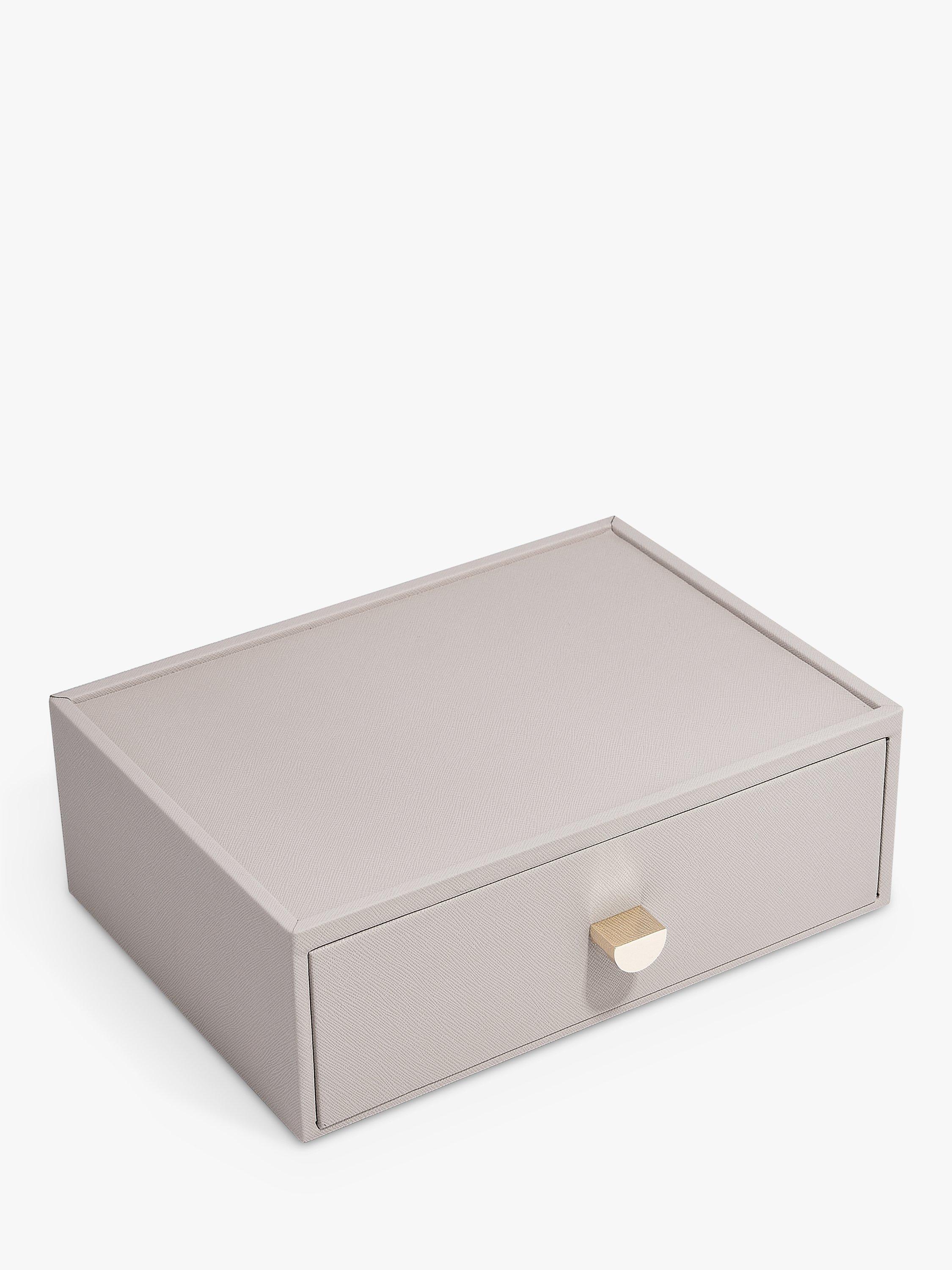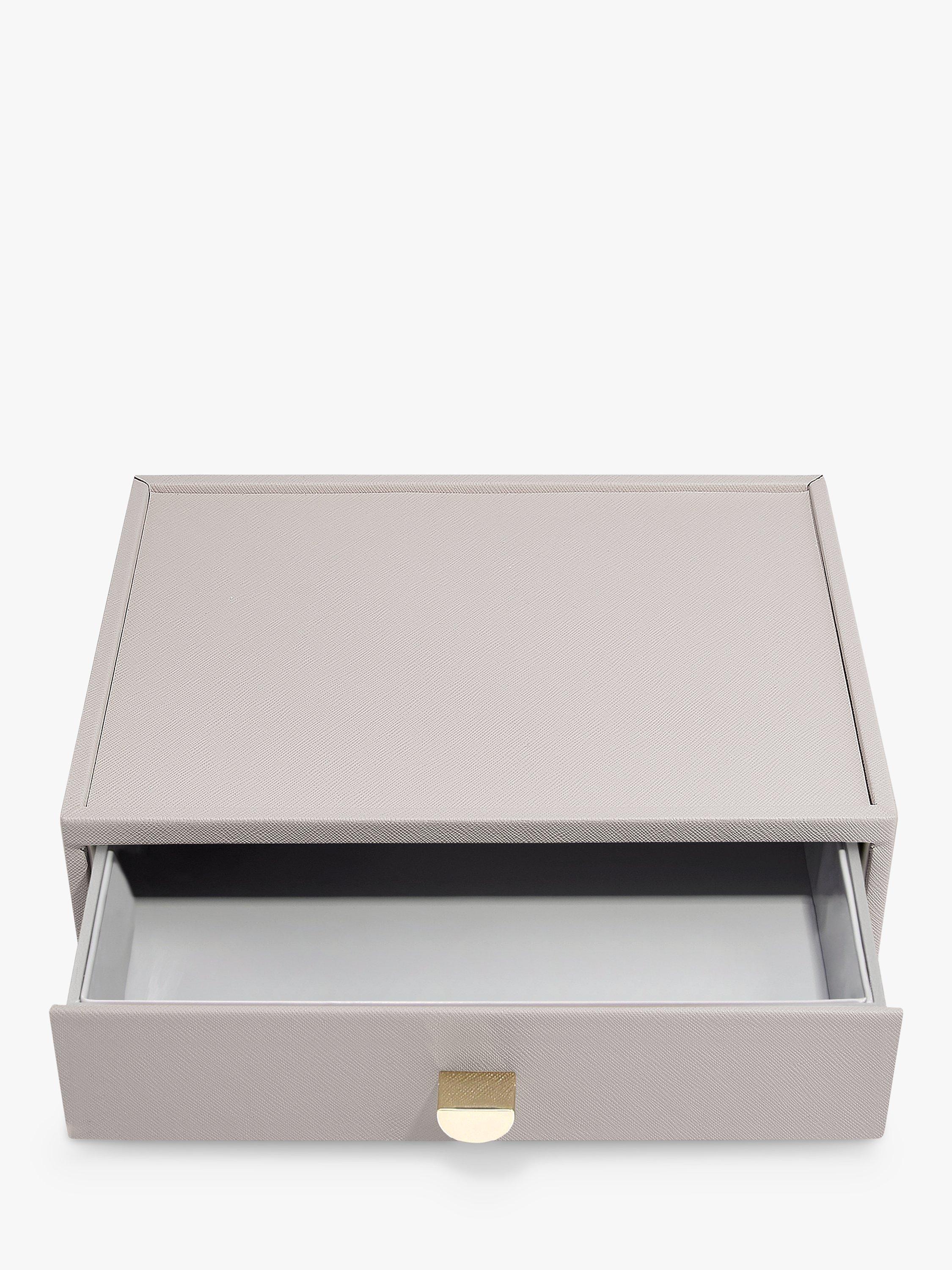 Designed to fit with your Stackers Makeup Organiser, this Makeup Organiser Drawer features a faux leather exterior and a wipeable lining. Pair it with the Makeup Organiser to complete your ultimate makeup storage. A growing collection? No problem add as many layers as you need!
