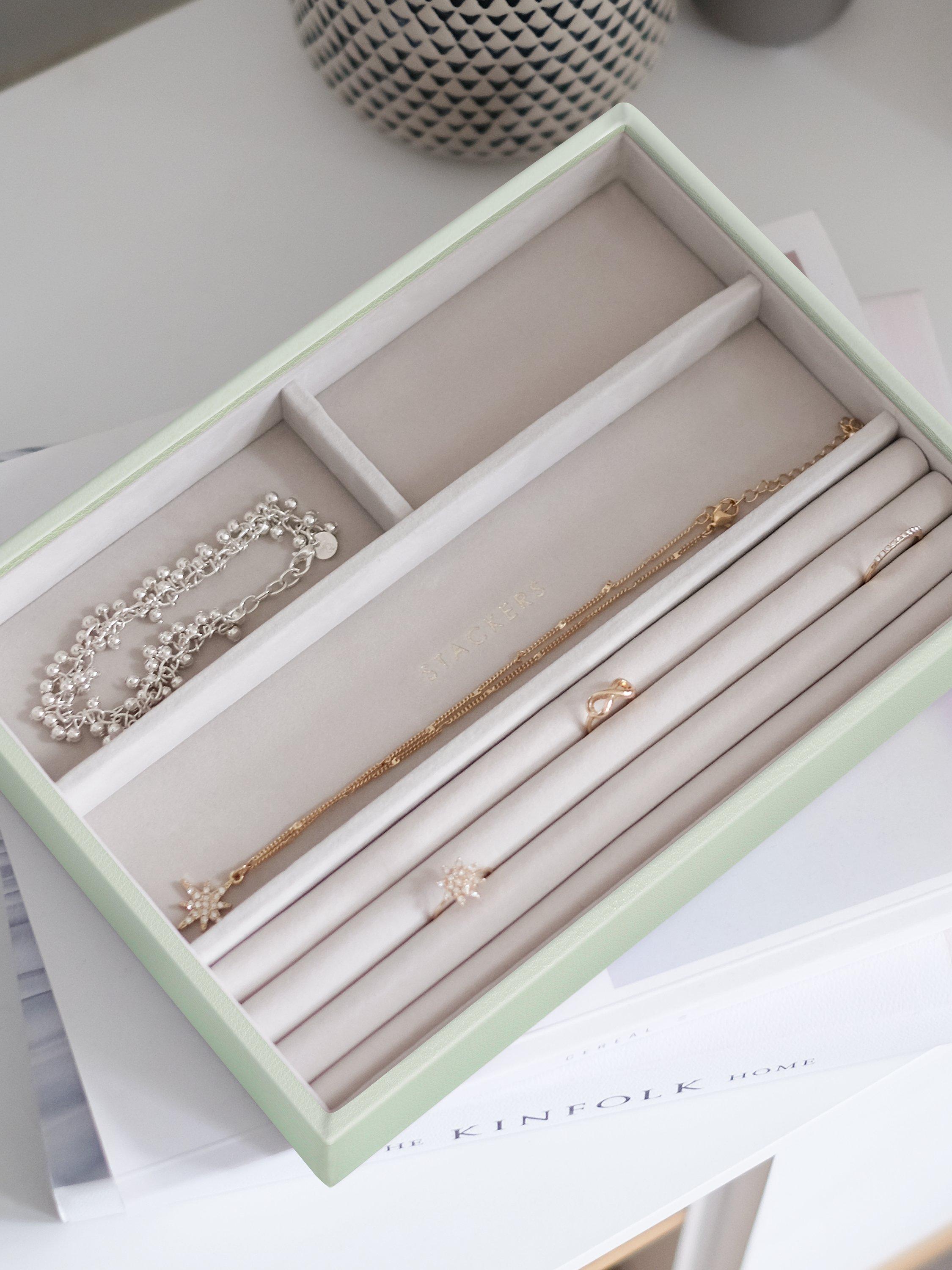 The ideal way to keep on top of your ever expanding jewellery collection. Stackers are designed the same size, so you can mix and match the colours and compartments you need. With a velvet lining, this 4-section tray has long areas, ideal for watches, necklaces and any other small trinkets you want to store safely and keep organised.