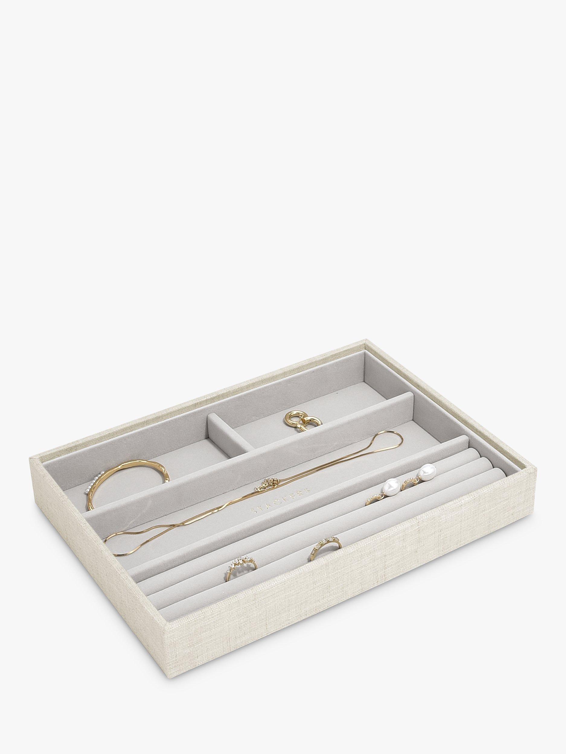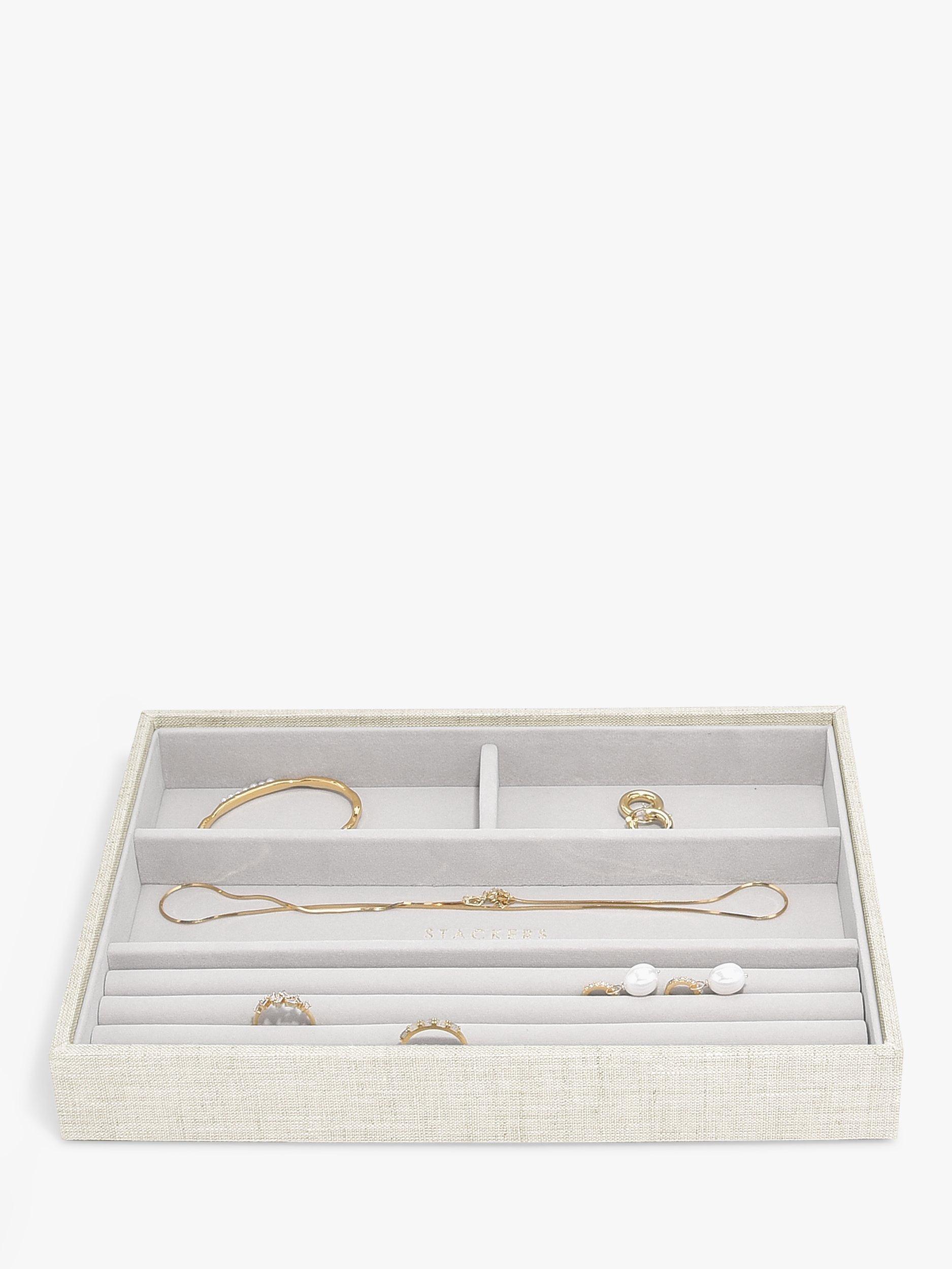 The ideal way to keep on top of your ever expanding jewellery collection. Stackers are designed the same size, so you can mix and match the colours and compartments you need. With a velvet lining, this 4-section tray has long areas, ideal for watches, necklaces and any other small trinkets you want to store safely and keep organised.