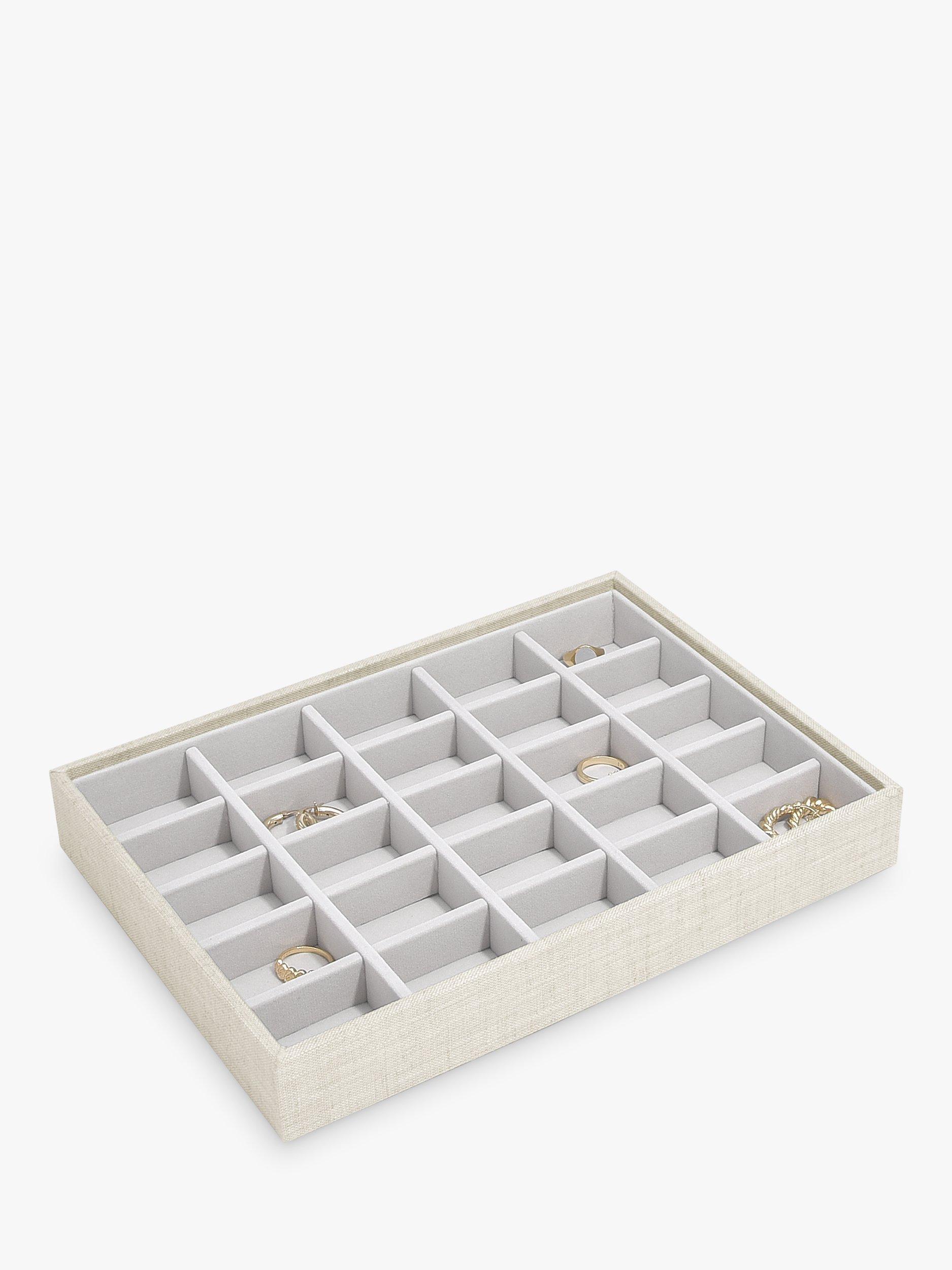 The perfect storage solution for all your earrings, rings and charms. Stackers are designed the same size, so you can mix and match the colours and compartments you need. With a velvet lining, this 25-section tray is the ideal way to keep on top of your ever expanding jewellery collection.