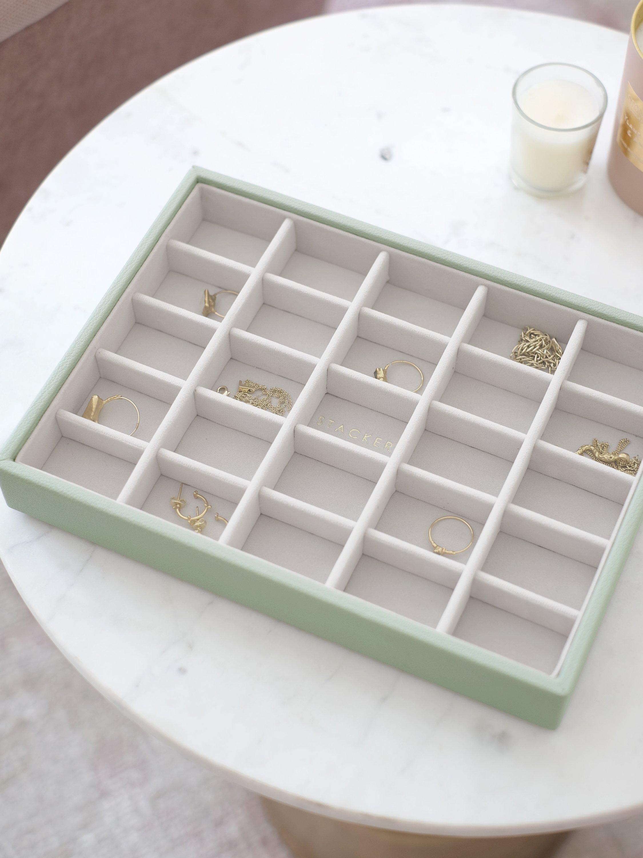 The perfect storage solution for all your earrings, rings and charms. Stackers are designed the same size, so you can mix and match the colours and compartments you need. With a velvet lining, this 25-section tray is the ideal way to keep on top of your ever expanding jewellery collection.