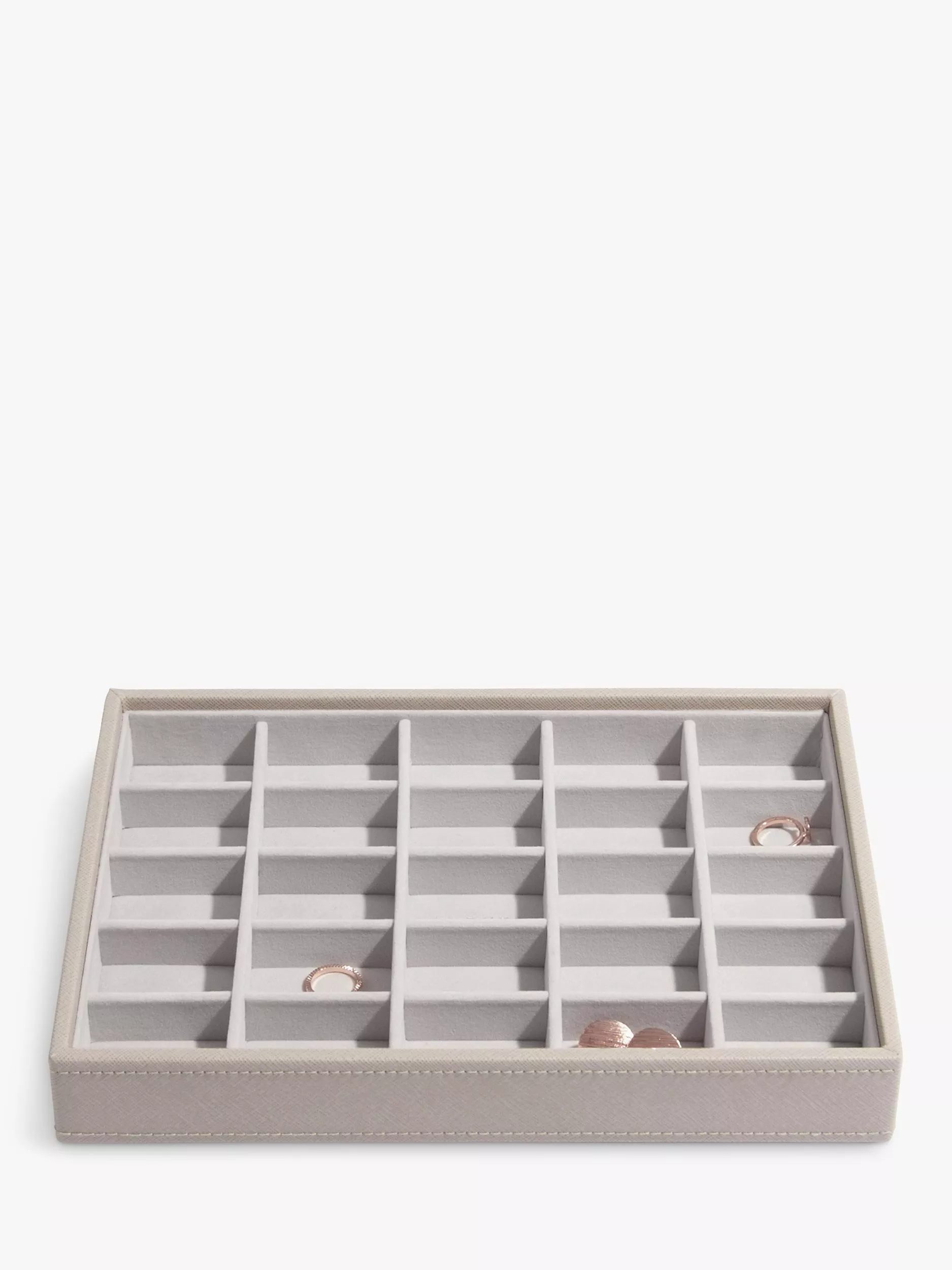 The perfect storage solution for all your earrings, rings and charms. Stackers are designed the same size, so you can mix and match the colours and compartments you need. With a velvet lining, this 25-section tray is the ideal way to keep on top of your ever expanding jewellery collection.