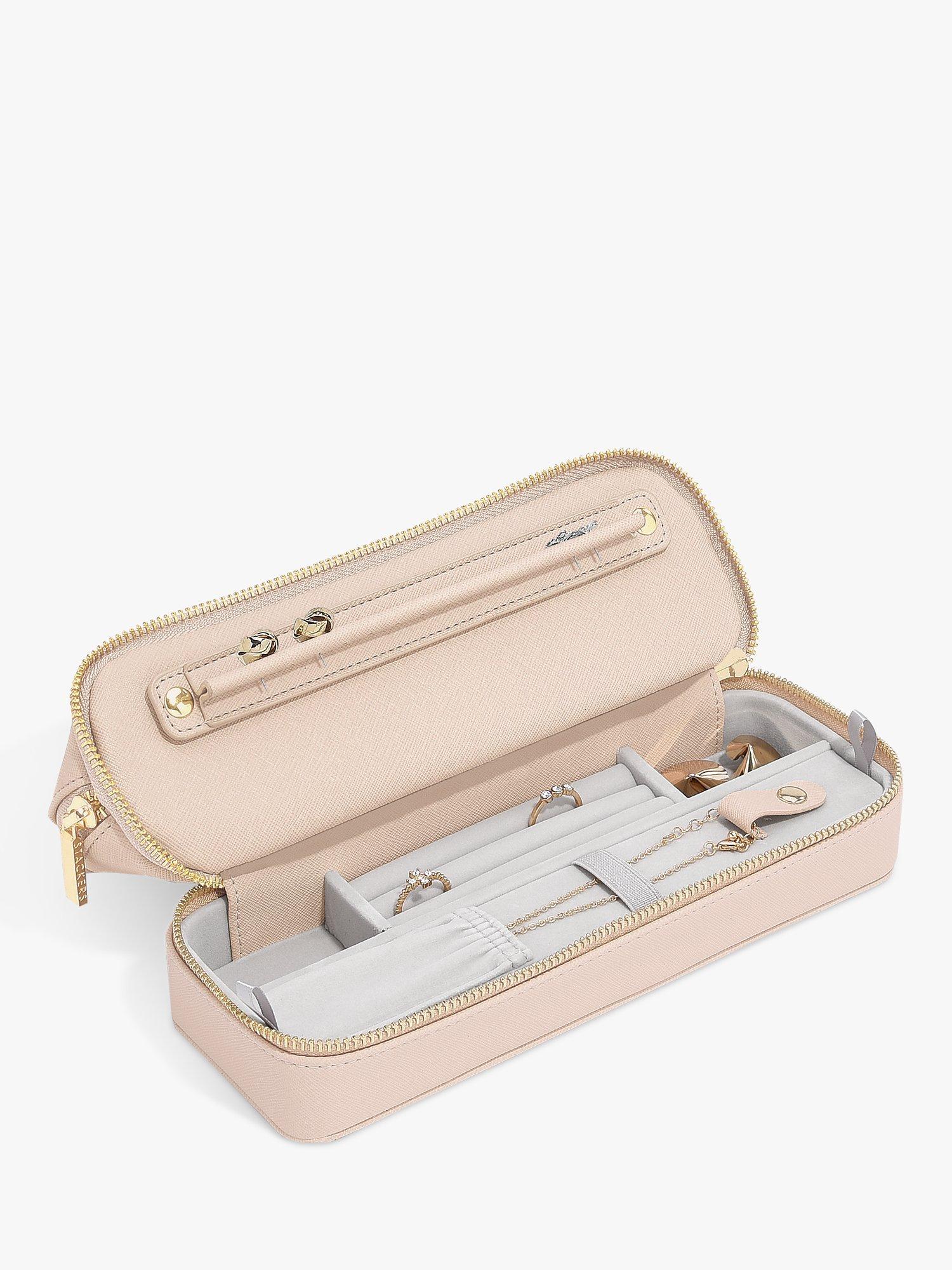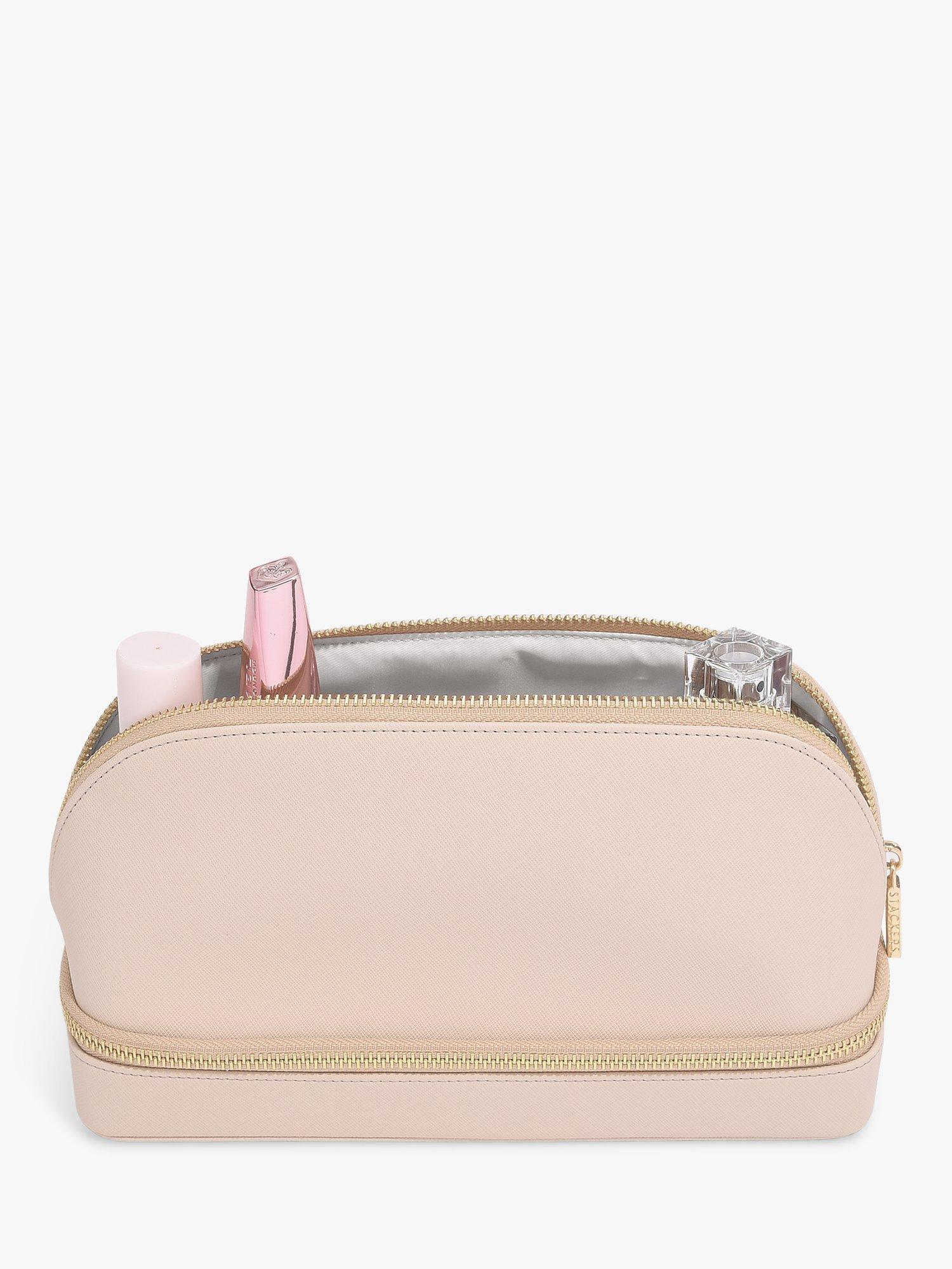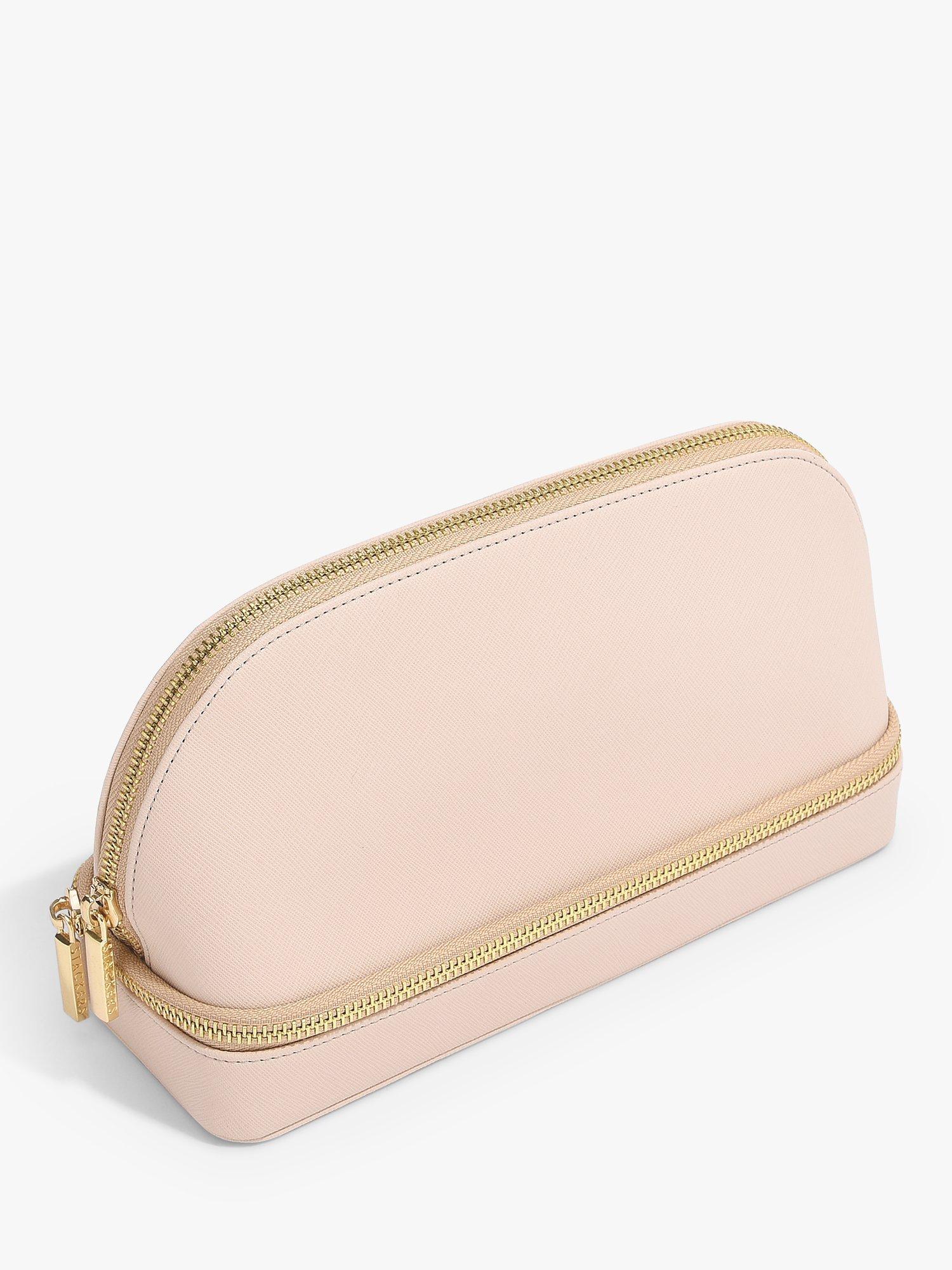 The zipped compartment at the bottom has been designed to keep your jewellery secure, with a removable necklace section, ring roll, removable stud earring section and small sections for additional trinkets. The large top section can comfortably fit your makeup collection and includes a small pocket with a removable mirror for when you are on-the-go.