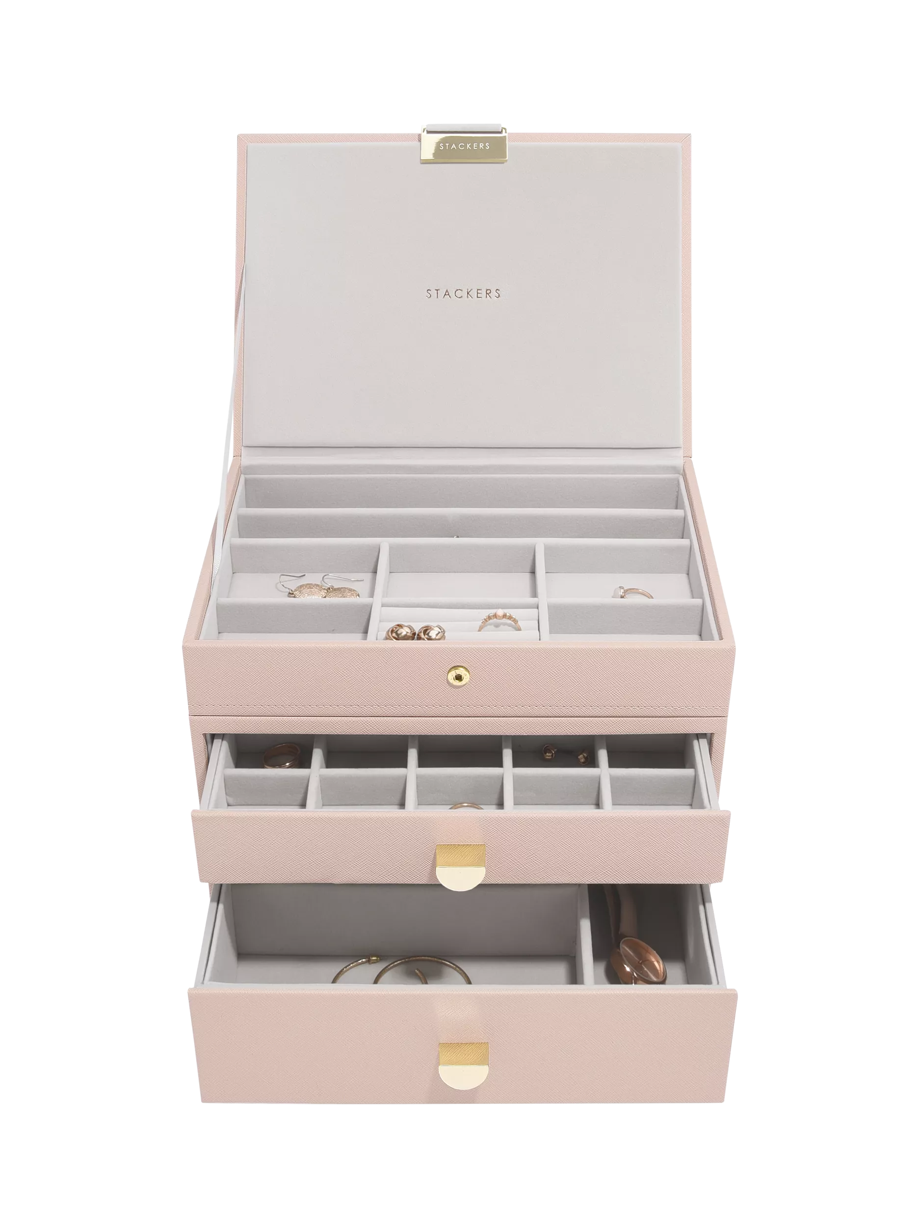 StackersFaux Leather Classic Jewellery Box 2-Drawer Set, Blush Pink