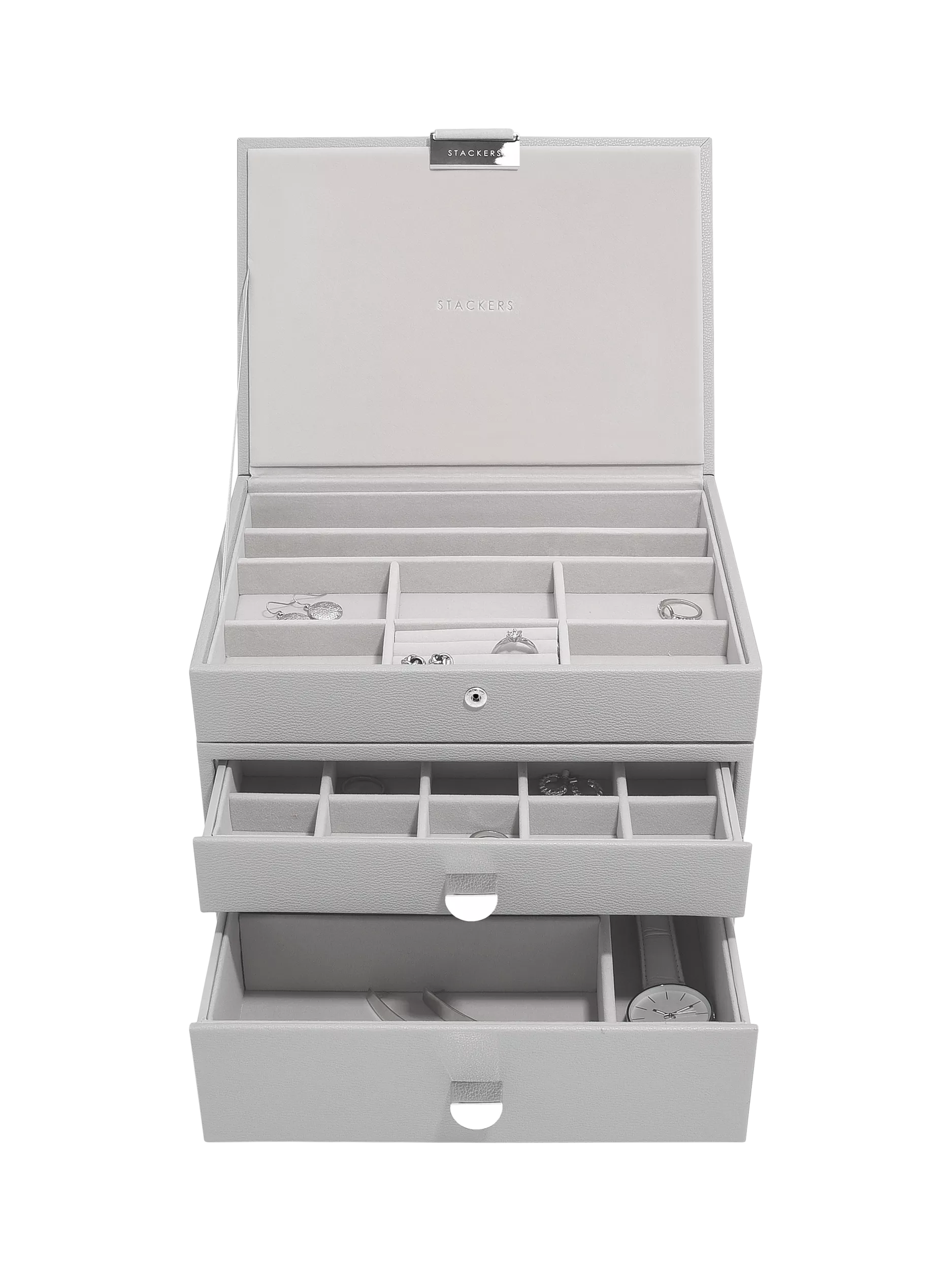 Stackers jewellery boxes are designed with a soft velvet lining to keep precious jewellery protected and with plenty of compartments to avoid any tangled pieces.