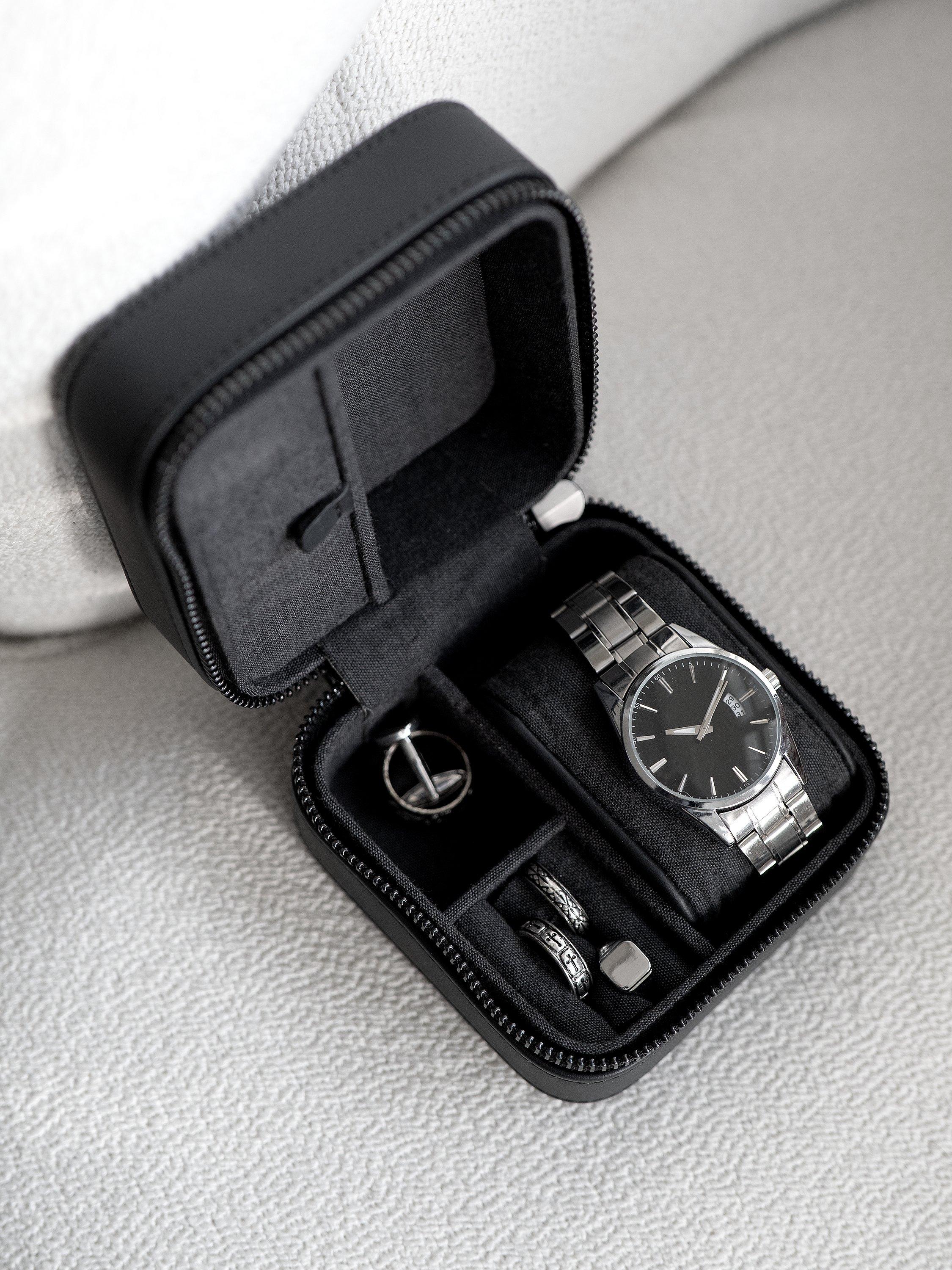 The Watch & Jewellery Box is the perfect solution for compact jewellery storage, whether you're travelling or want to store a small collection on your dresser or bedside.