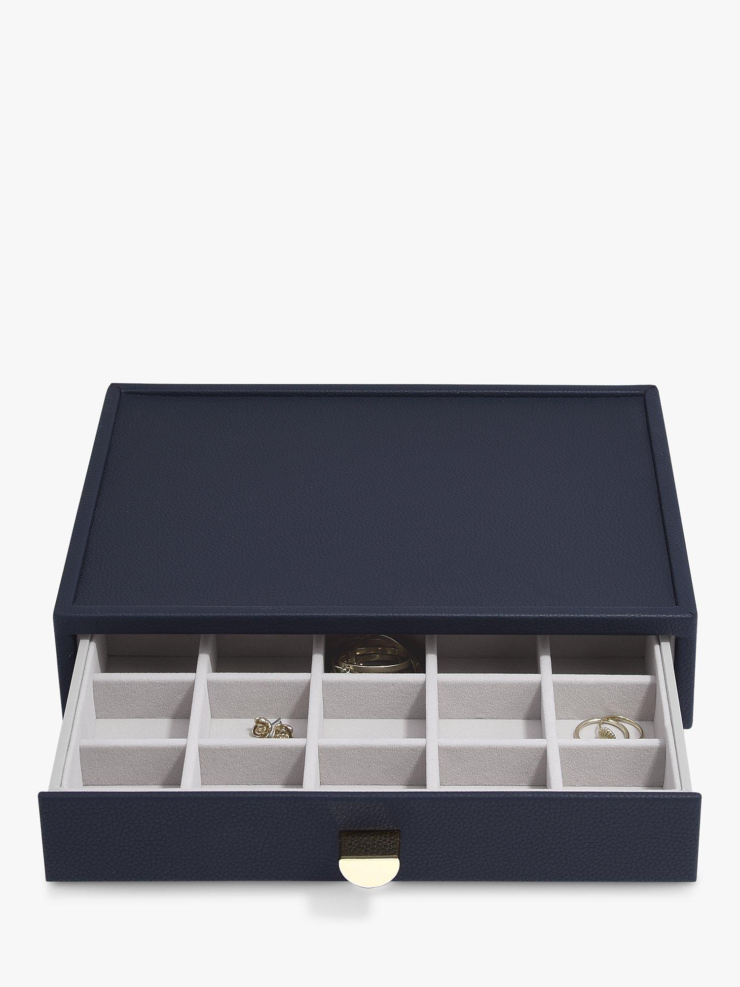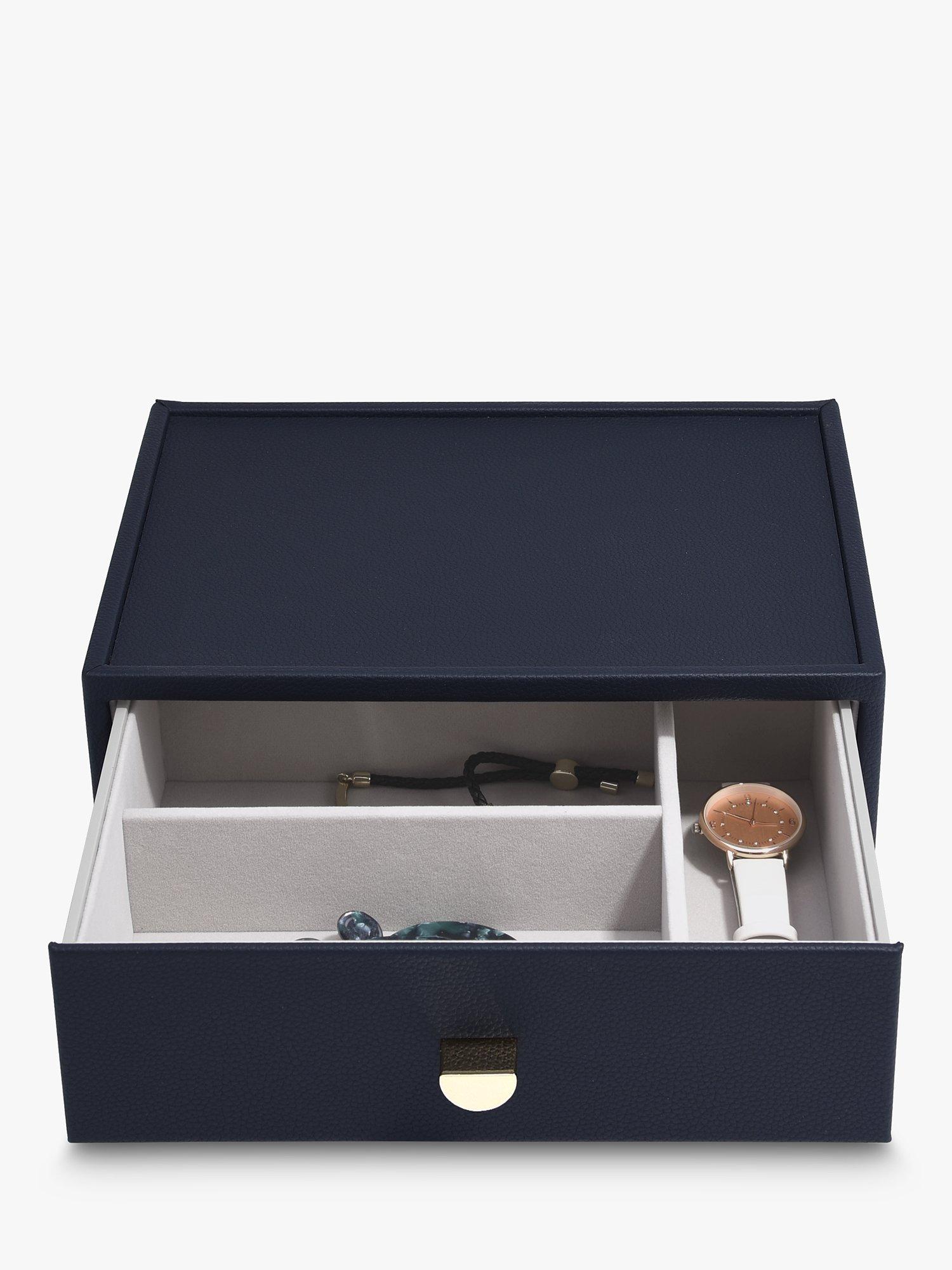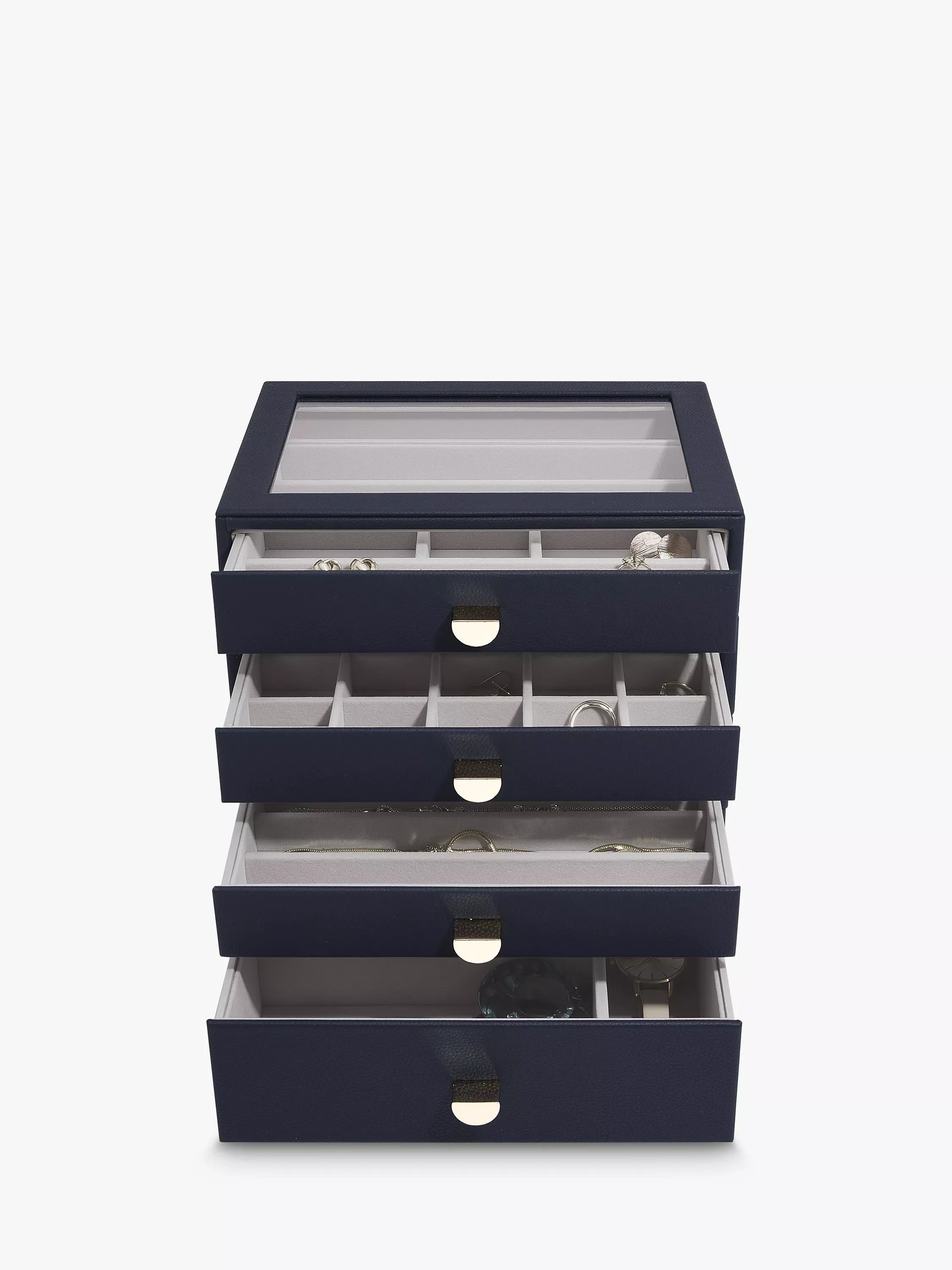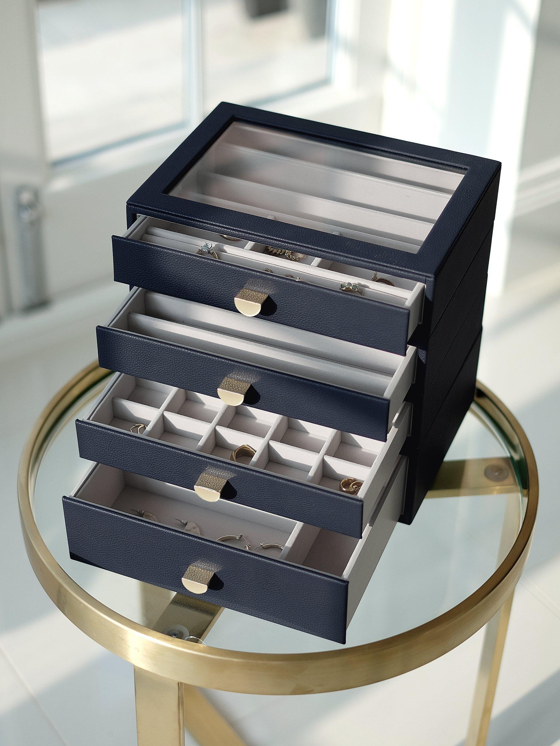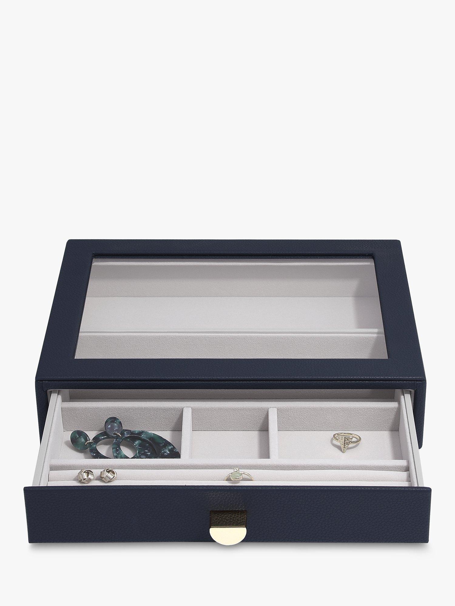 There'll be no excuse for your favourite jewellery to be anything other than tangle-free and organised! The Classic Drawer Set of 4 is ideal for almost every jewellery collection. With plenty of space to keep your necklaces, rings, earrings, watches and more, beautifully organised and safe. Whats more, you can easily add another jewellery drawer layer as your collection grows! Featuring a clear glass lid for visibility and easy access to your favourite pieces.