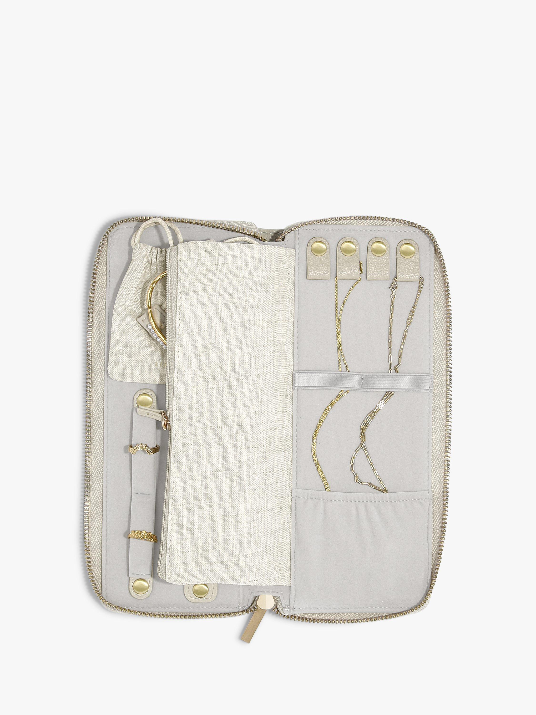 In a handy fold up style for easy transportation, this jewellery storage wallet is designed with plenty of handy sections and features - each one made to carry a specific jewellery type.