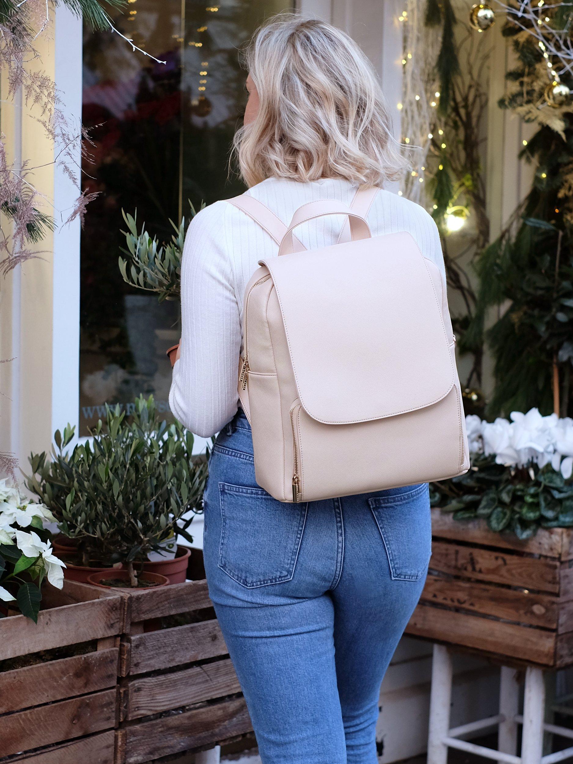 Bring some order to everyday..With a faux leather exterior, this backpack includes a large internal padded sleeve for your laptop (up to 13 inch), multiple pockets, a space for your drinks bottle and a large compartment for all your daily essentials. There are additional zipped pockets to the back and the inside of the lid as well a large zipped pocket with elasticated compartments for smaller accessories