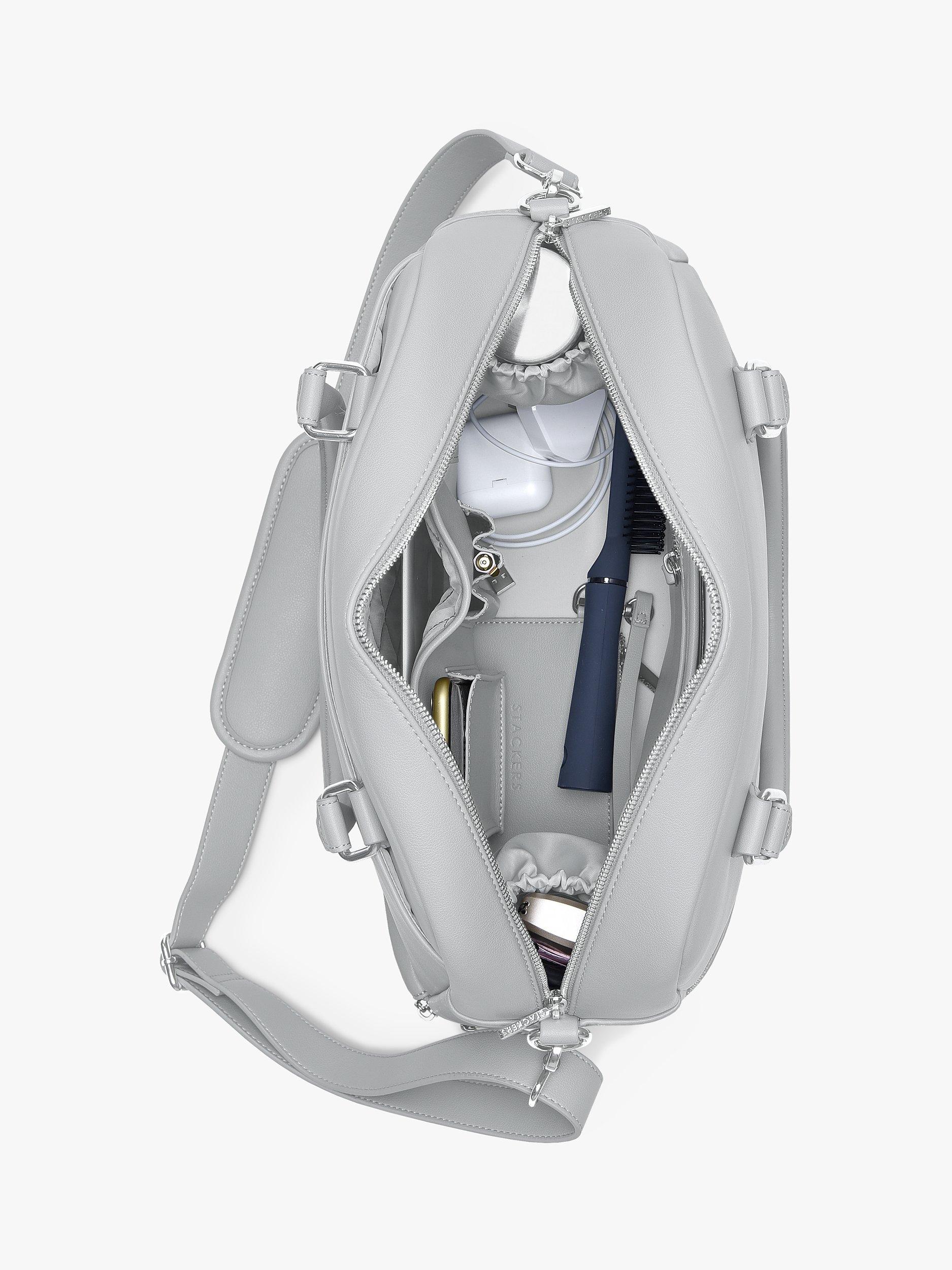 - Zipped base compartment featuring a removable drawstring pouch – pouch is machine washable