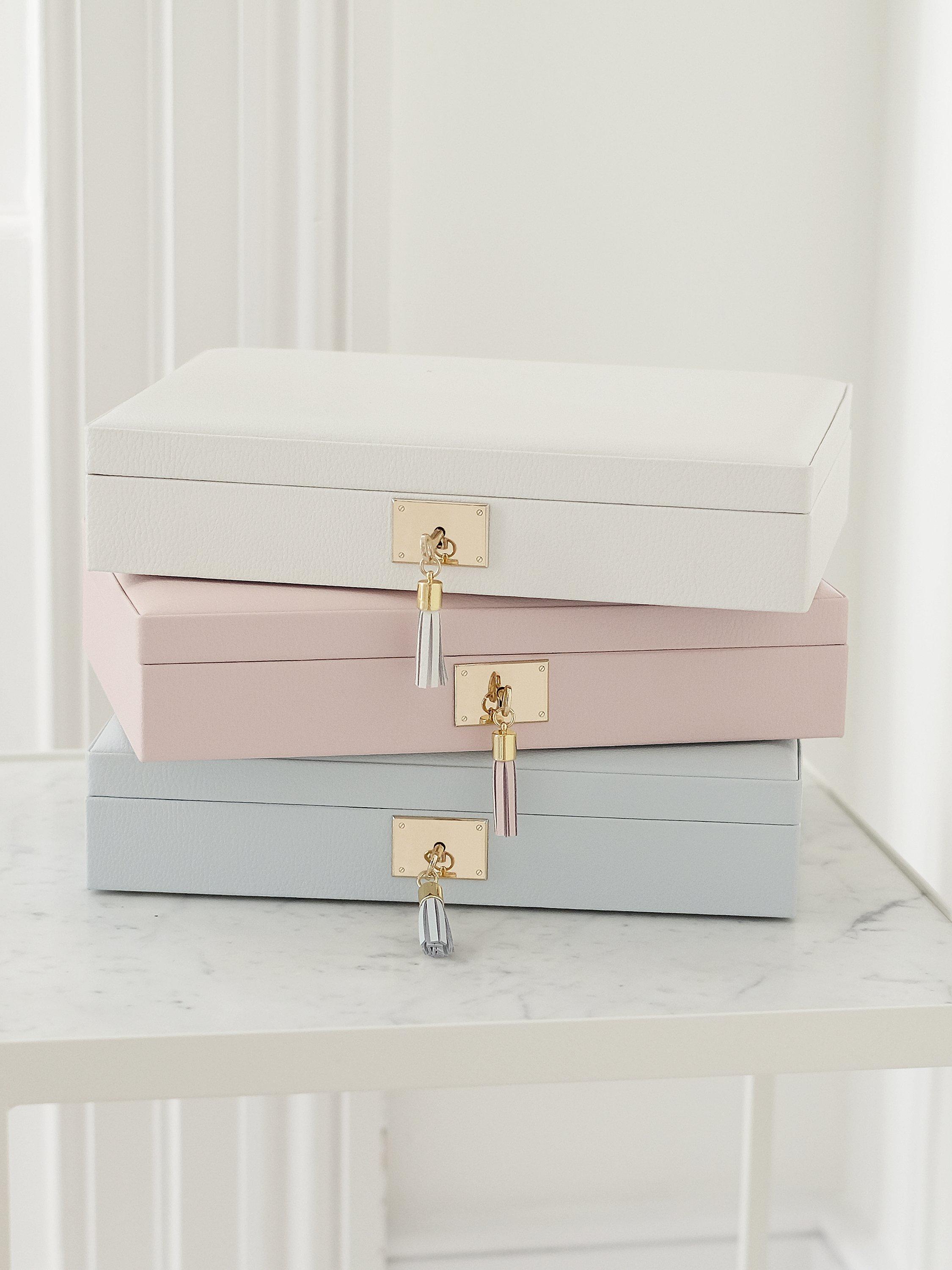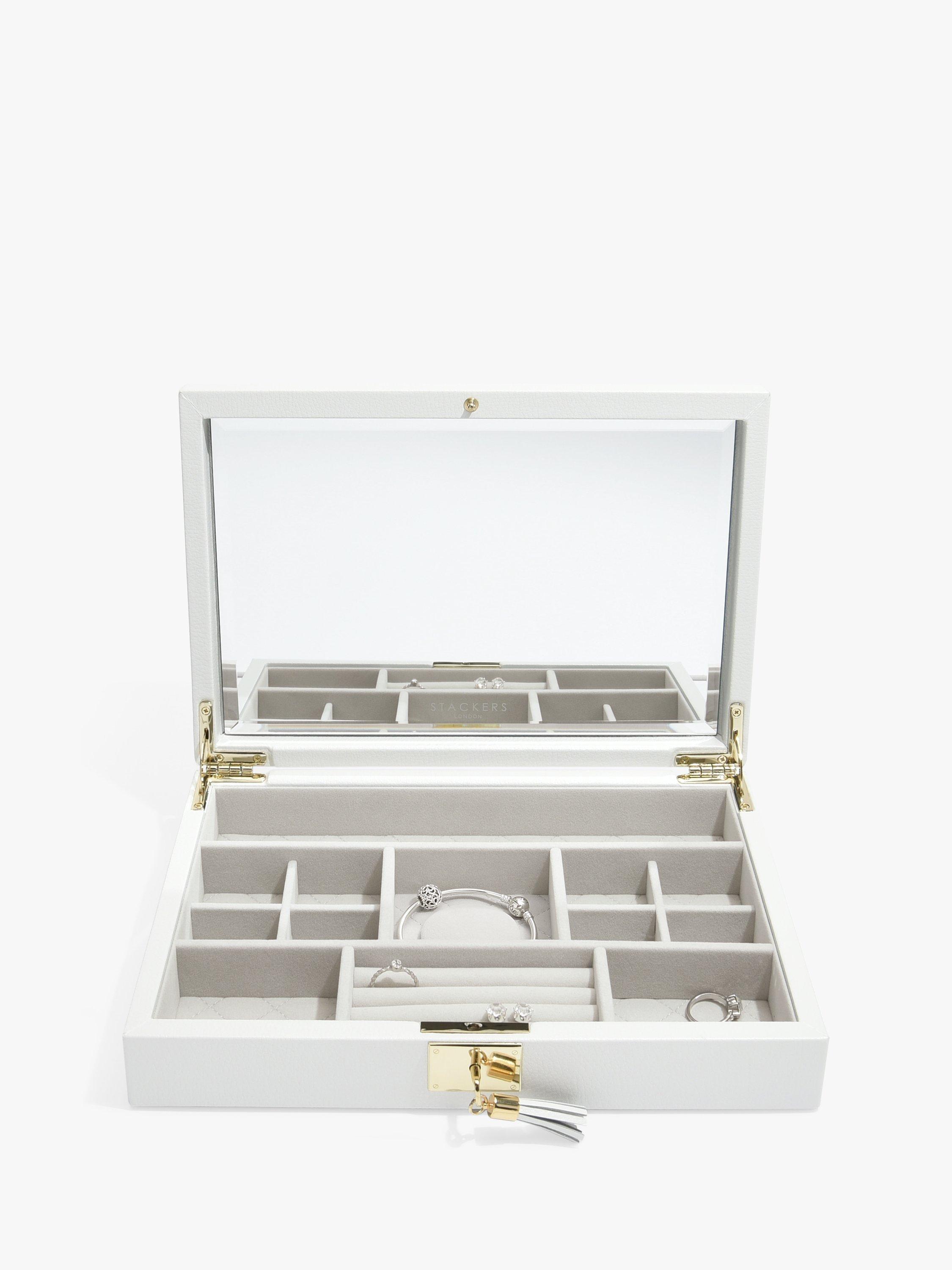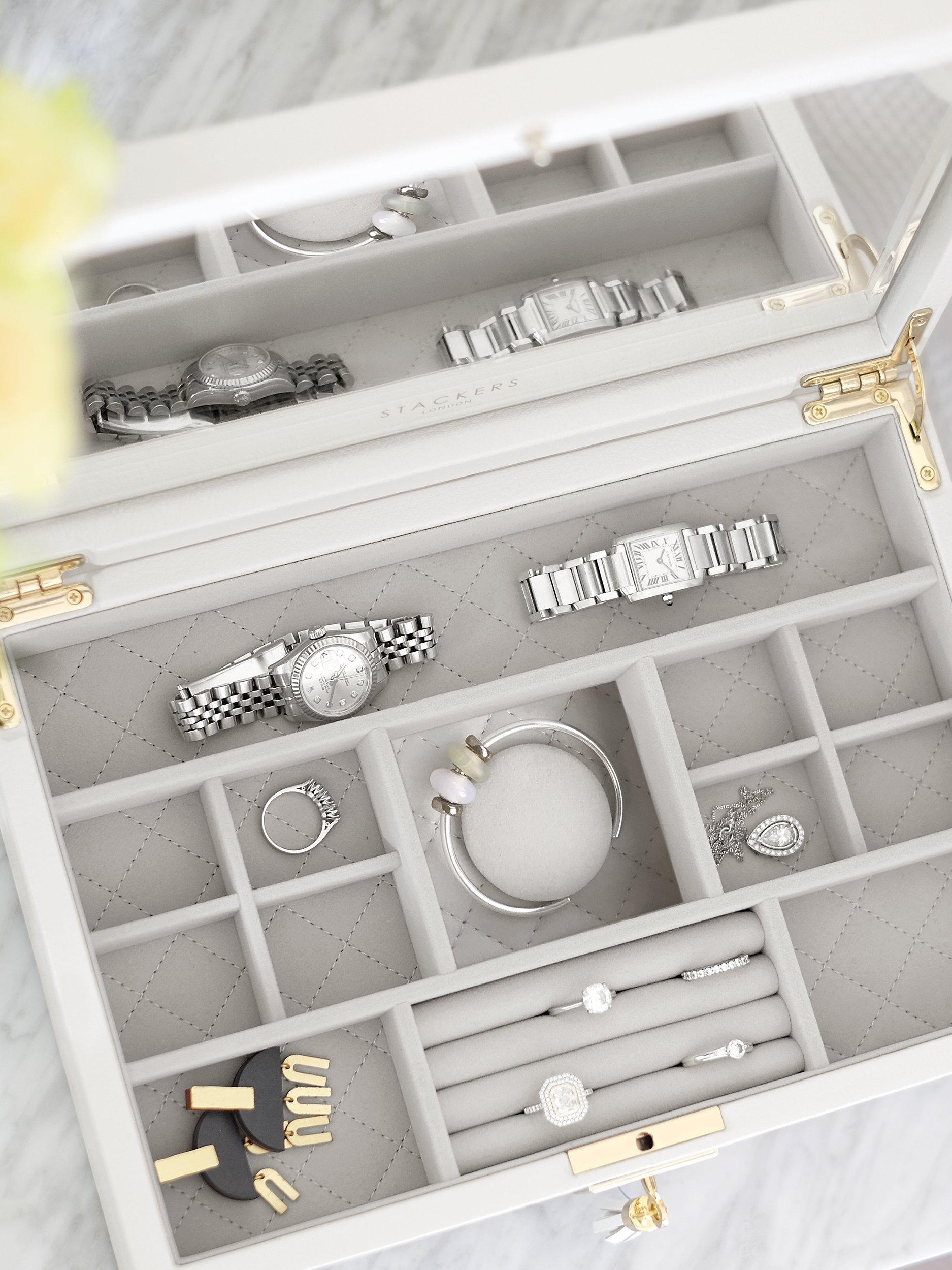 The deluxe leather collection; the same revolutionary Stackers concept with an added touch of opulence, giving your fine pieces the home they deserve. A timeless and elegant collection exquisitely crafted from soft, premium bonded leather, married with a quality quilted, velvet lining.