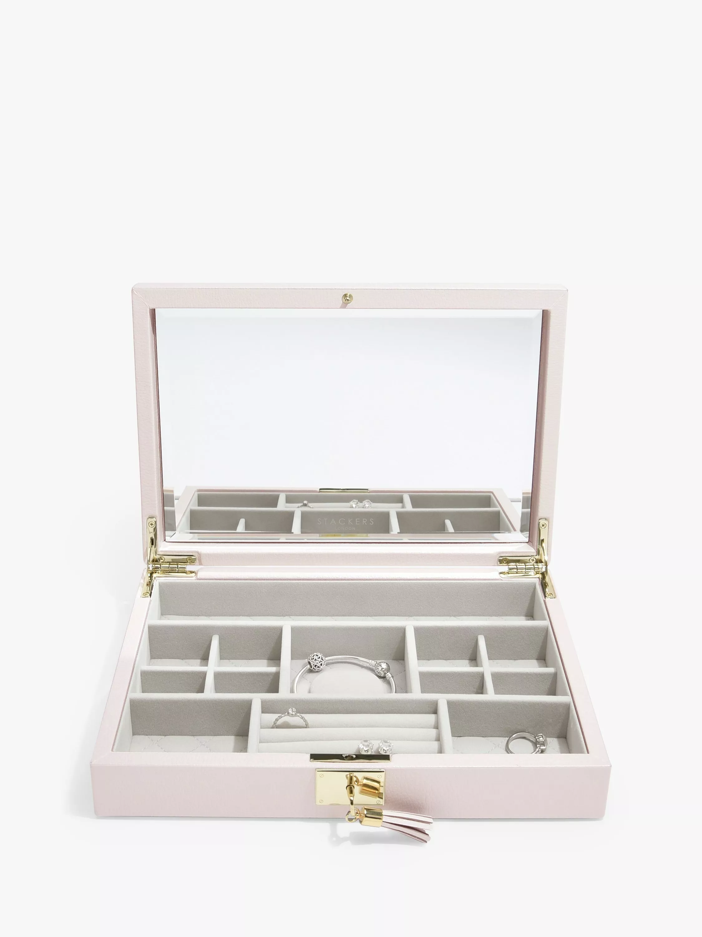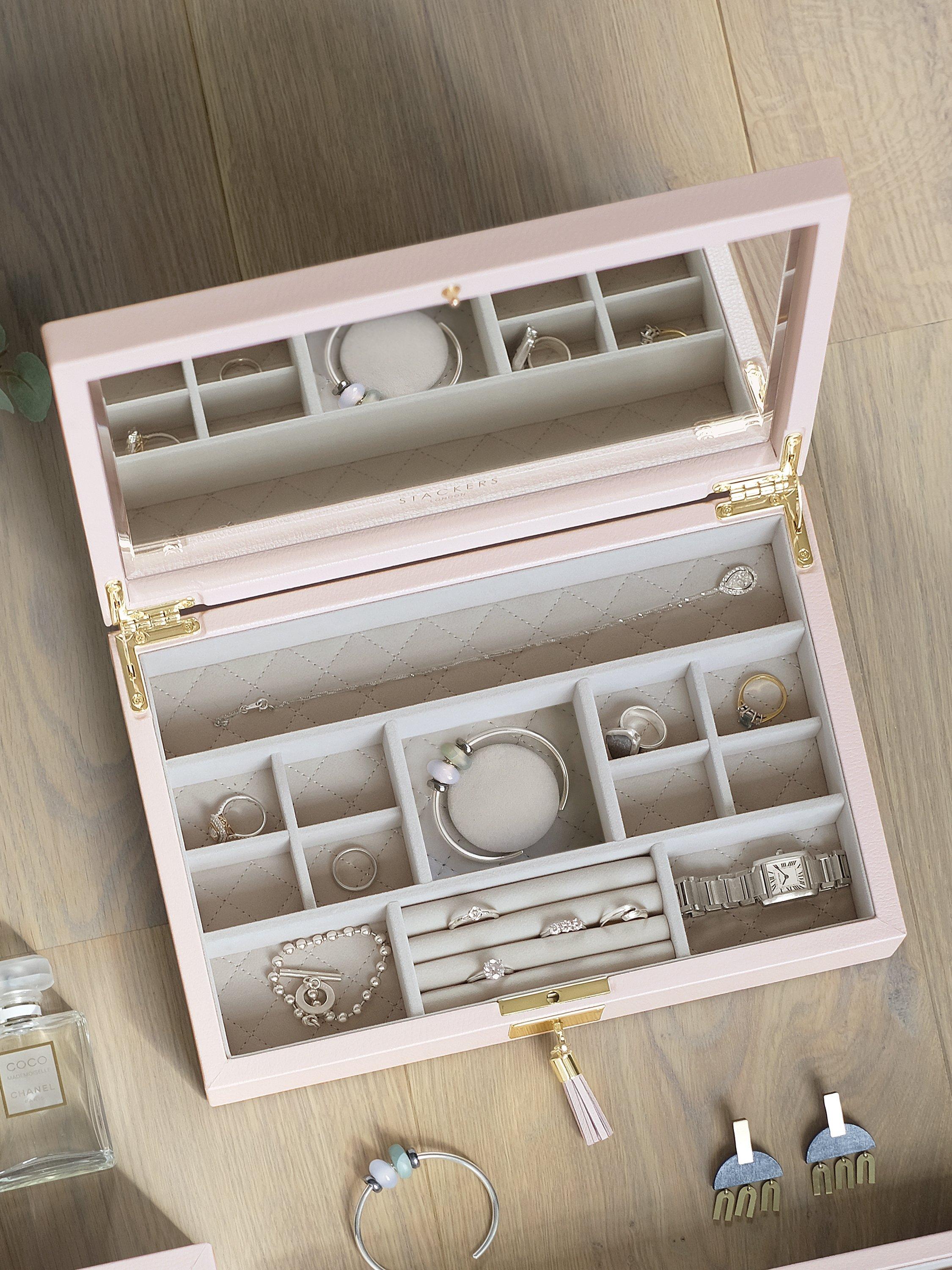 The deluxe leather collection; the same revolutionary Stackers concept with an added touch of opulence, giving your fine pieces the home they deserve. A timeless and elegant collection exquisitely crafted from soft, premium bonded leather, married with a quality quilted, velvet lining.