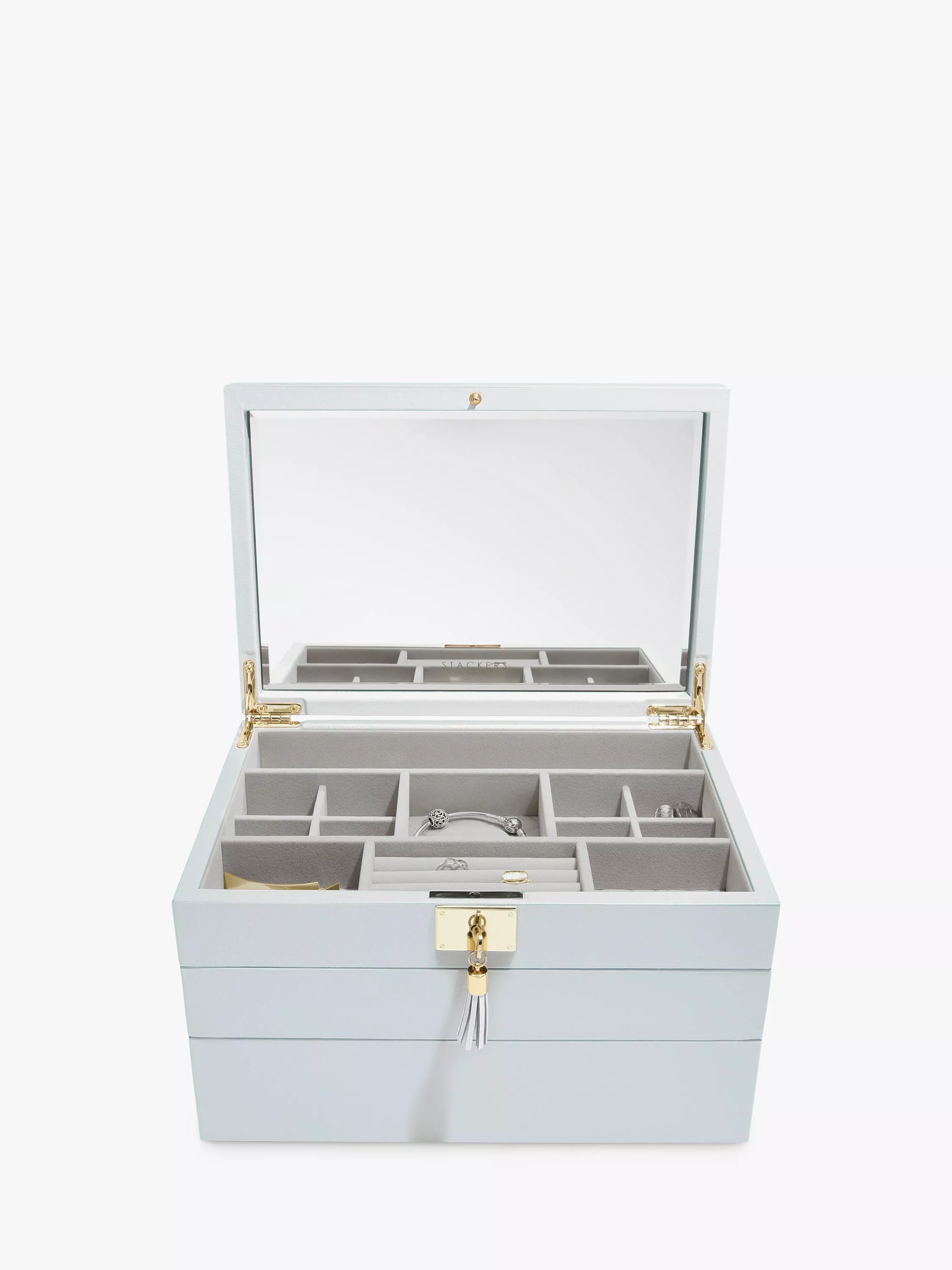Additionally, you will also receive the small trinkets layer and the Watch/Accessory layer perfect for housing your larger jewellery pieces such as bangles and watches. Keeping your jewellery easily accessible and satisfyingly organised.
