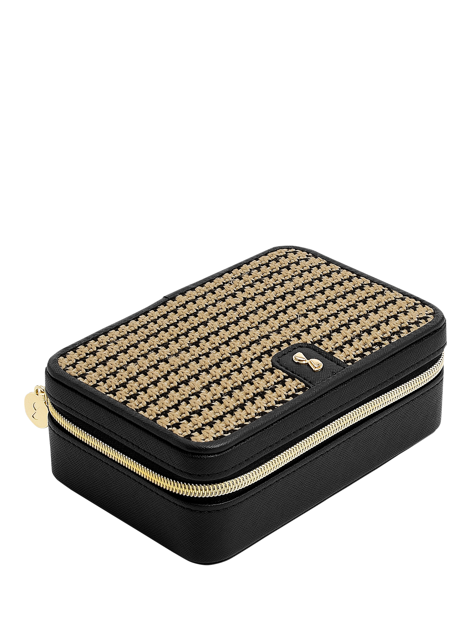 StackersLuxury Travel Raffia Jewellery Box, Black Raffia