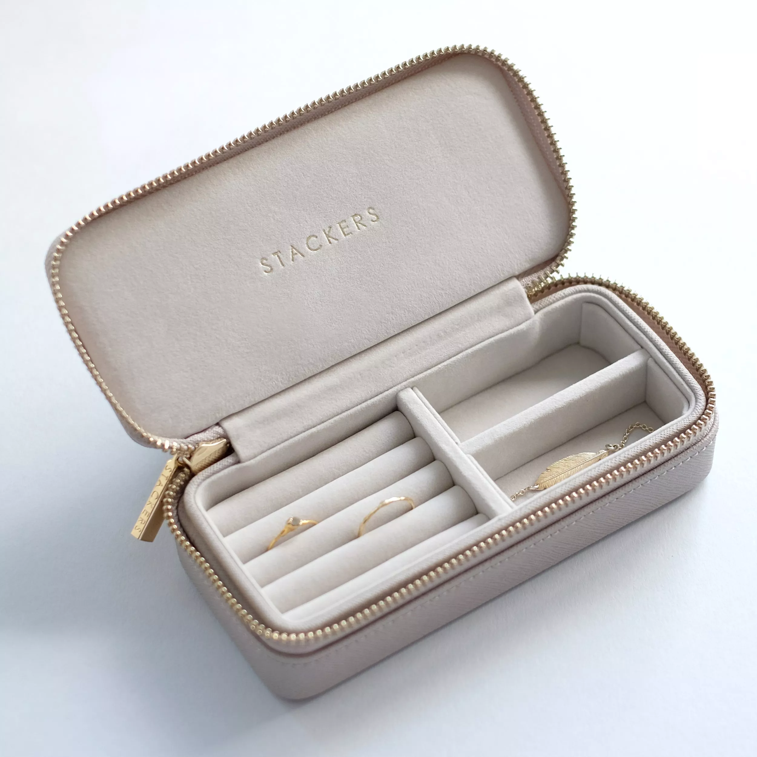 Keep your precious jewellery safe and secure in this elegantly designed Travel Stackers Collection, luxuriously finished in a soft velvet lining.