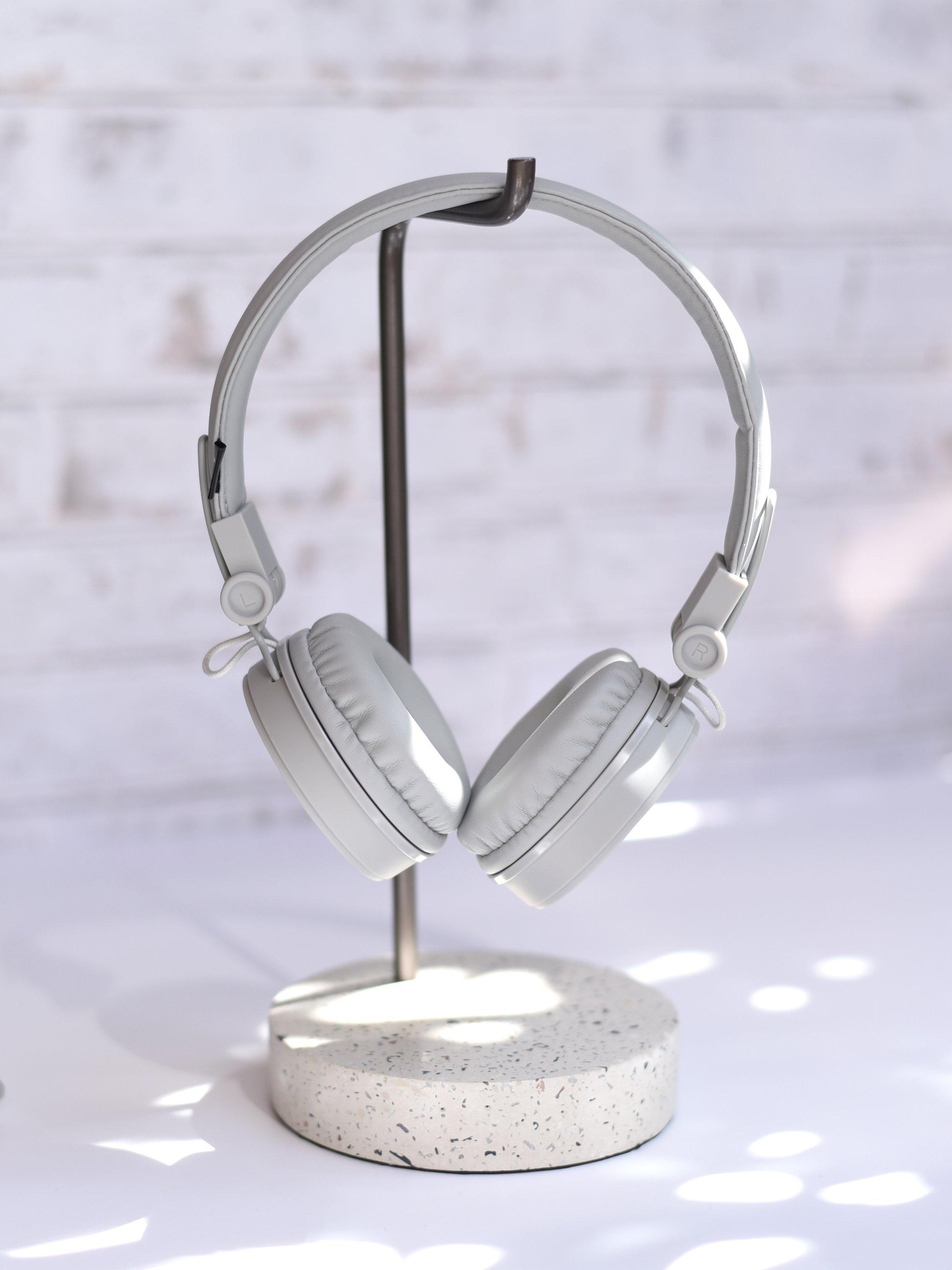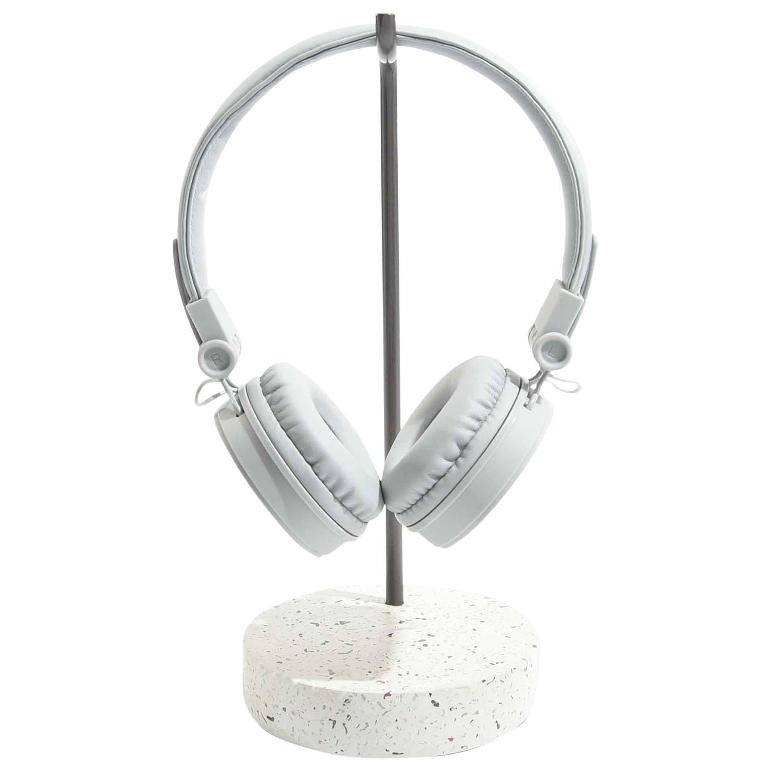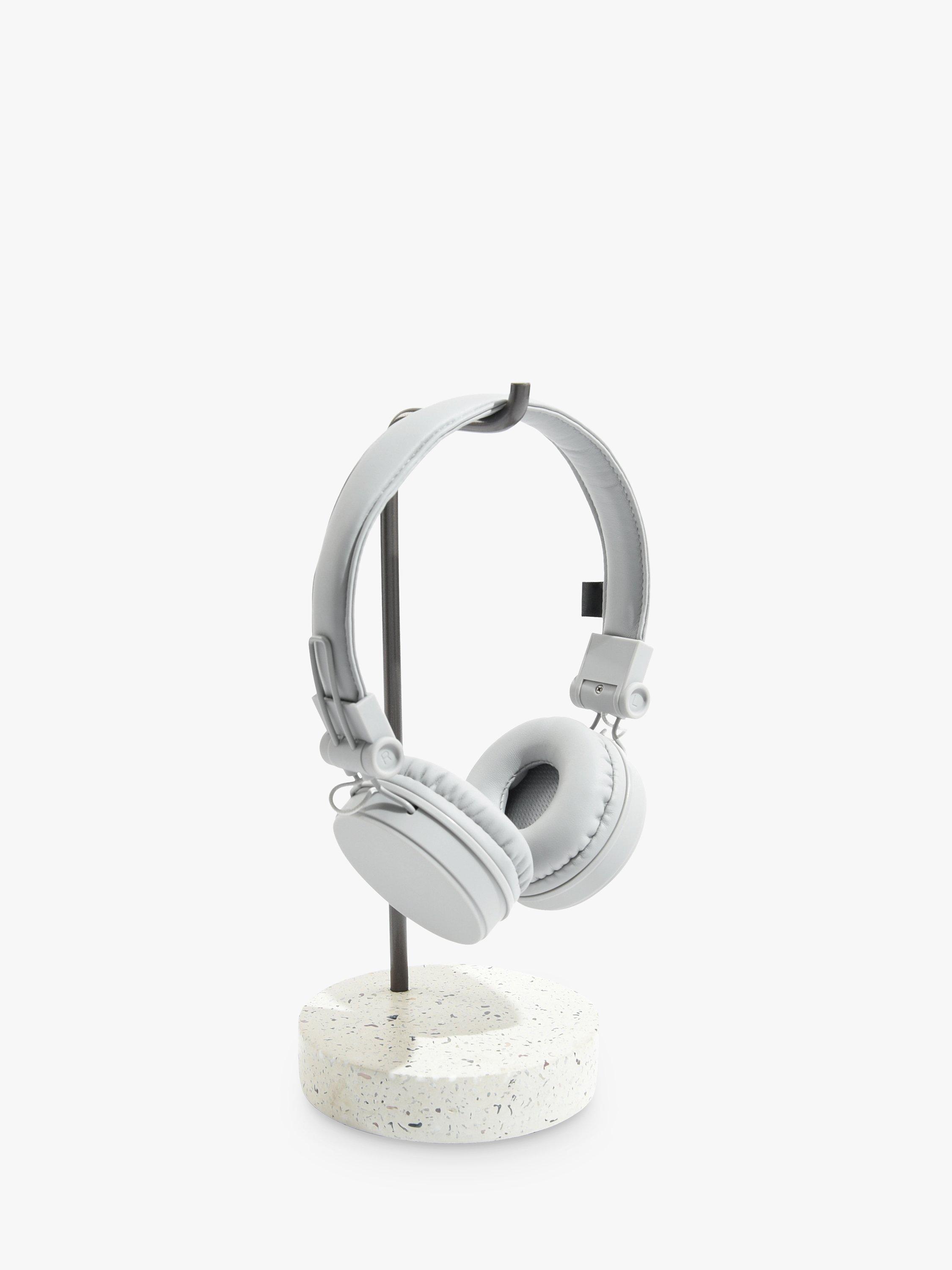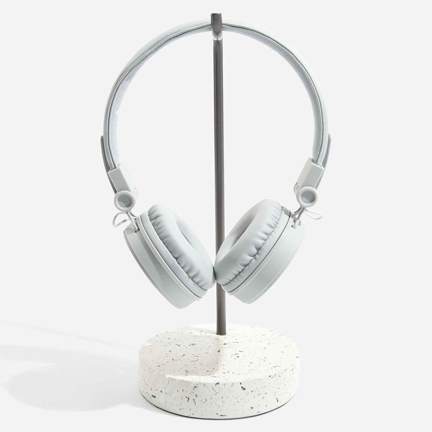 Stackers Headphone stand, a perfect place to store and display headphones, a sturdy Terrazzo finish base and Grey metal hanger gives a minimalist contemporary look and feel.