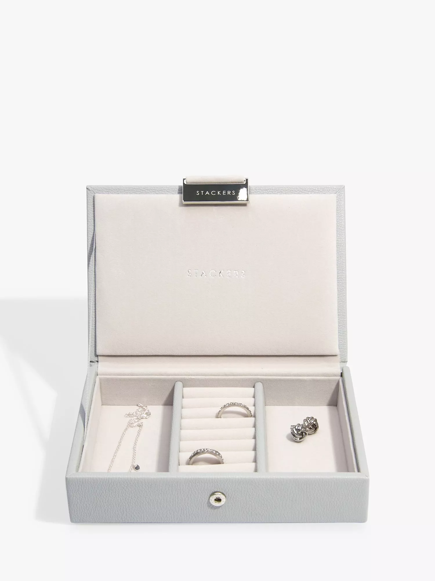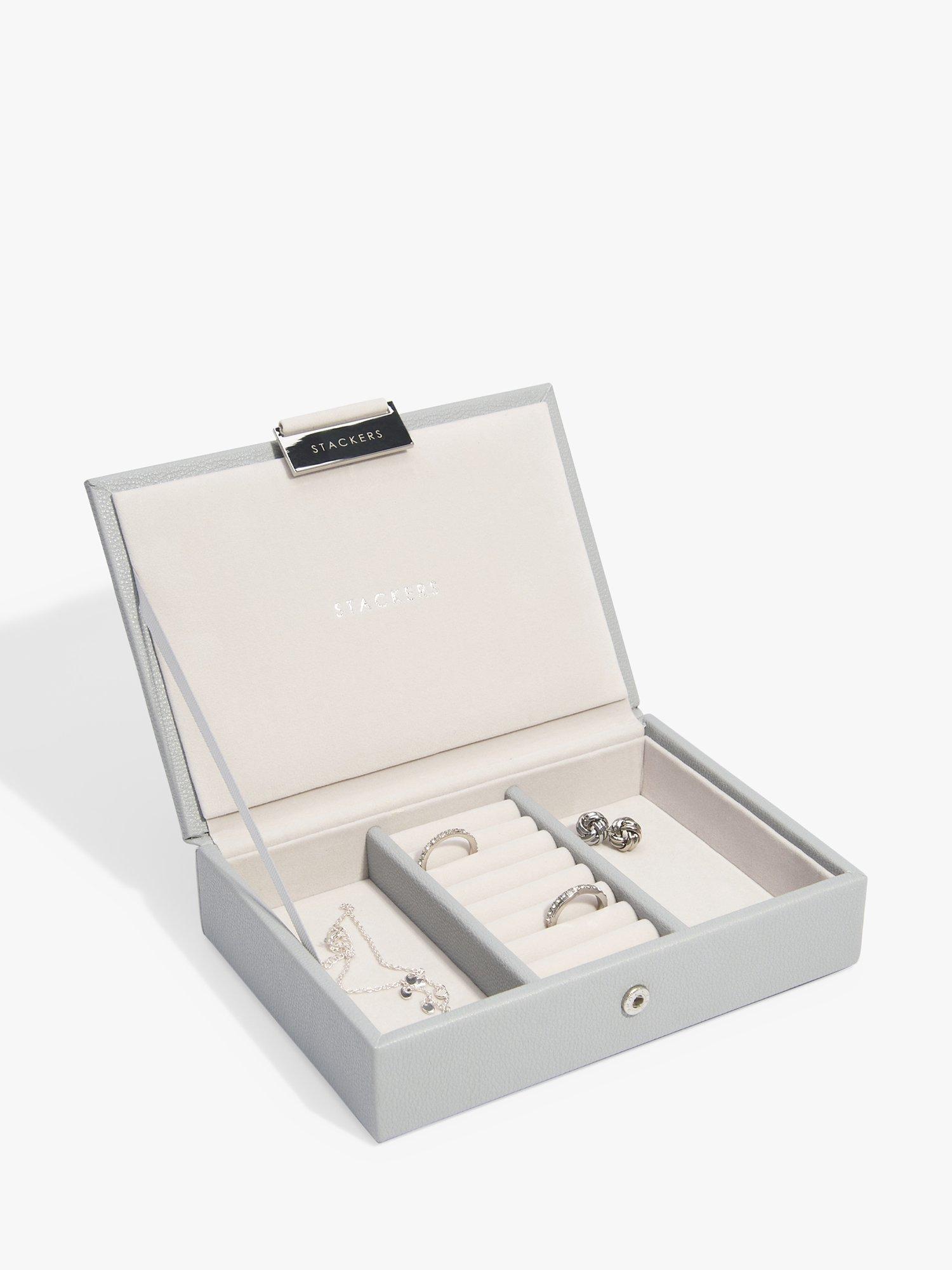 Designed to securely store your earrings, rings, charms and other fine jewellery, the lidded stacker, with its popper closure, is also perfect for those weekends away or keeping your jewellery stored at home.