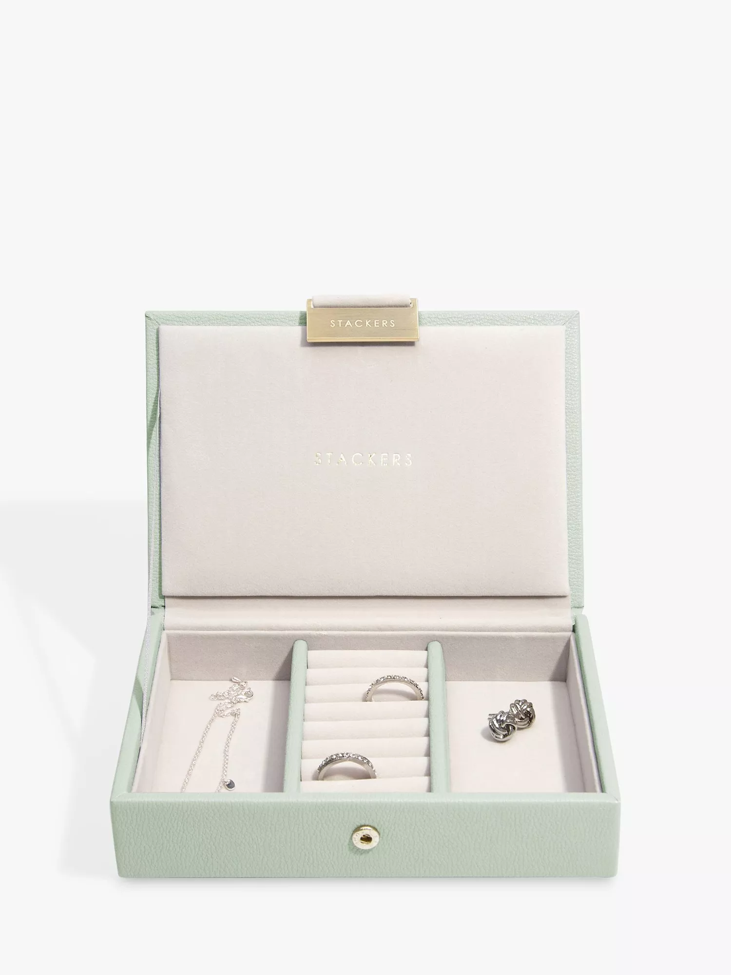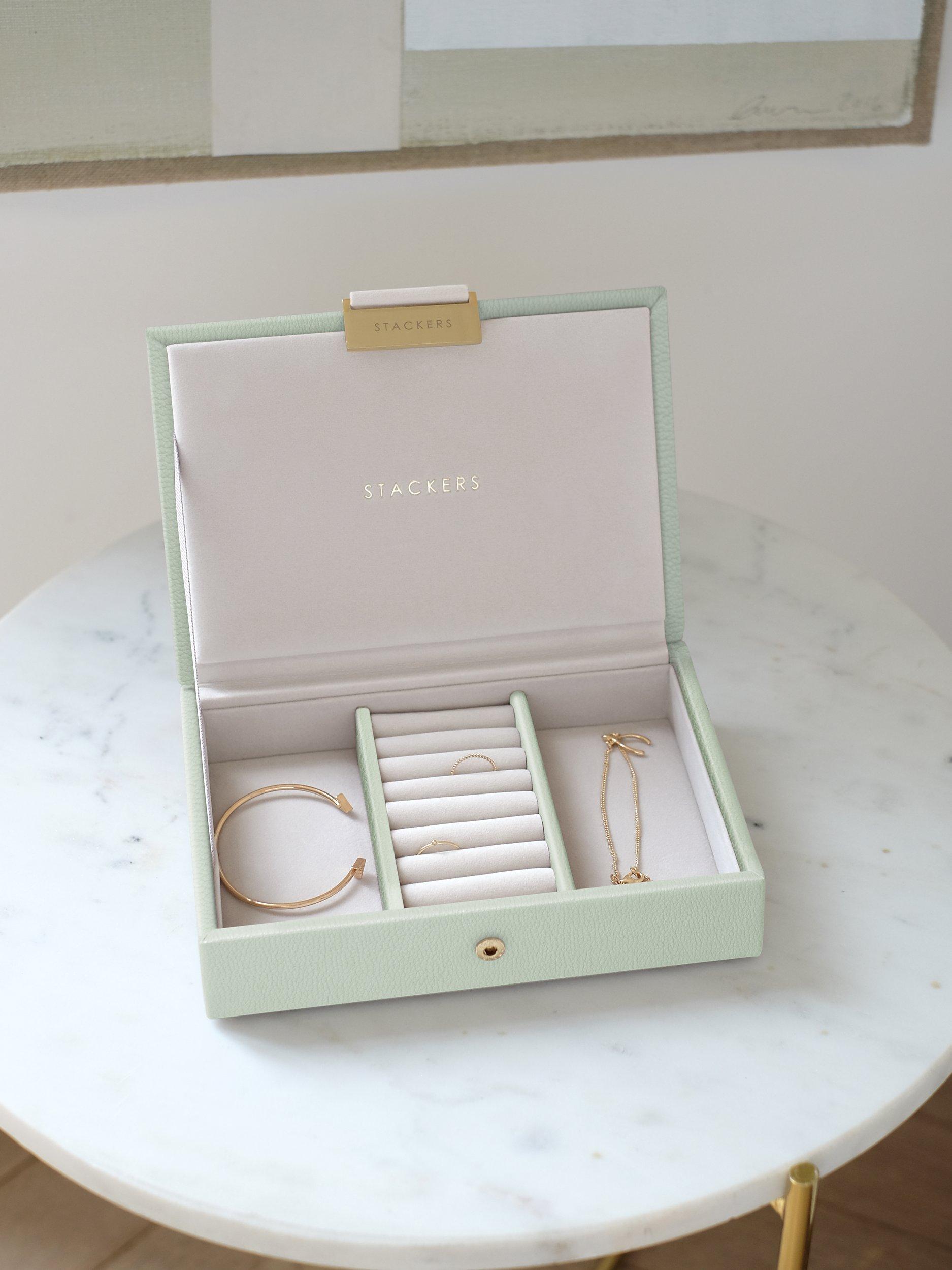 Designed to securely store your earrings, rings, charms and other fine jewellery, the lidded stacker, with its popper closure, is also perfect for those weekends away or keeping your jewellery stored at home.