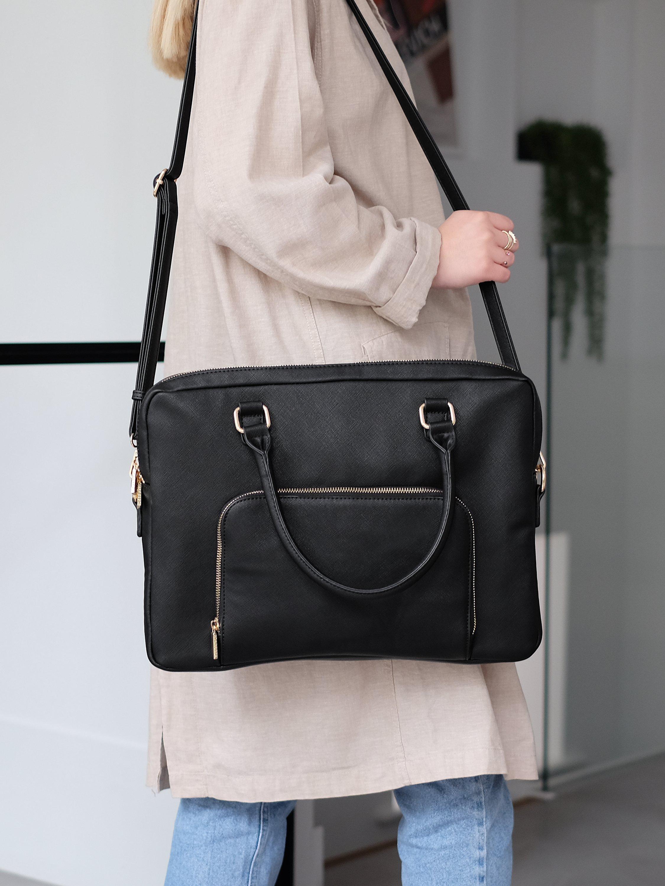 Calm the commute chaos. The ultimate from work to evening bag with the functionality to be worn as a backpack, handbag or a shoulder bag. The multi-wear laptop bag is made with a faux leather exterior and a soft velvet padded lining to ensure your laptop stays safe whilst on-the-go. With space inside for your laptop (up to 15 inch), your phone, multiple pens, cables as well as a large zipped pocket, this bag is not only stylish but super practical. At the front there is a large zipped pocket for your charger, additional cables and accessories and a smaller zipped compartment at the back. Level up your everyday.
