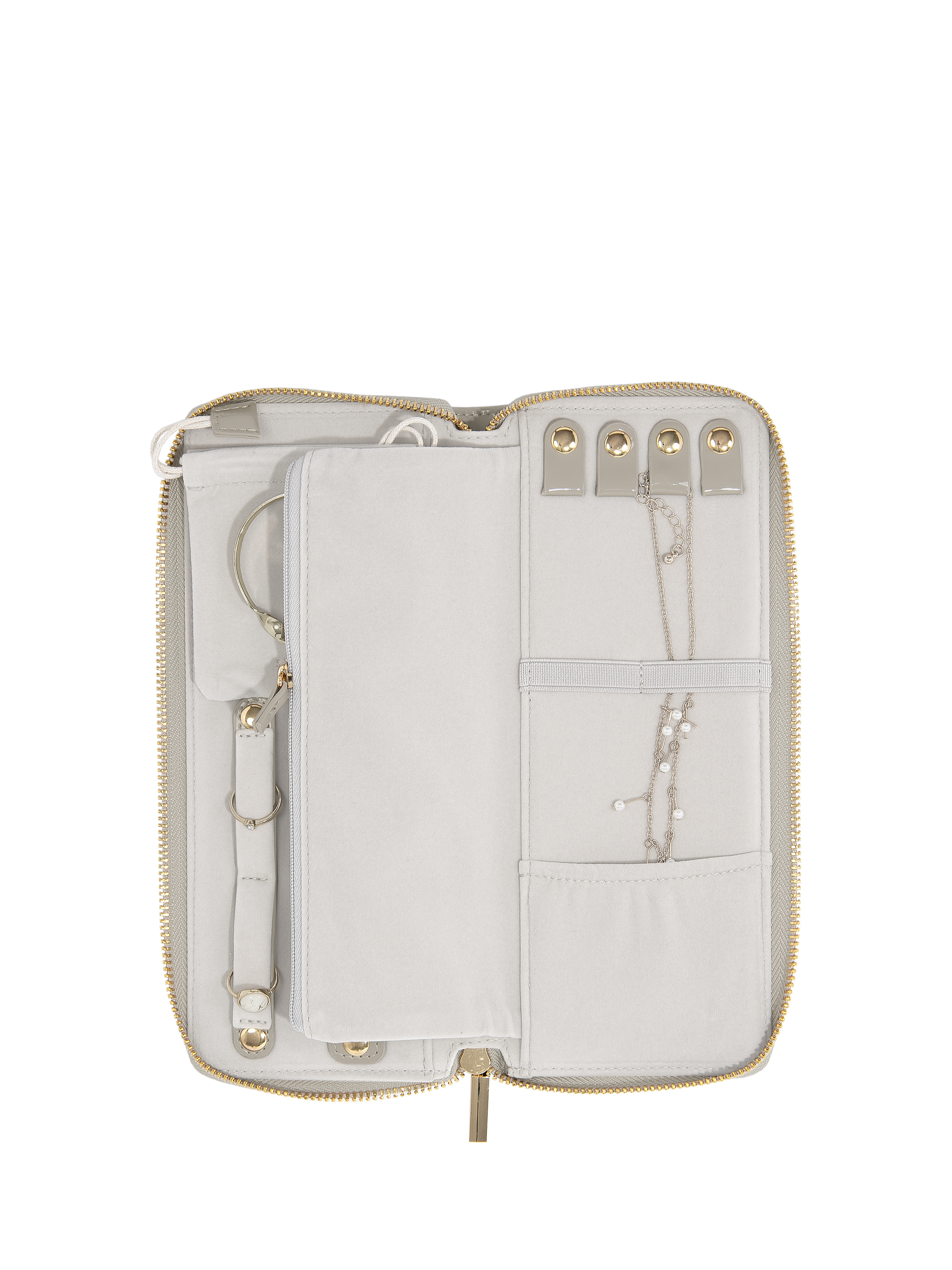 There is also a built-in zipped pocket for additional storage! This slim zipped Jewellery Purse has plenty of room to keep all your favourites with you and will easily fit inside your handbag or luggage.