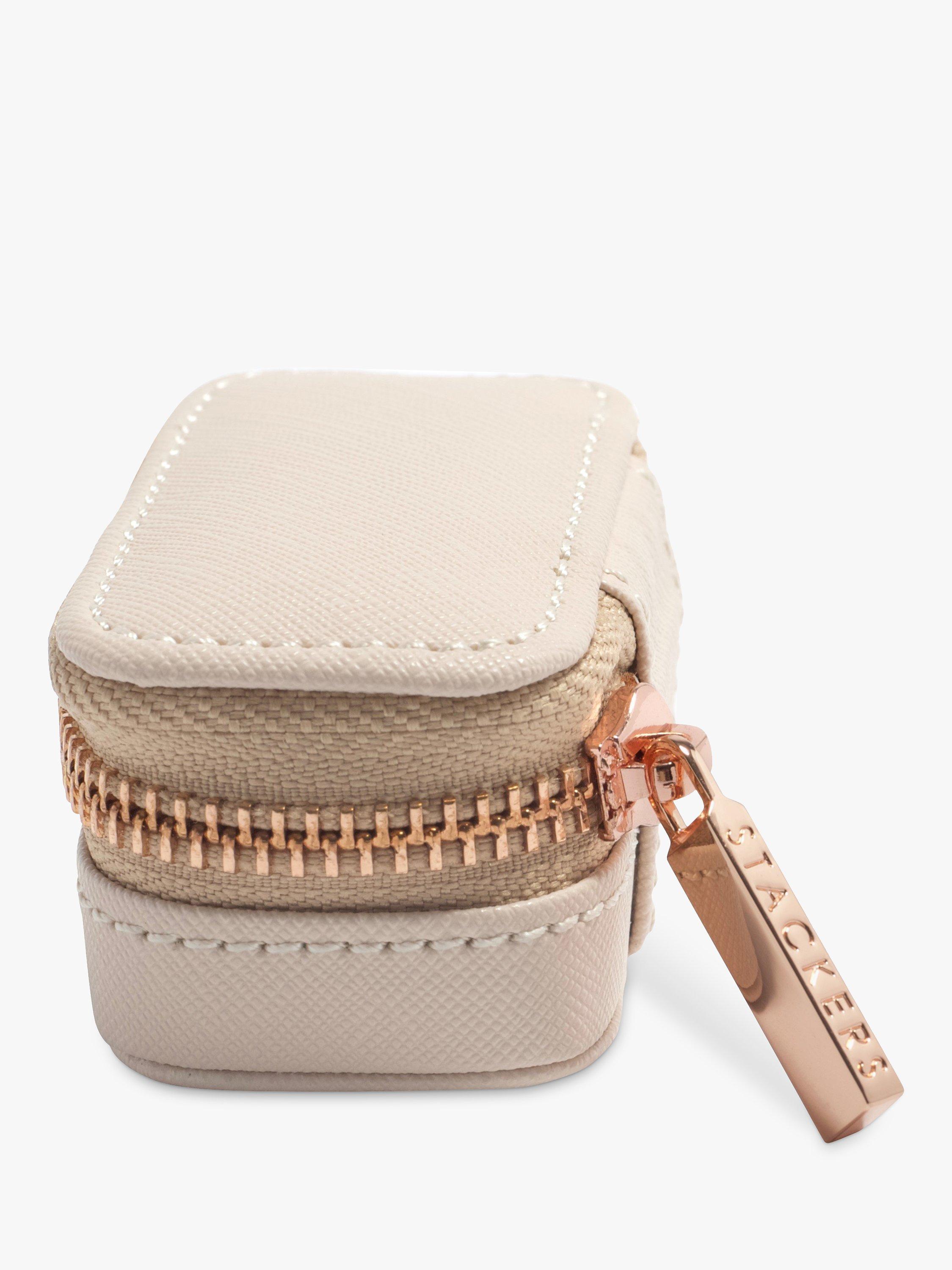 This Petite travel Stacker features a ring roll and a small compartment. Available in 3 different colours, Blush Pink with Rose Gold effect zip and fitting; Taupe with Champagne Gold effect zip and fitting, and a Dusky Blue with Chrome effect zip and fitting. There is a Travel Stacker for everybody; 3 sizes, suitable for your handbag, overnight stay or a weekend away.