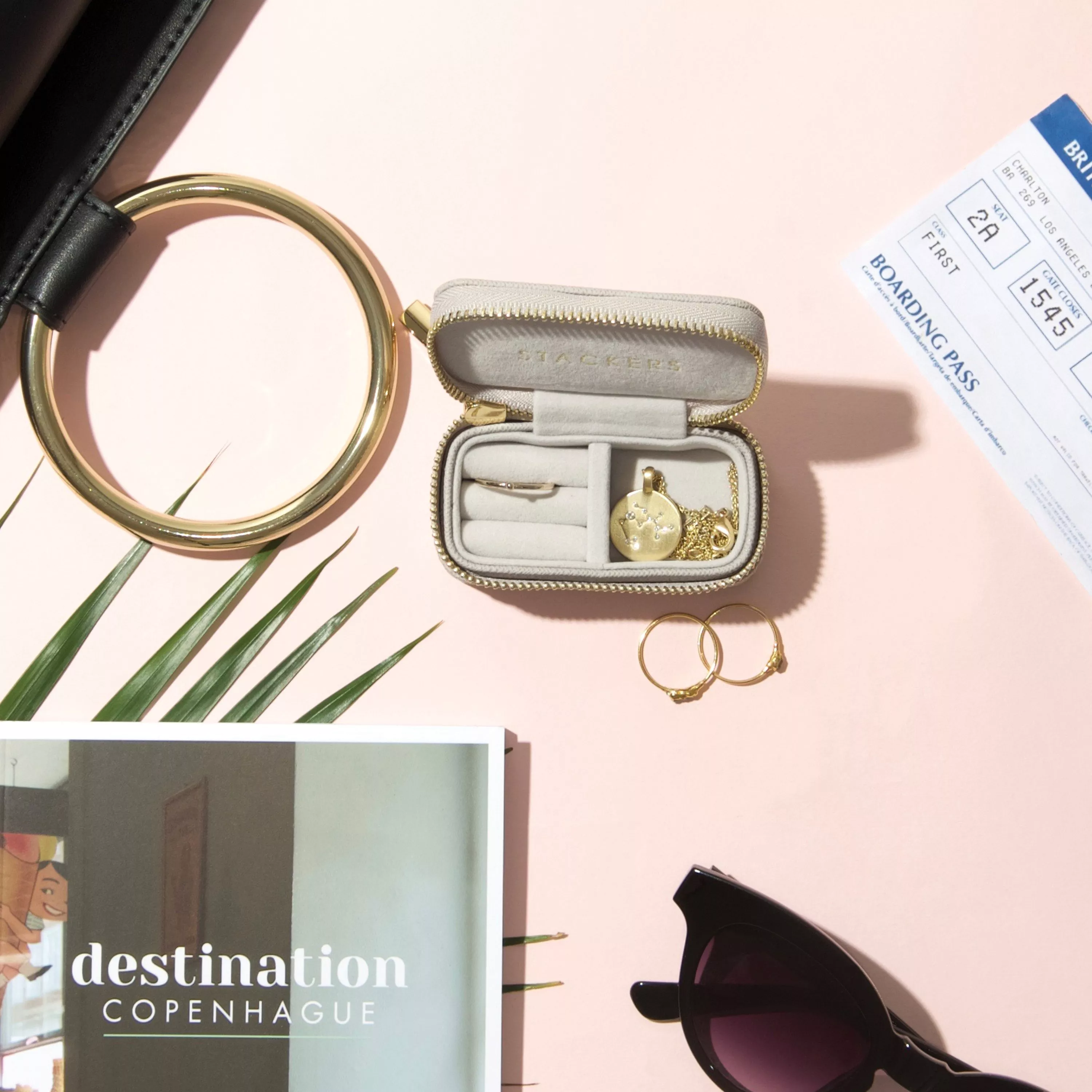 This Petite travel Stacker features a ring roll and a small compartment. Available in 3 different colours, Blush Pink with Rose Gold effect zip and fitting; Taupe with Champagne Gold effect zip and fitting, and a Dusky Blue with Chrome effect zip and fitting. There is a Travel Stacker for everybody; 3 sizes, suitable for your handbag, overnight stay or a weekend away.
