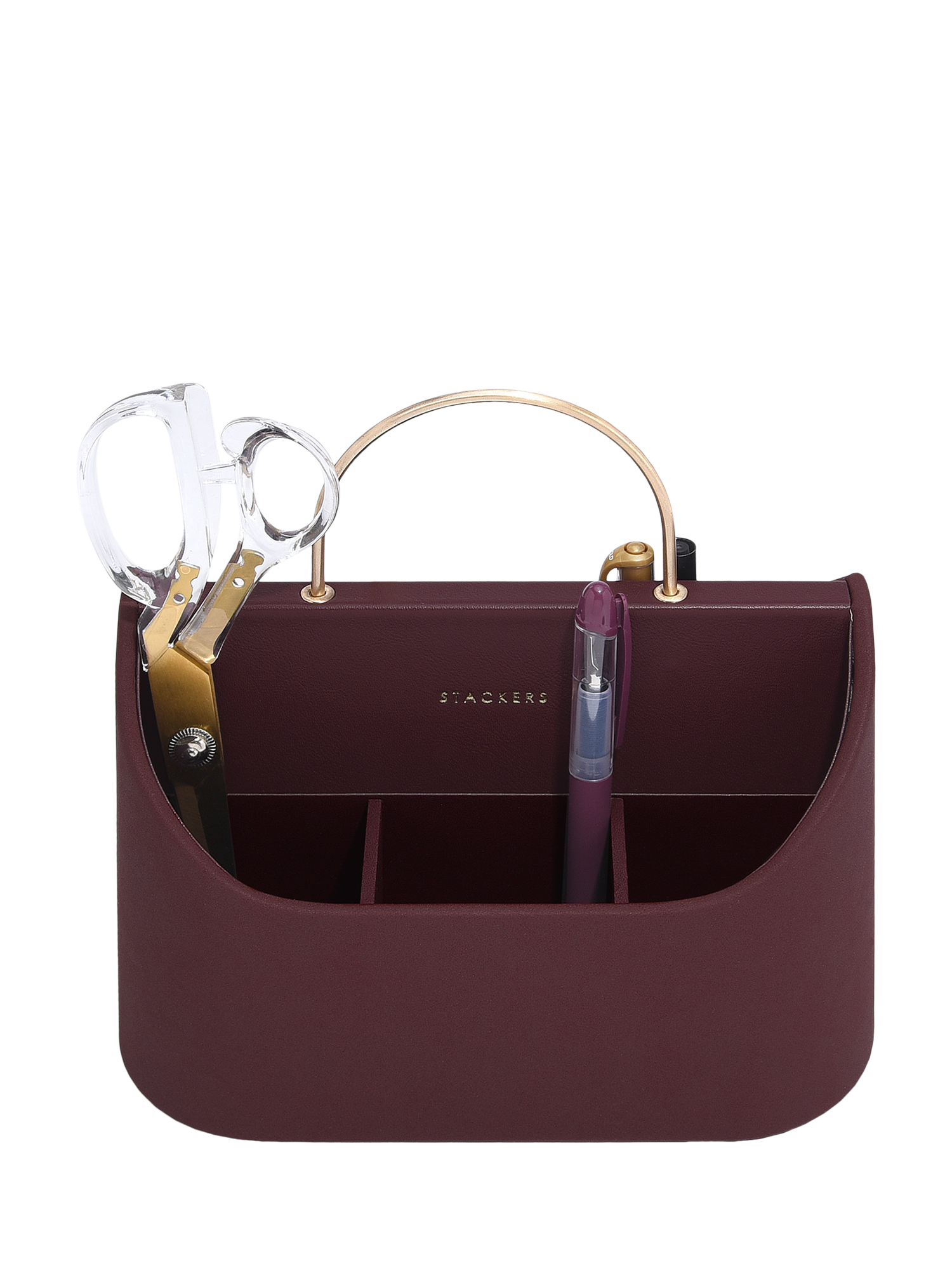 The Stackers Desk Caddy is a handy, portable organiser for stationery. With multiple compartments to separate and organise stationery. Featuring a brushed gold handle.