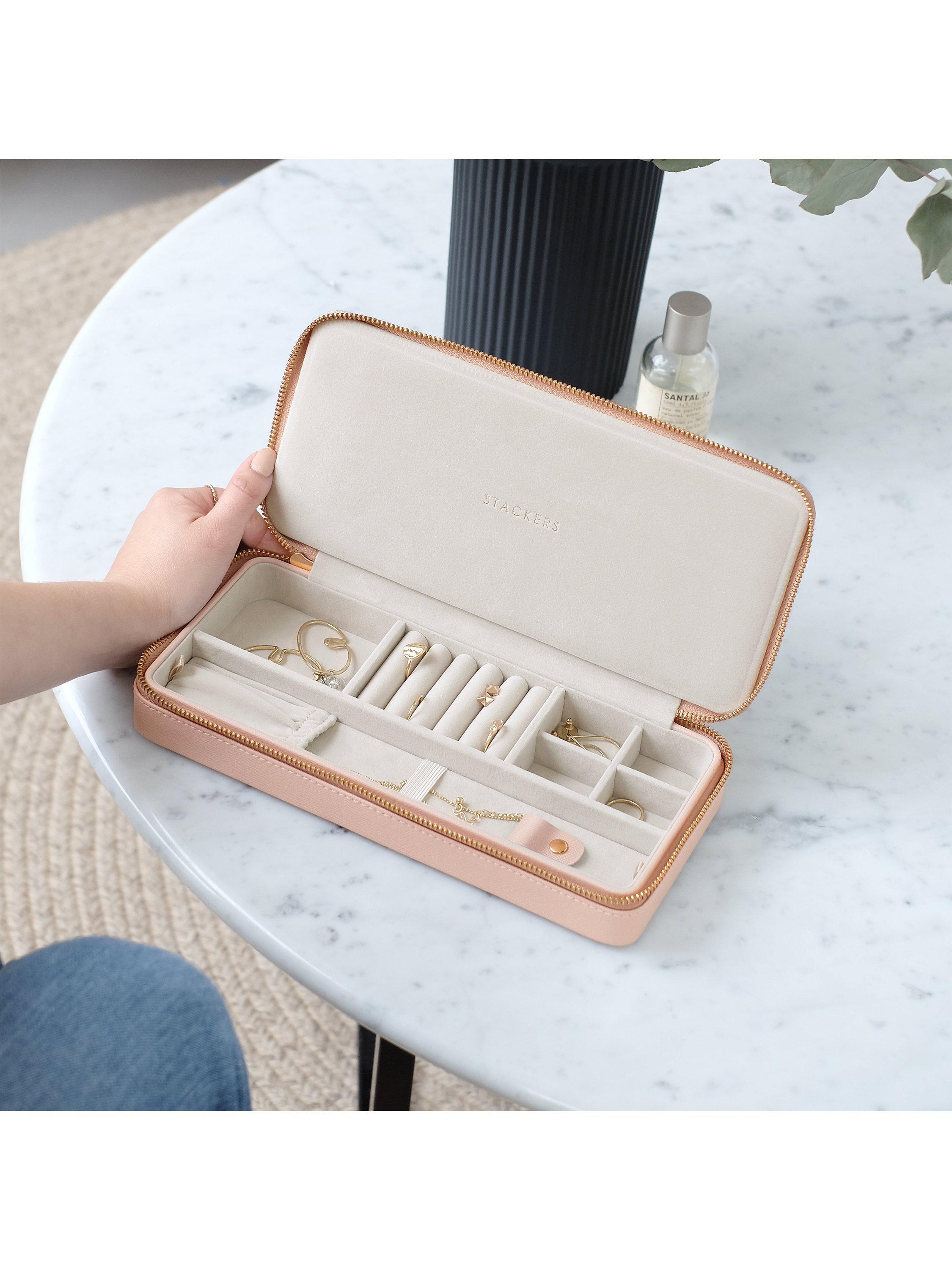 This beautiful Stackers necklace travel box features 7 different compartments with a removable necklace storage insert