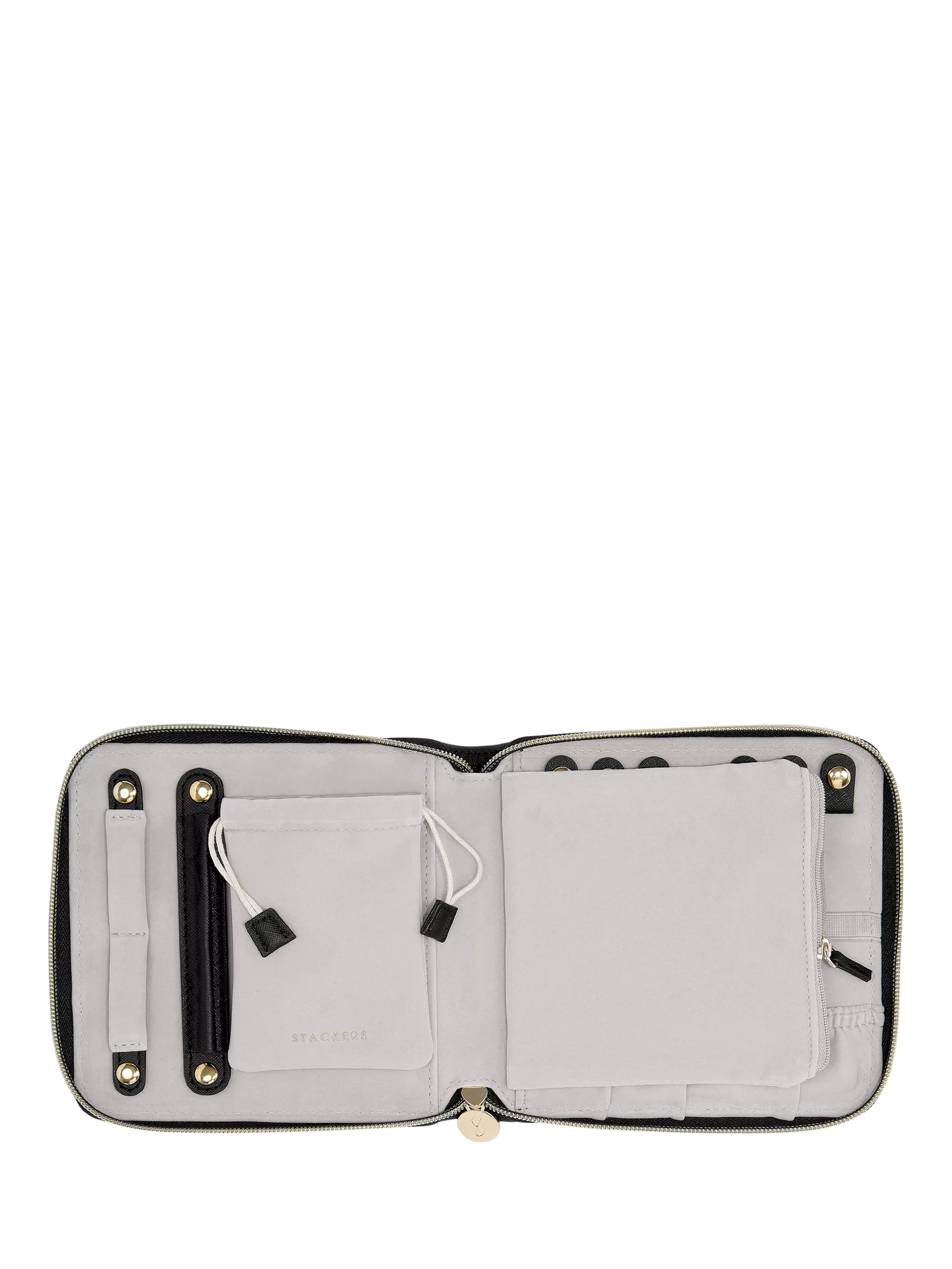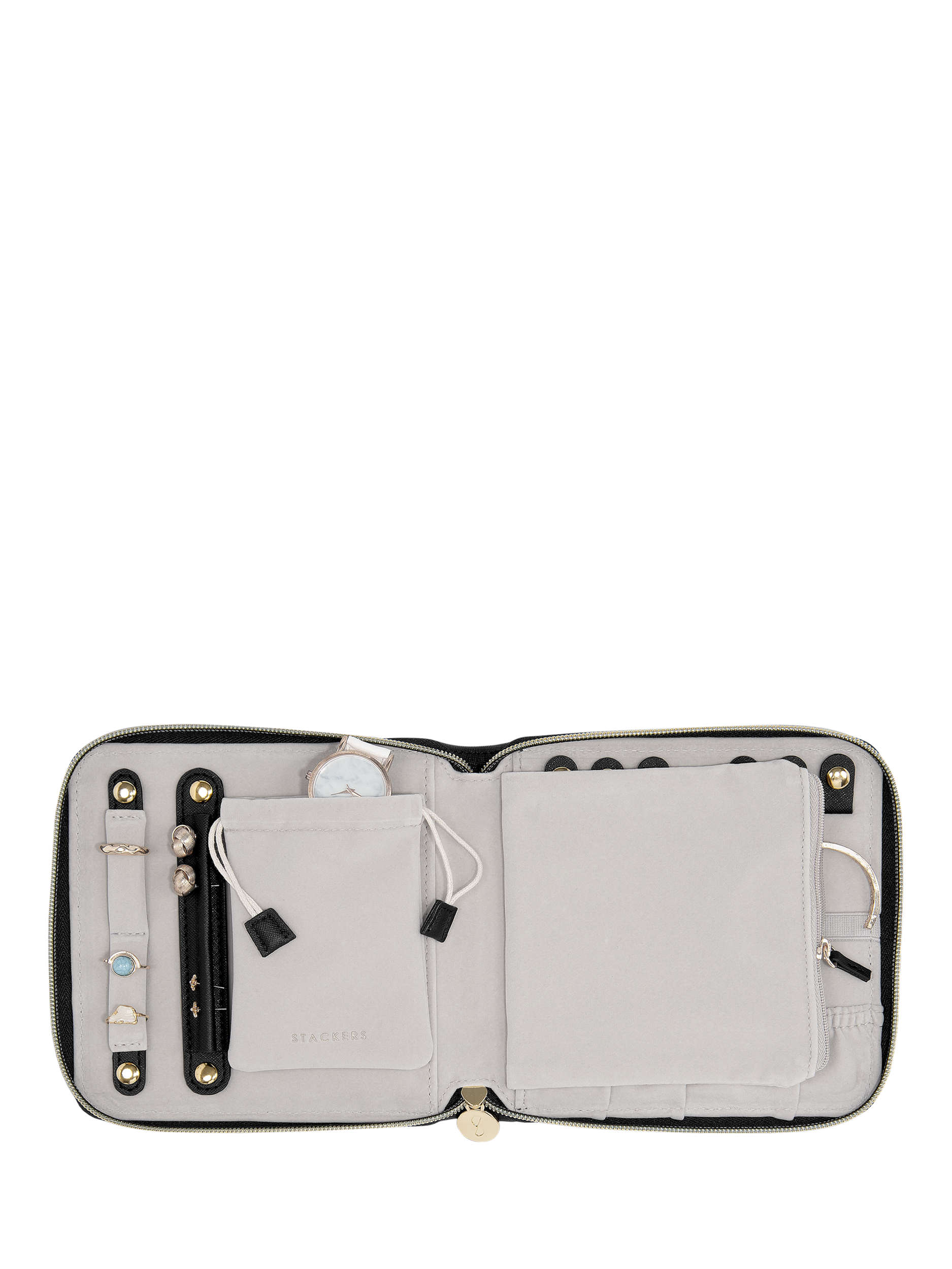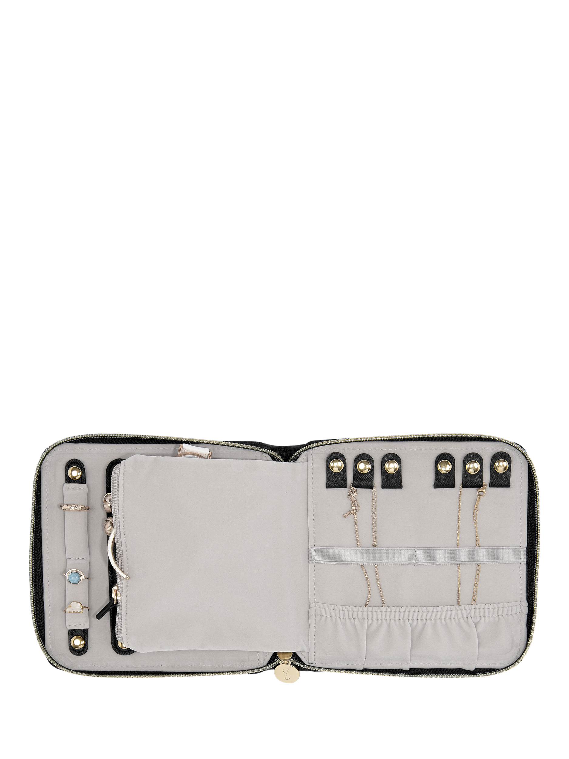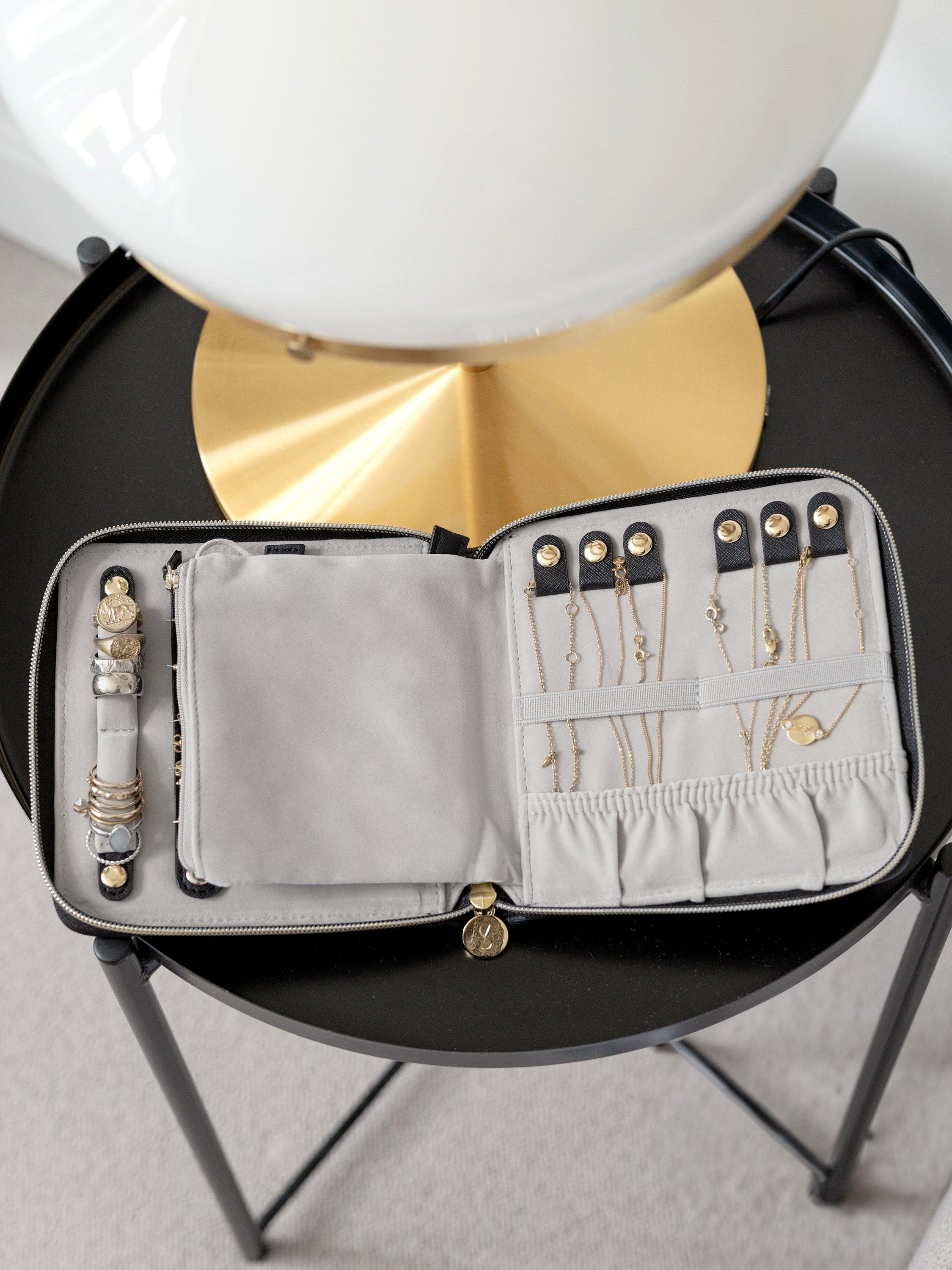With space for up to 6 necklaces or bracelets, you can ensure your jewellery stays tangle-free with the clever poppers and elasticated bands which keep everything securely in place. There's also an earring holder, ring holder and a large zipped pocket to house any loose items. It's the perfect travel companion.