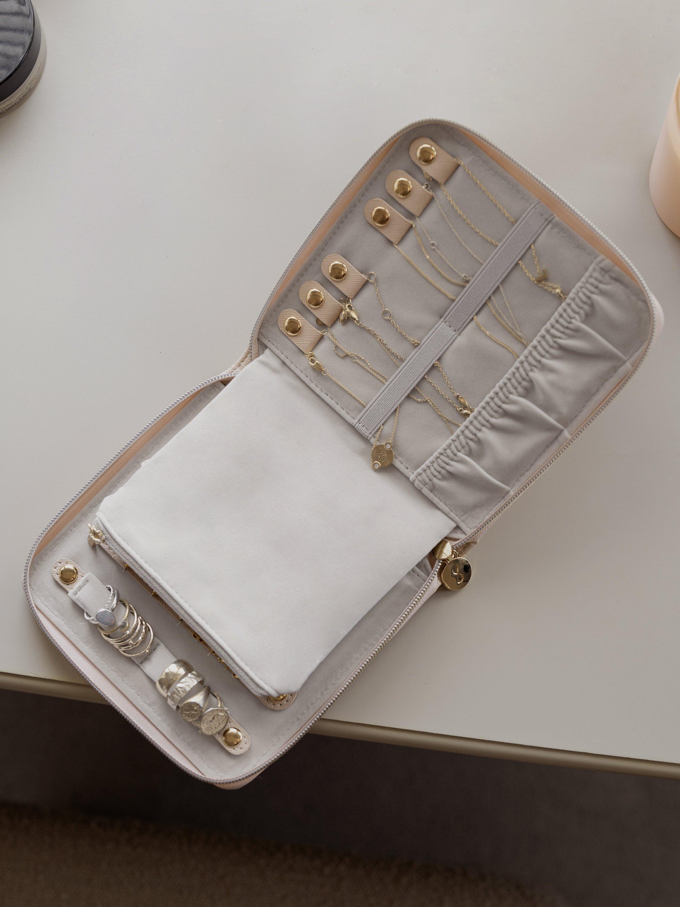 With space for up to 6 necklaces or bracelets, you can ensure your jewellery stays tangle-free with the clever poppers and elasticated bands which keep everything securely in place. There's also an earring holder, ring holder and a large zipped pocket to house any loose items. It's the perfect travel companion.