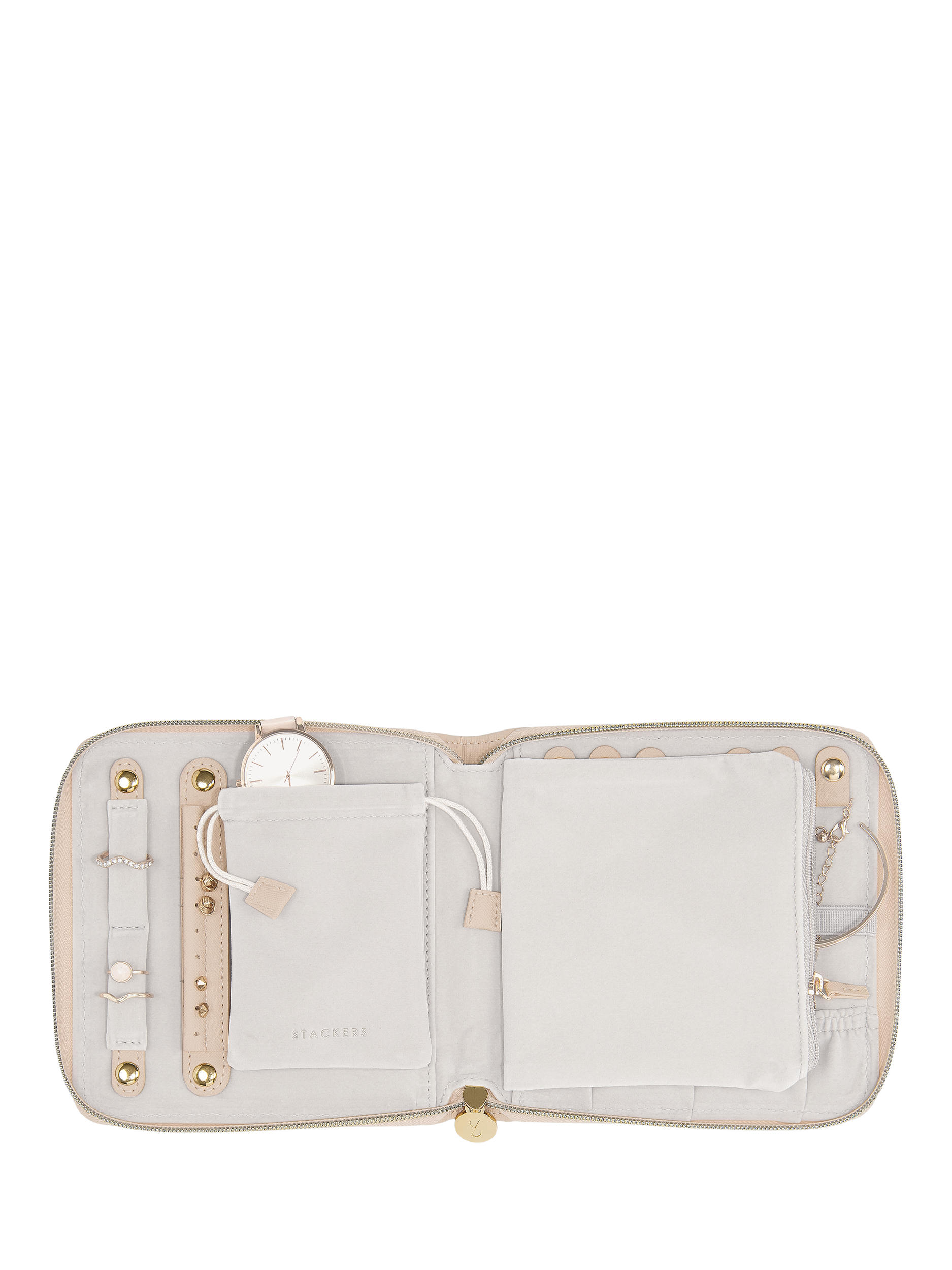Keep your jewellery collection organised on-the-go with the Stackers Raffia Jewellery Roll.